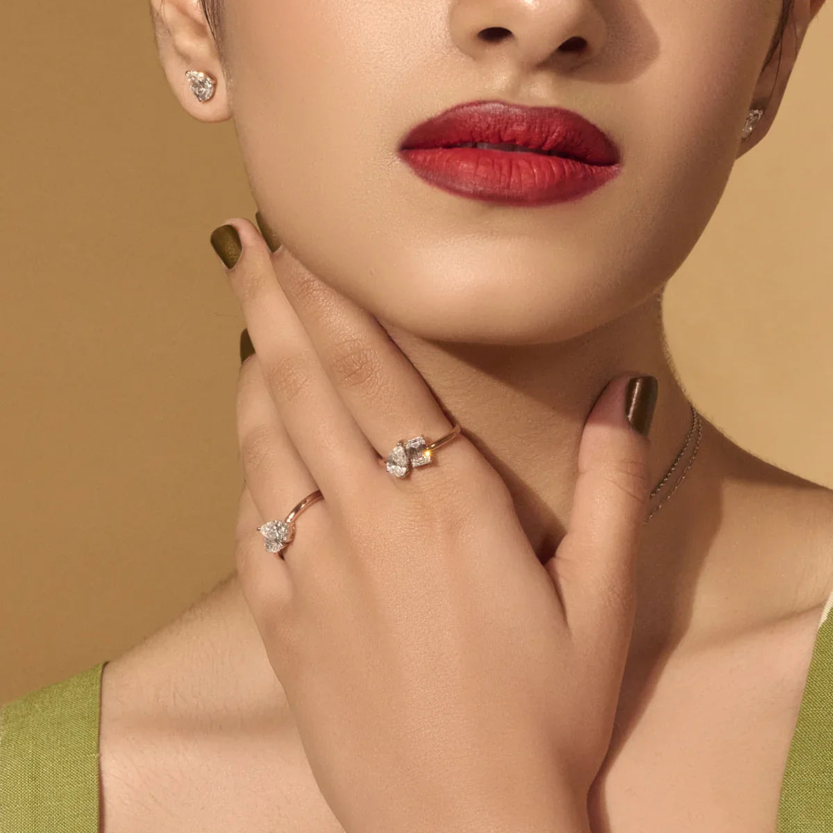 ✥ Celebrate the harmony of your love with the 1.0 CT Pear Shaped Moissanite Two Stone Engagement Ring. This exquisite design features two pear-shaped moissanites. each one showcasing exceptional brilliance and unique charm. The larger stone and its complementary partner are set in a sleek. sophisticated band. creating a stunning contrast that highlights their radiant sparkle. Perfect for those who value both modern elegance and meaningful symbolism. this engagement ring beautifully represents the union of two souls. making it a timeless and enchanting choice for your love story.