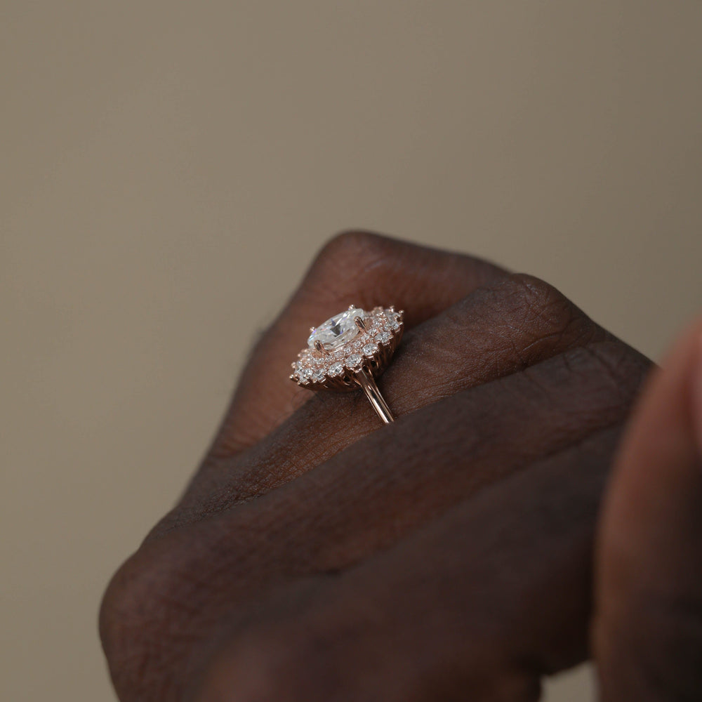 0.75CT Oval Cut Double Halo Moissanite Diamond Engagement Ring For Her