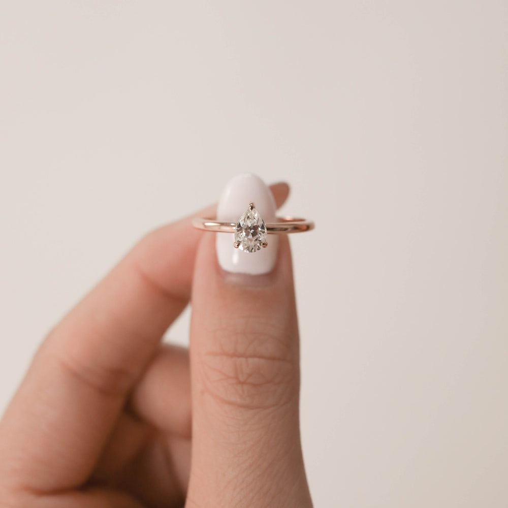 0.80CT Pear Moissanite Solitaire Diamond Engagement Ring