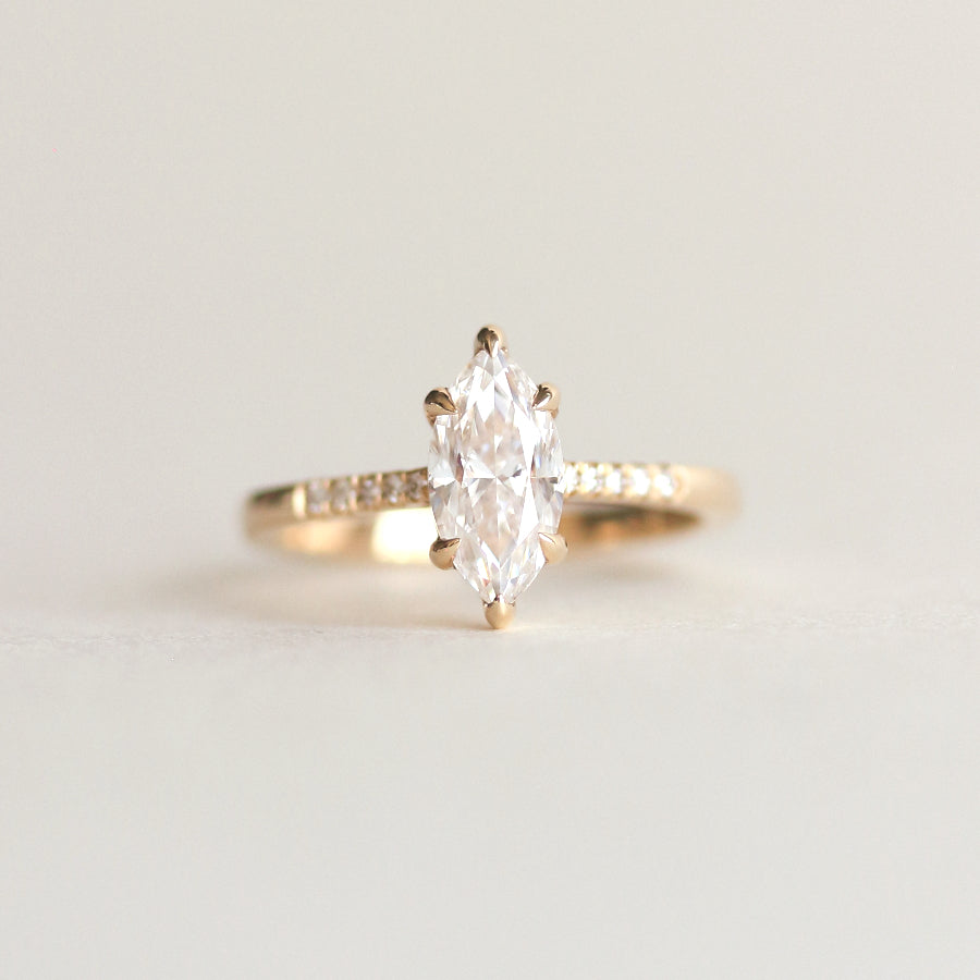0.90 CT Marquise Moissanite Pave Setting Engagement Ring