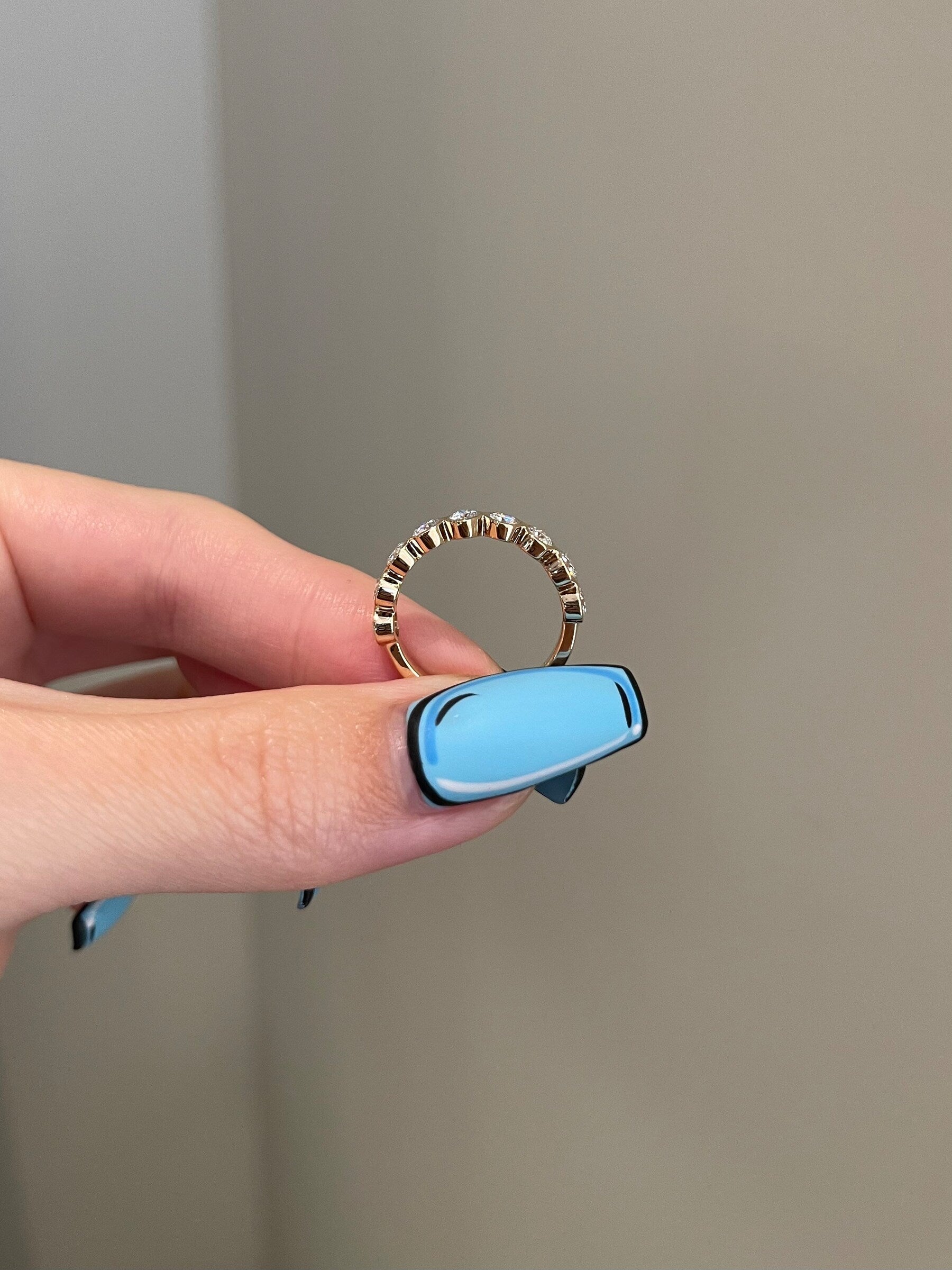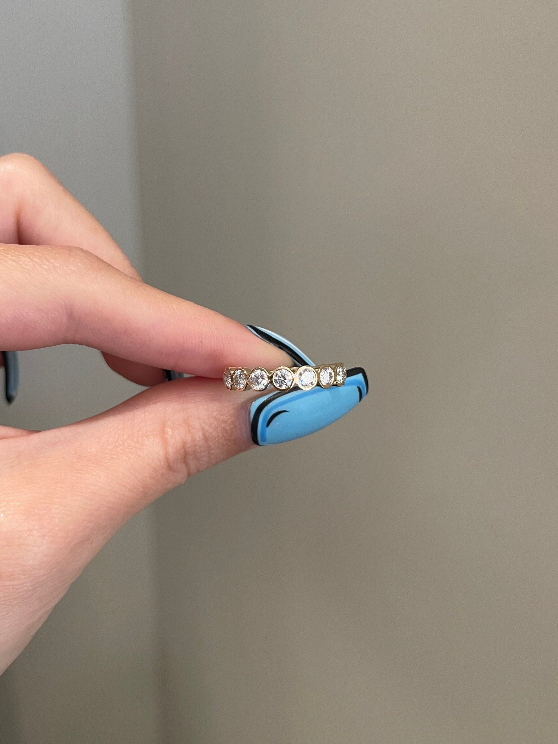 0.90 TCW Round Shaped Moissanite Bezel Half Eternity Wedding Band