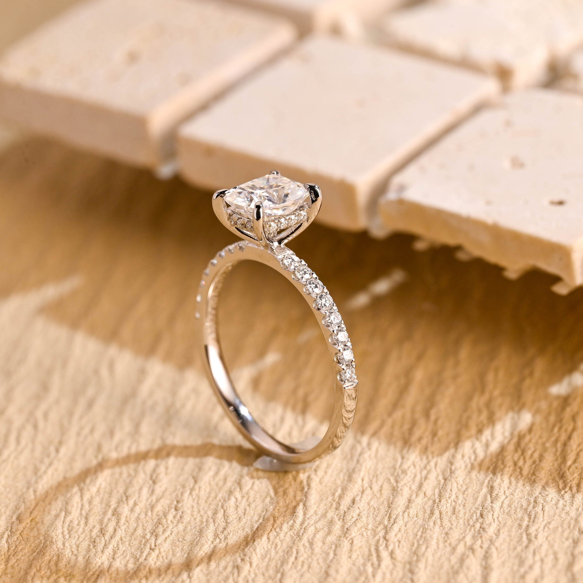 1.0 CT Cushion Cut Hidden Halo Pave Moissanite Engagement Ring