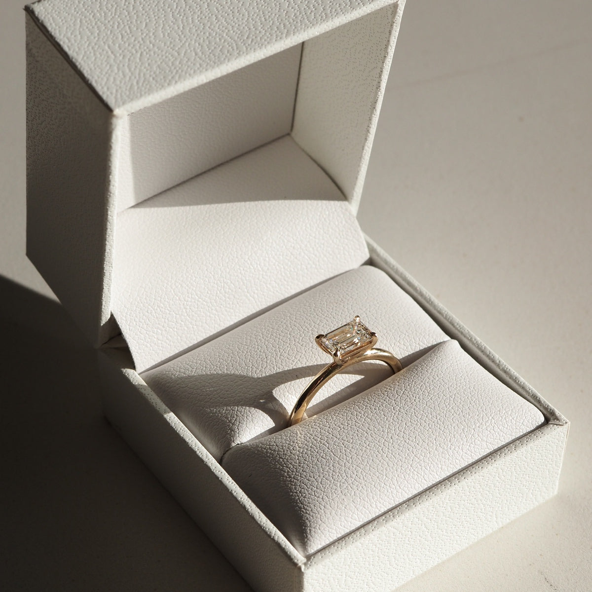 1.0 CT East West Emerald Moissanite Solitaire Engagement Ring