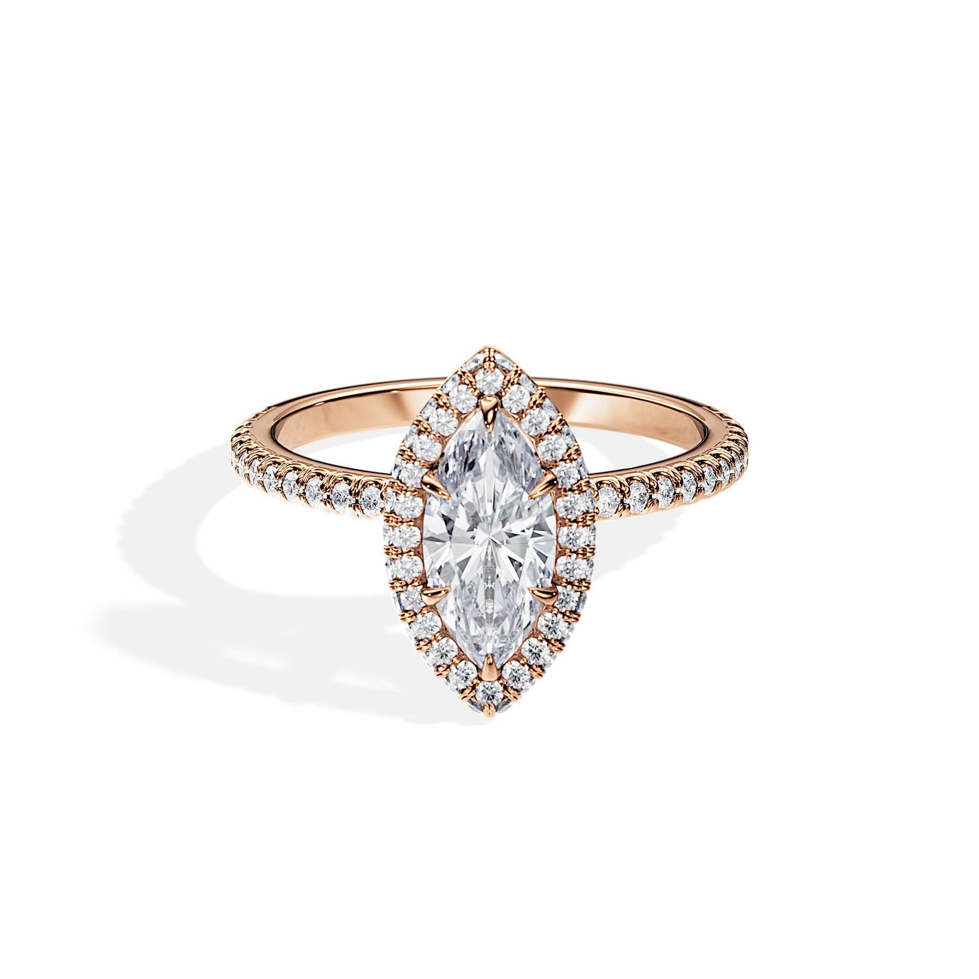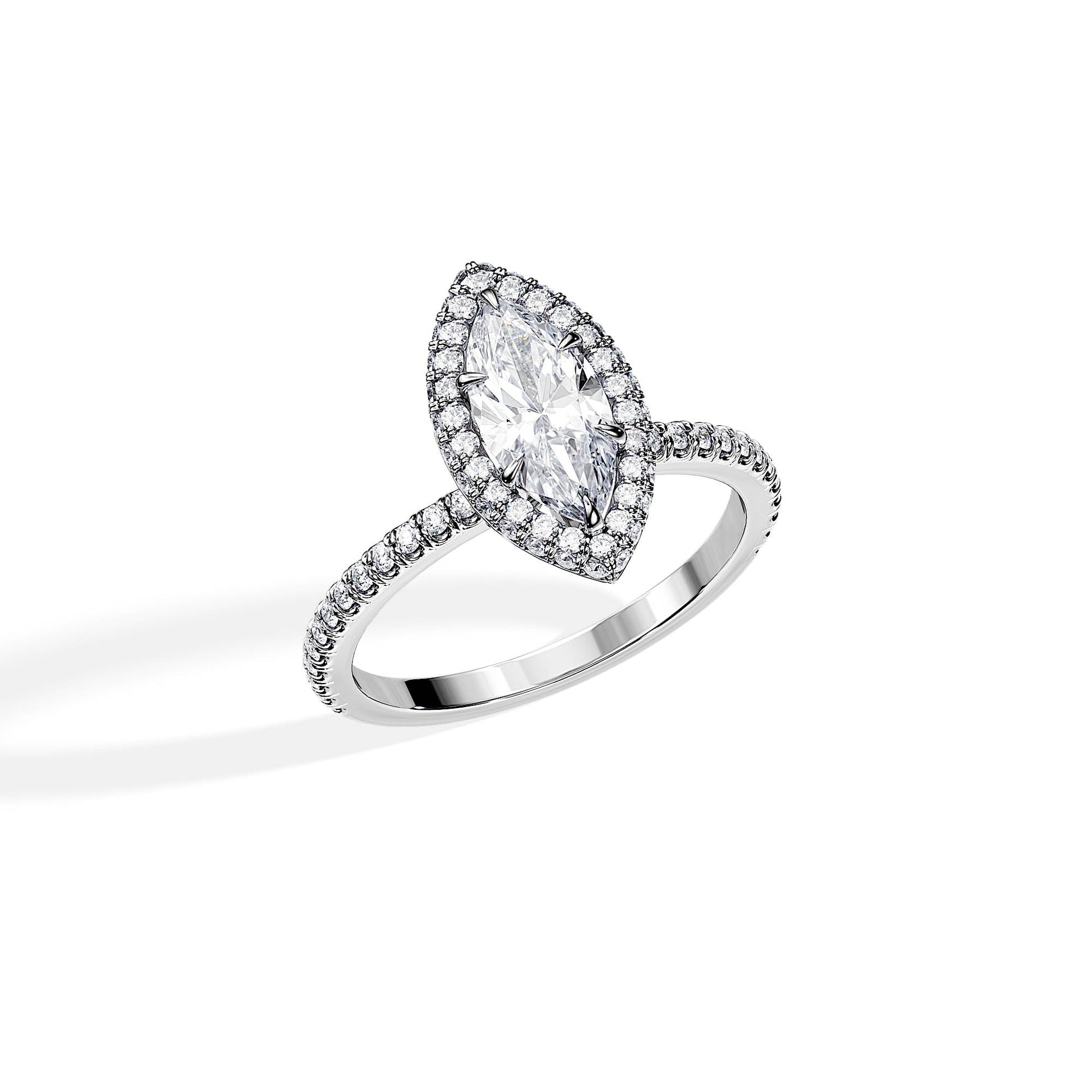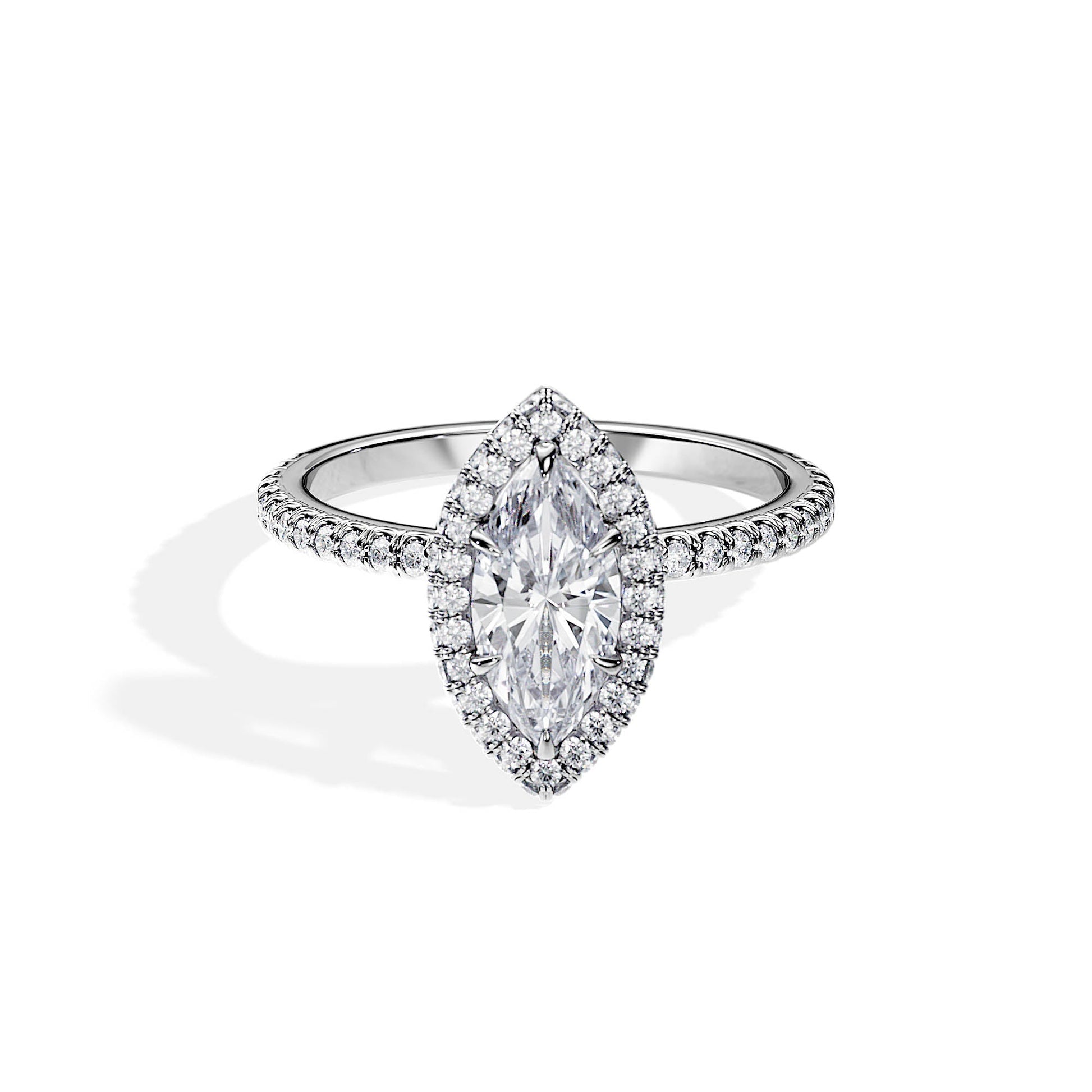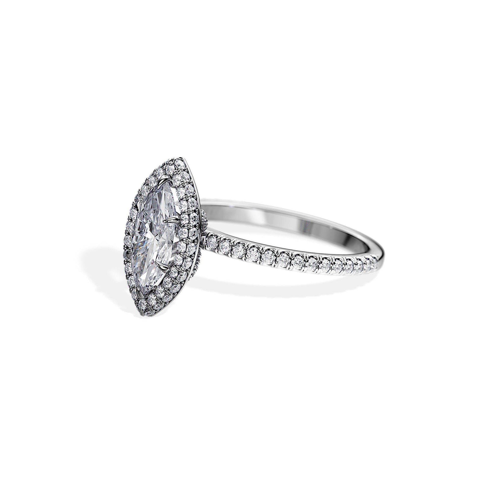 1.0 CT Marquise Cut Moissanite Halo & Pave Engagement Ring