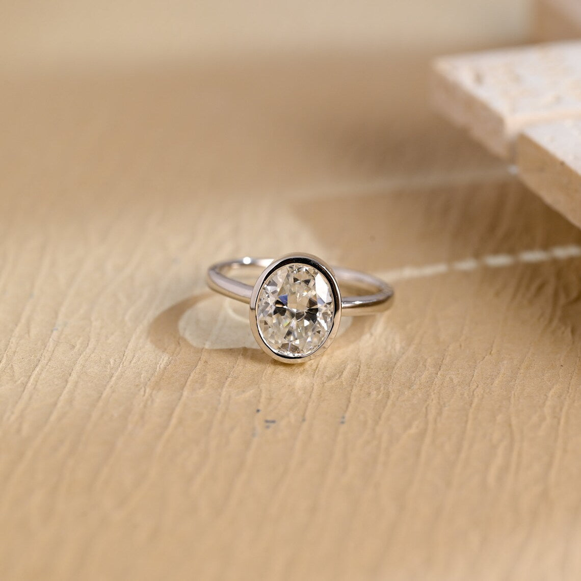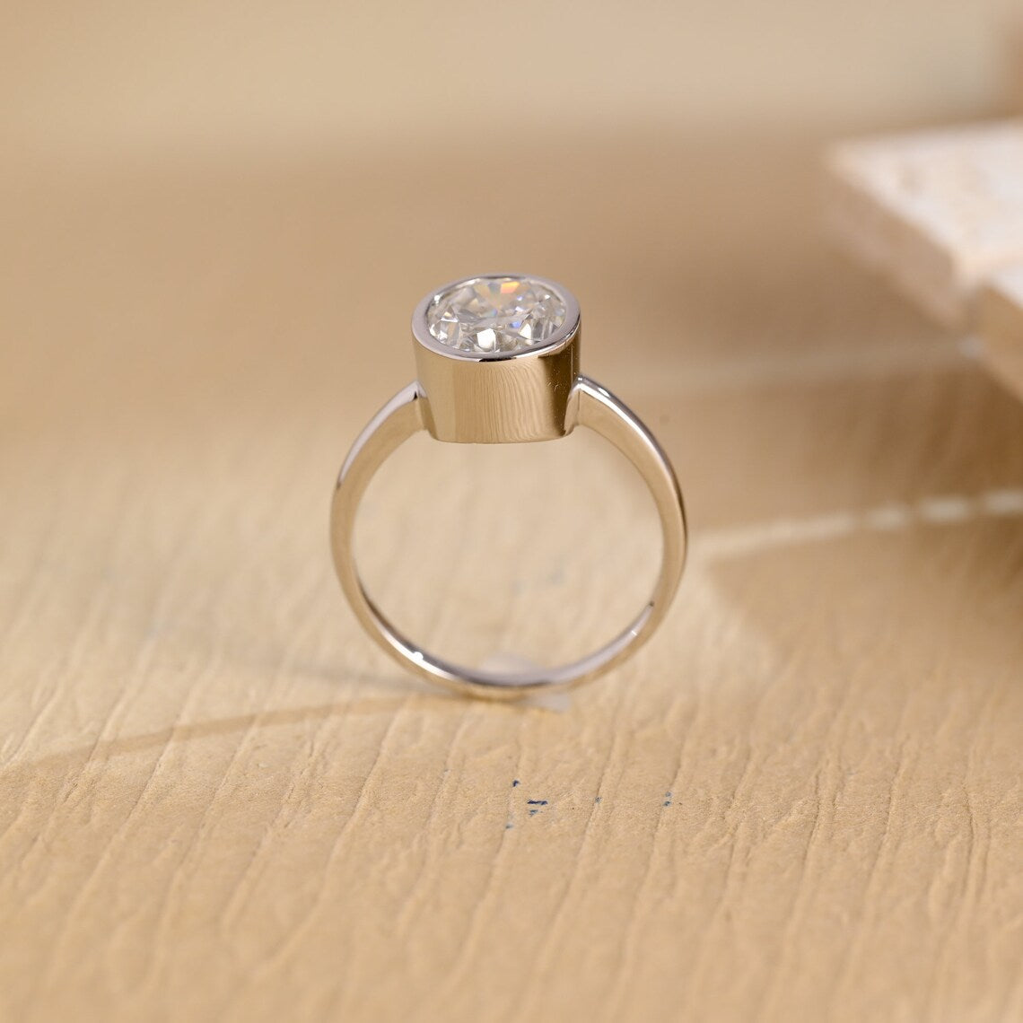 1.50 CT Oval Cut Bezel Setting Solitaire Moissanite Engagement Ring