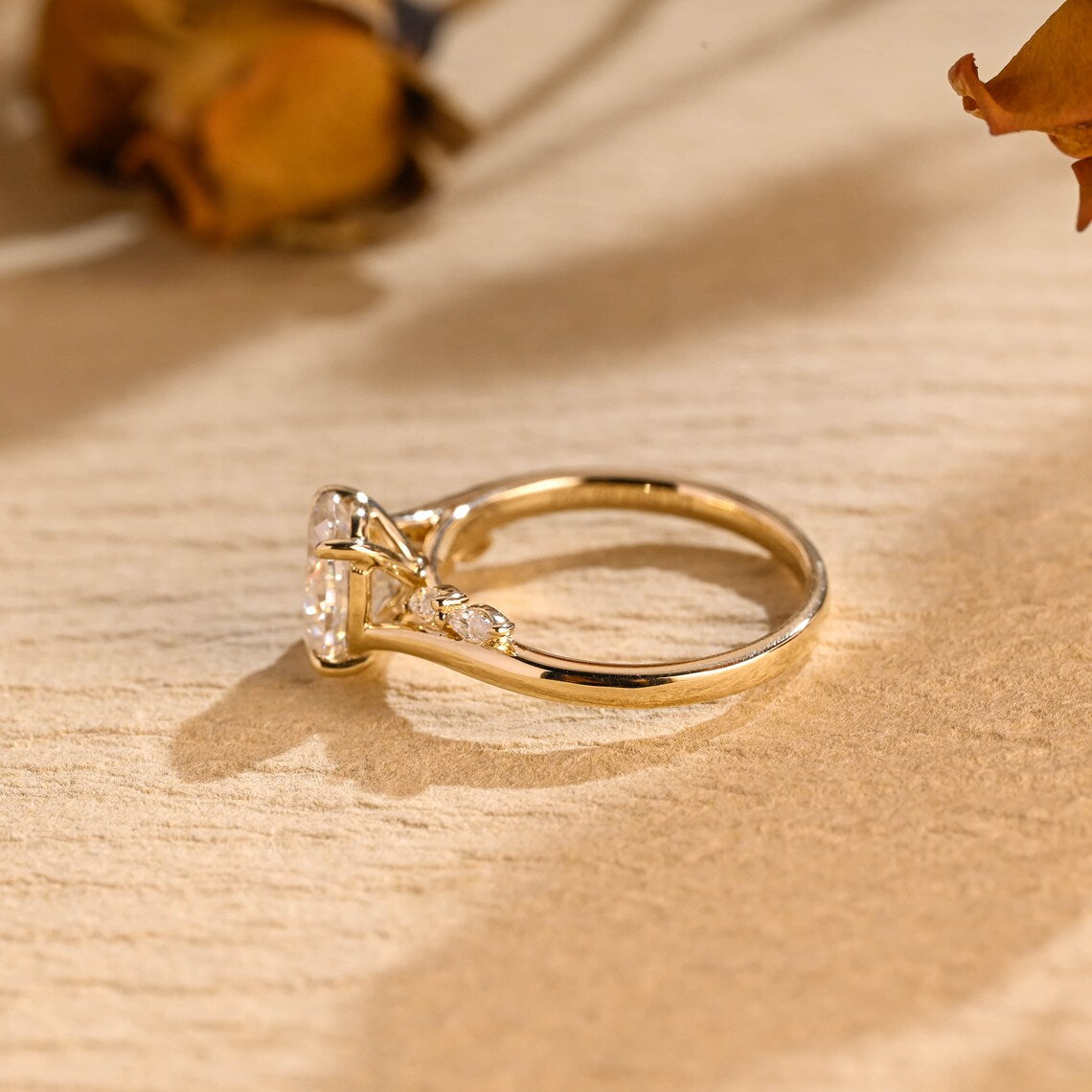 1.0 CT Oval Cut Cluster Diamond Moissanite Engagement Ring