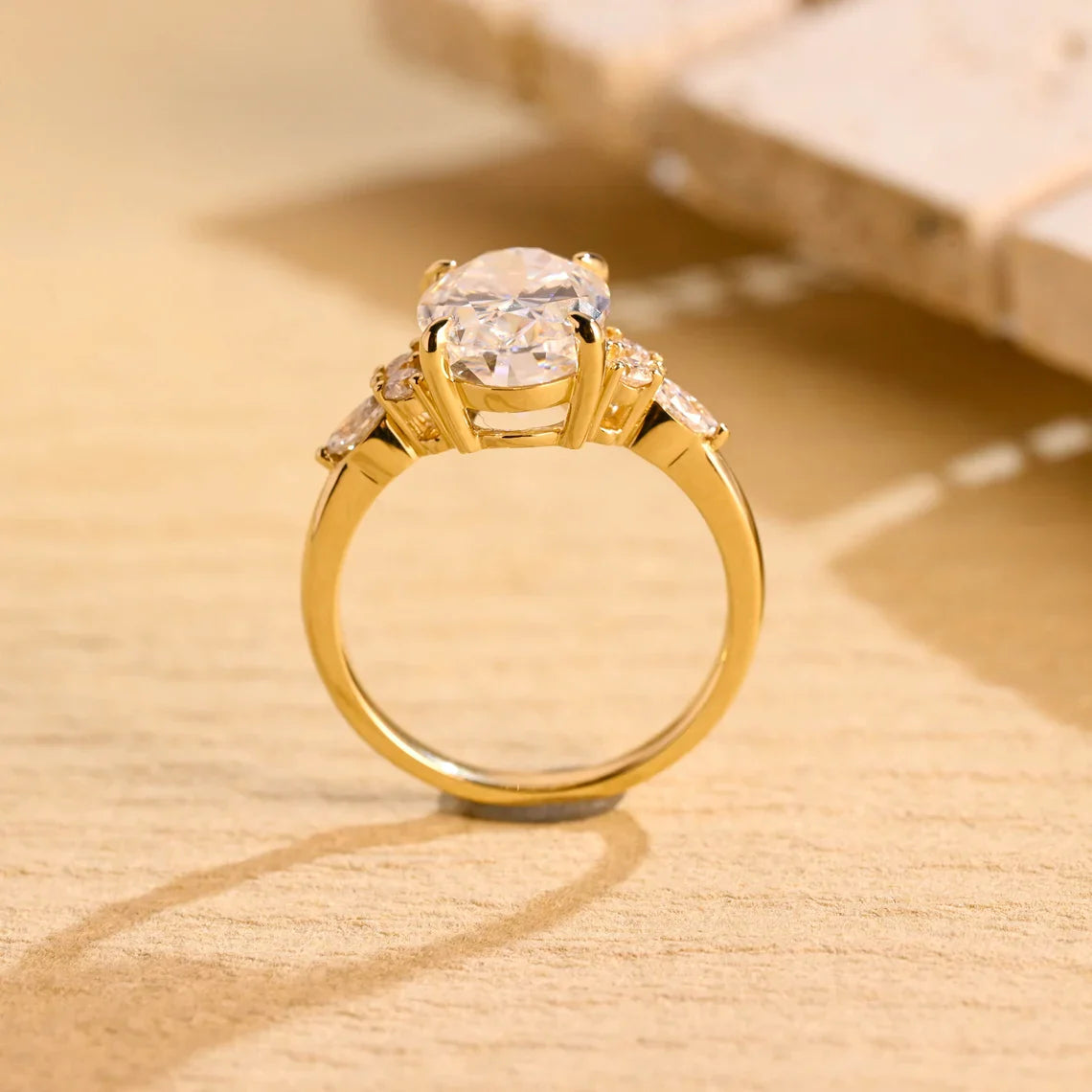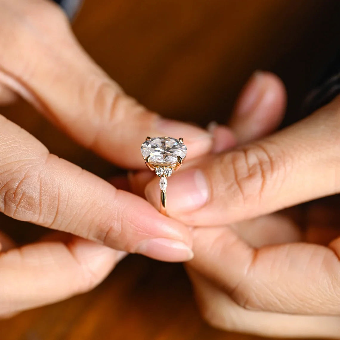 3.0 CT Oval Cut Cluster Diamond Moissanite Engagement Ring