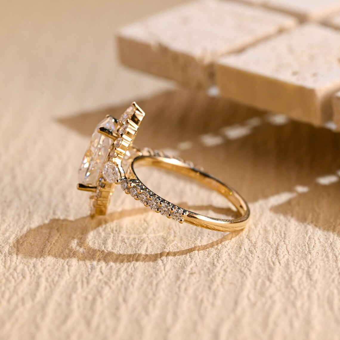1.0 CT Oval Cut Cluster Diamond Moissanite Engagement Ring