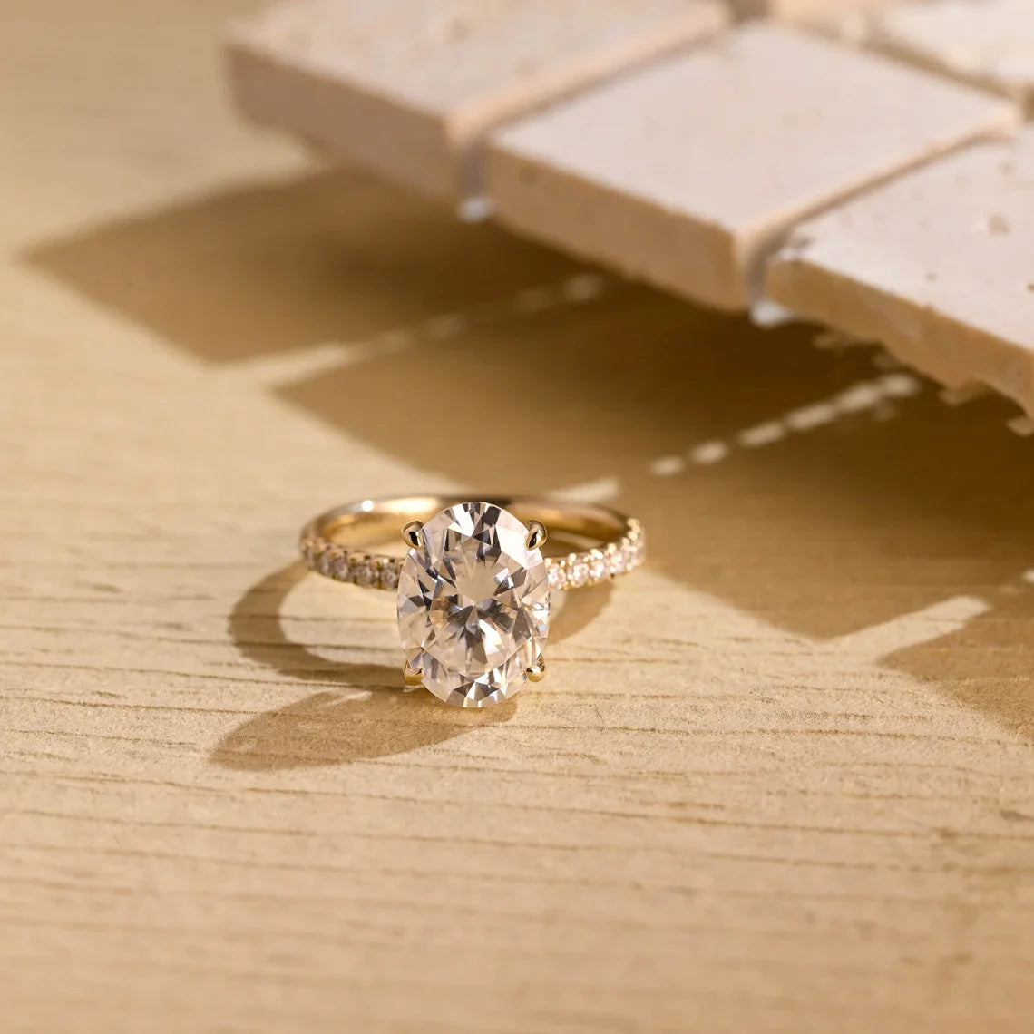 3.0 CT Oval Cut Hidden Halo Moissanite Engagement Ring