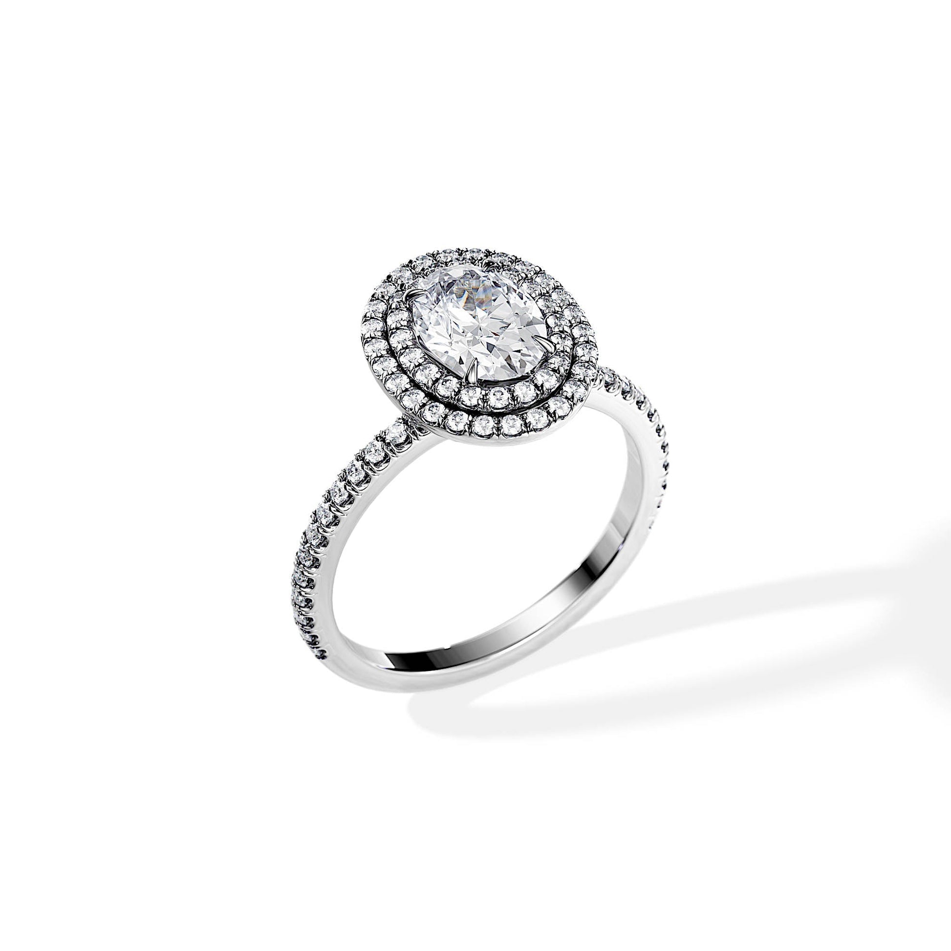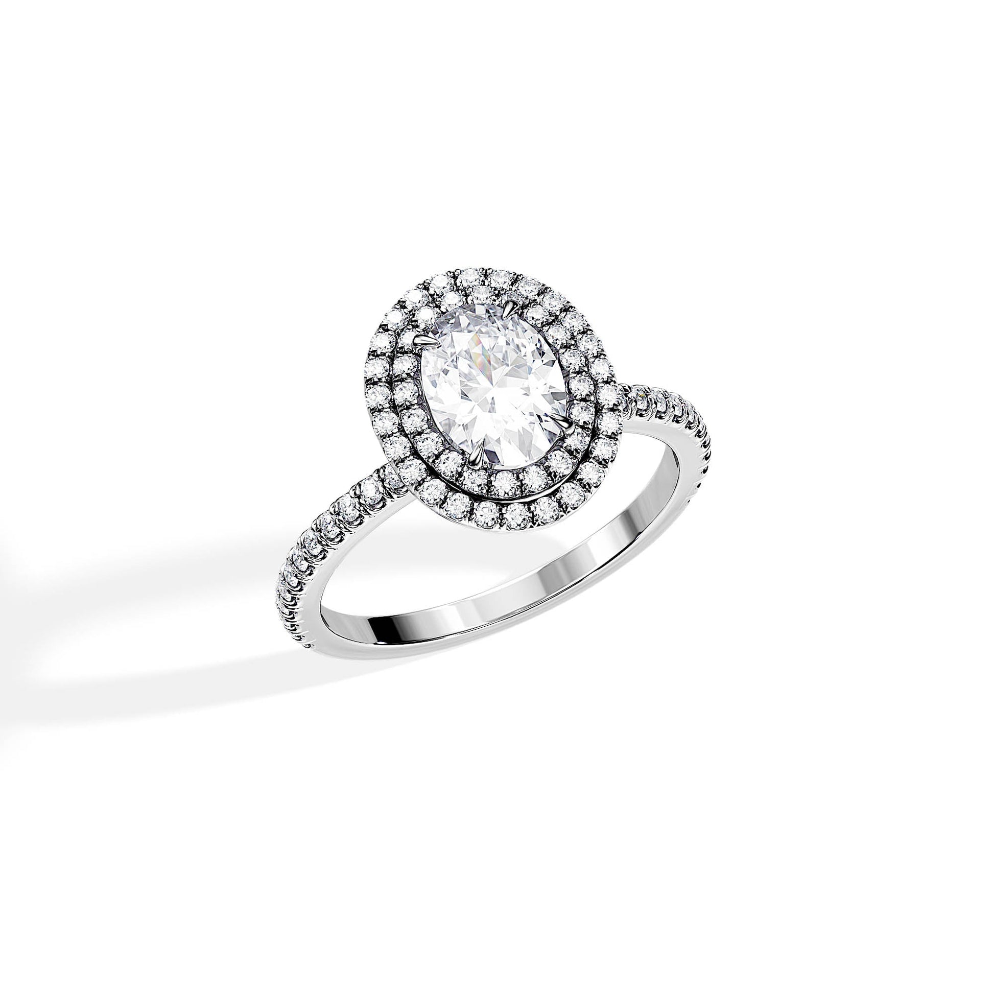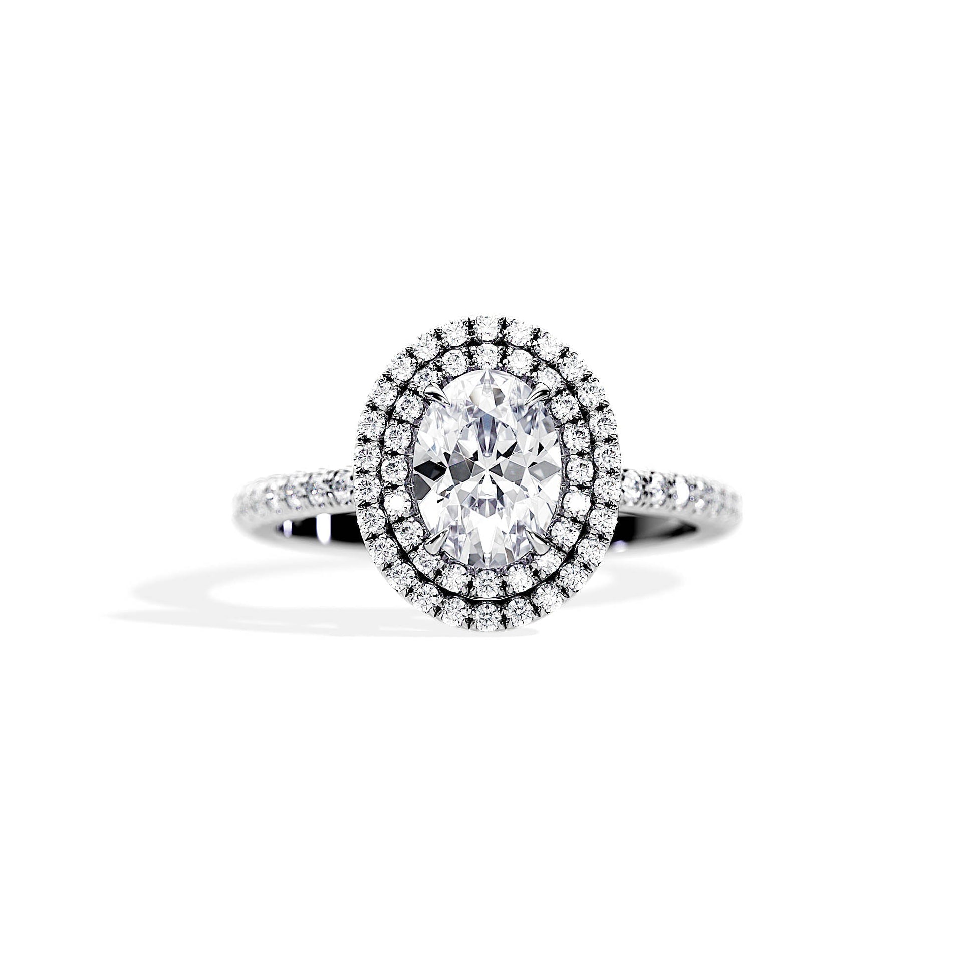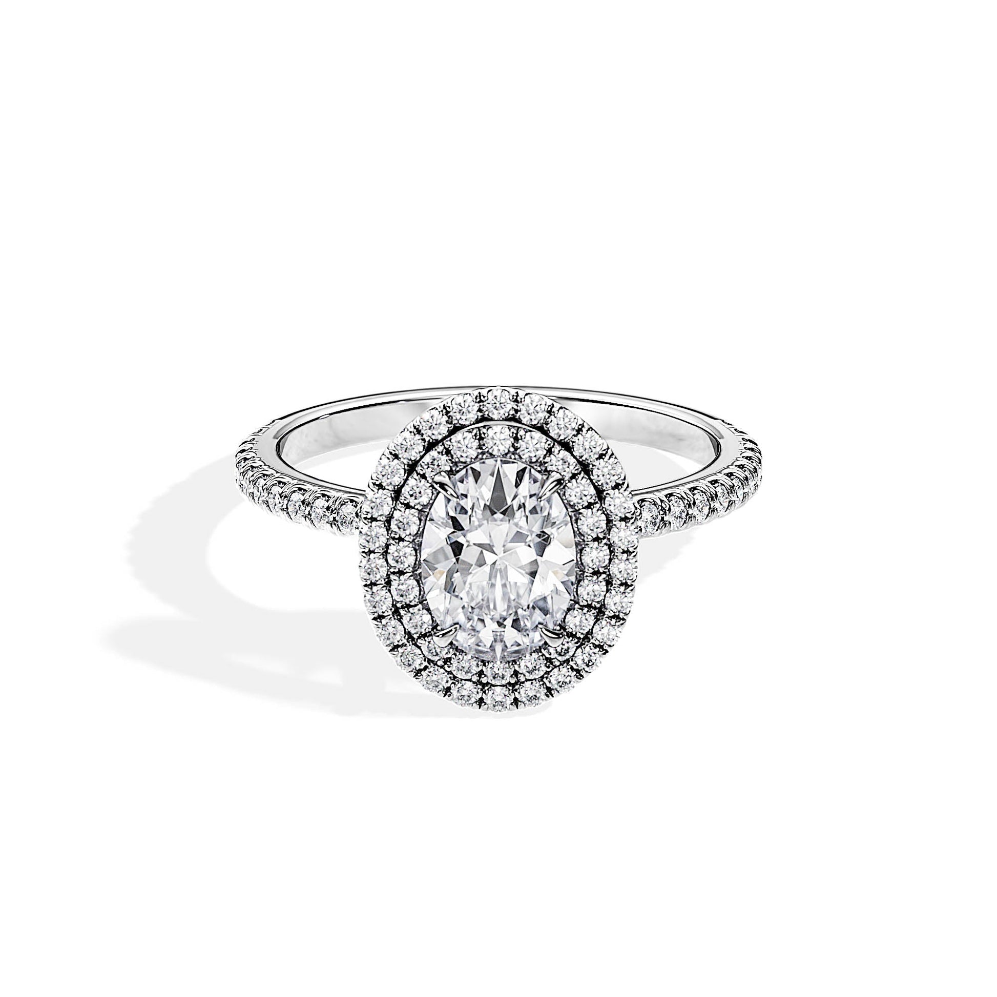 1.0 CT Oval Cut Moissanite Double Halo & Pave Engagement Ring