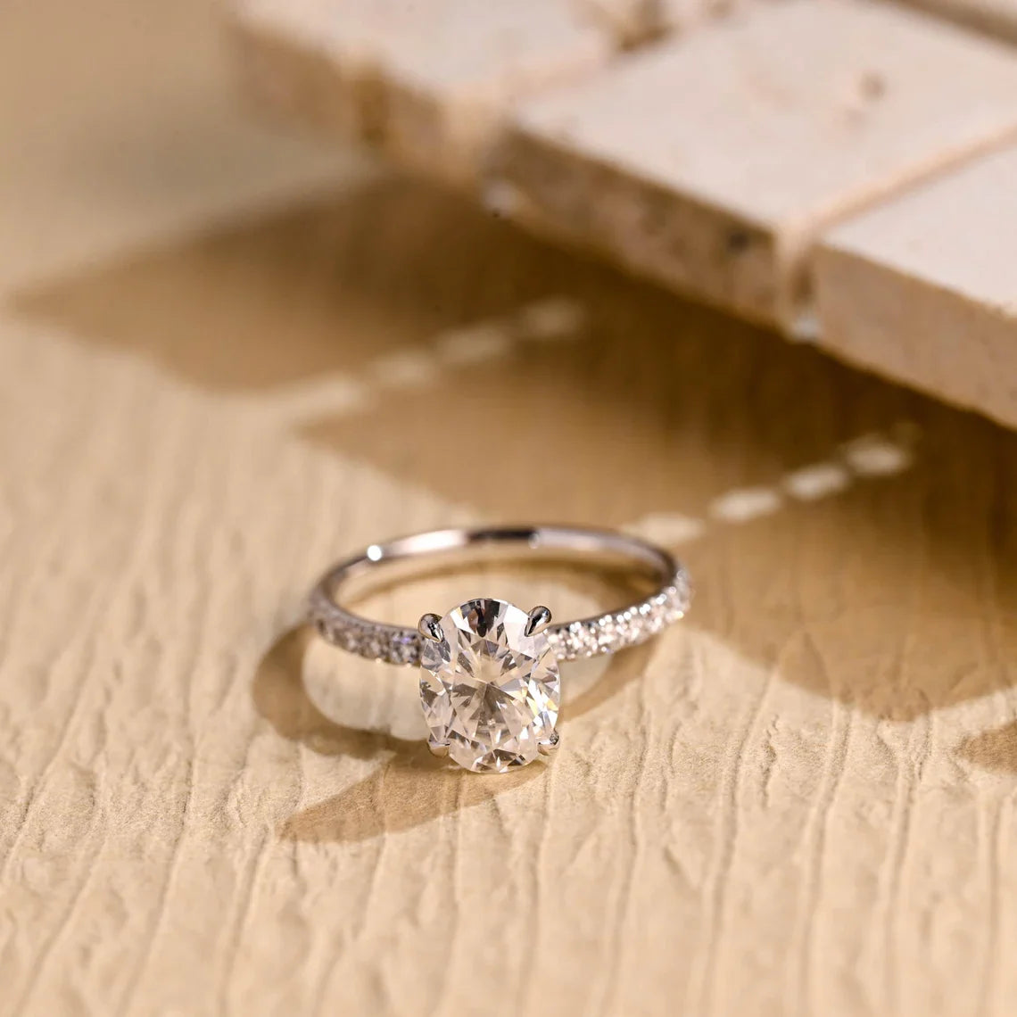 1.0 CT Oval Cut Pave Setting Moissanite Engagement RIng