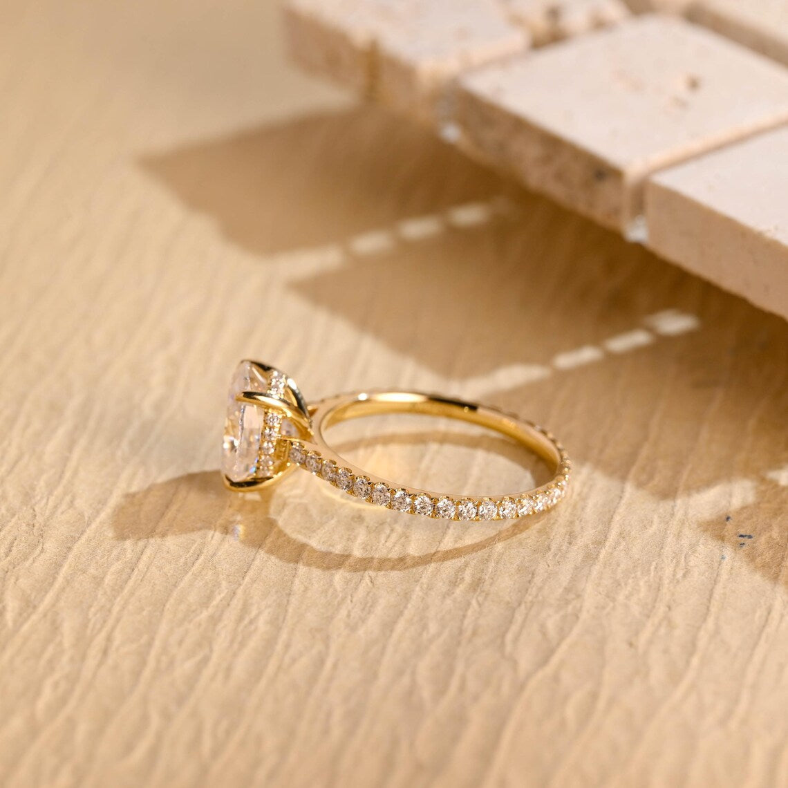 1.0 CT Oval Cut Pave Setting Moissanite Engagement Ring