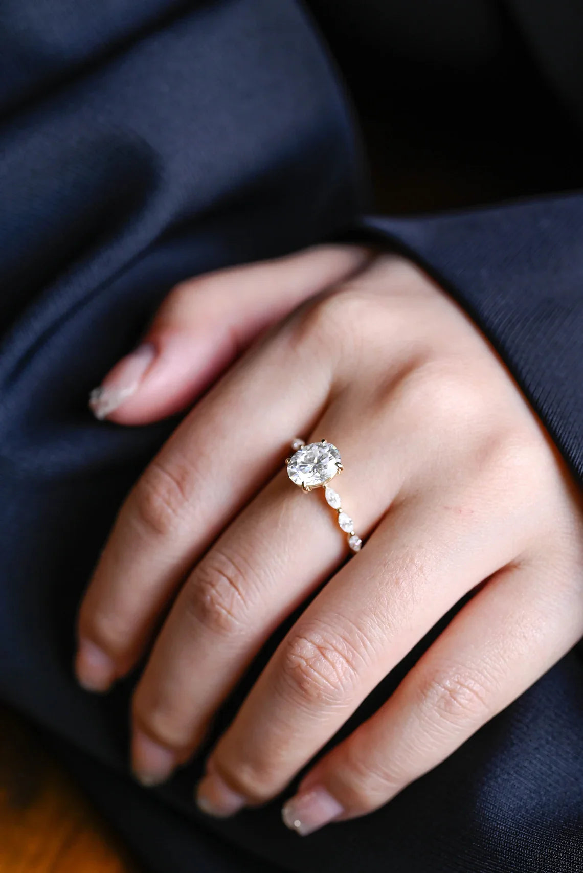 1.50 CT Oval Cut Pave Setting Moissanite Engagement Ring