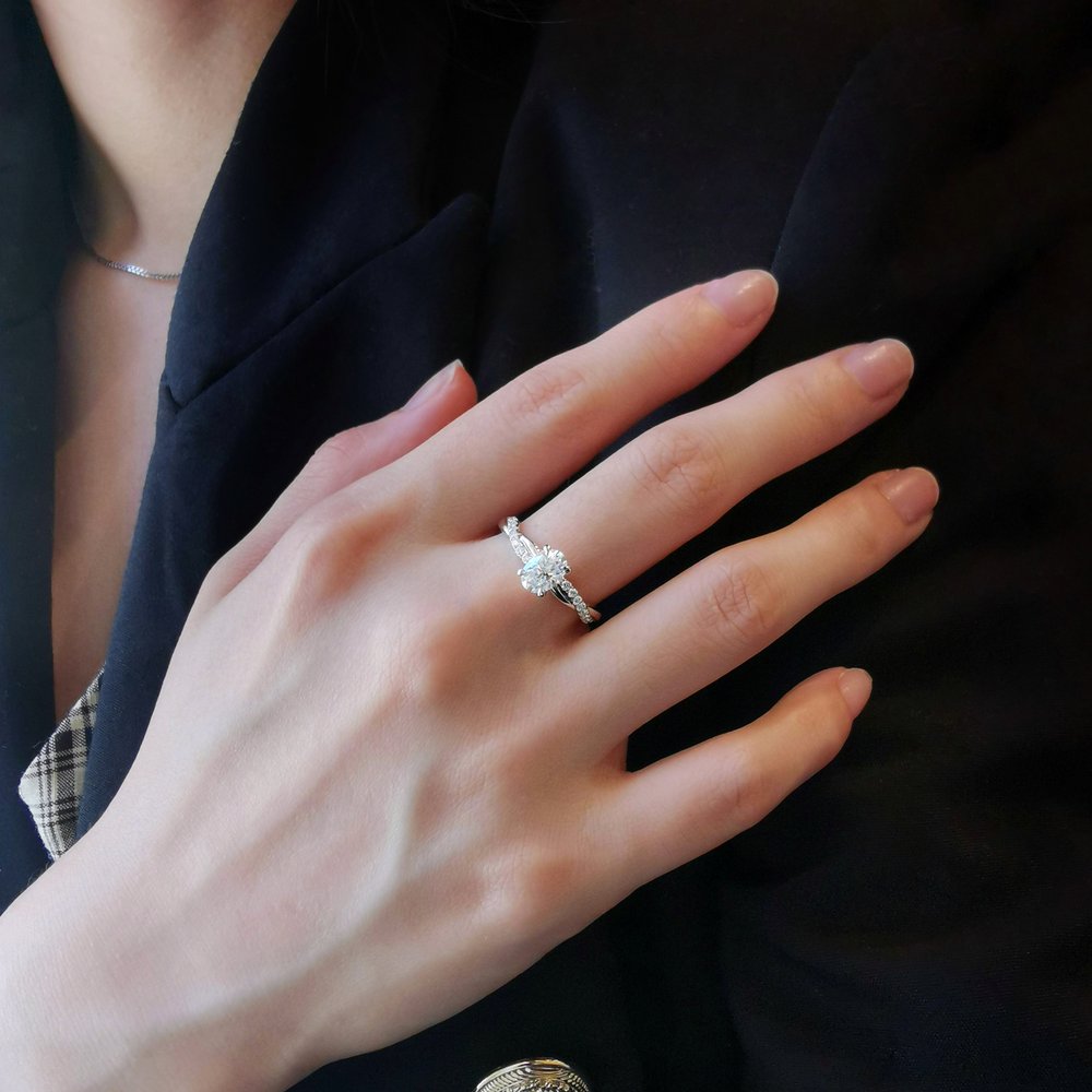 ✥ The Ring Shown in the Picture Holds a Beautiful 1.0 CT Oval Cut Moissanite.