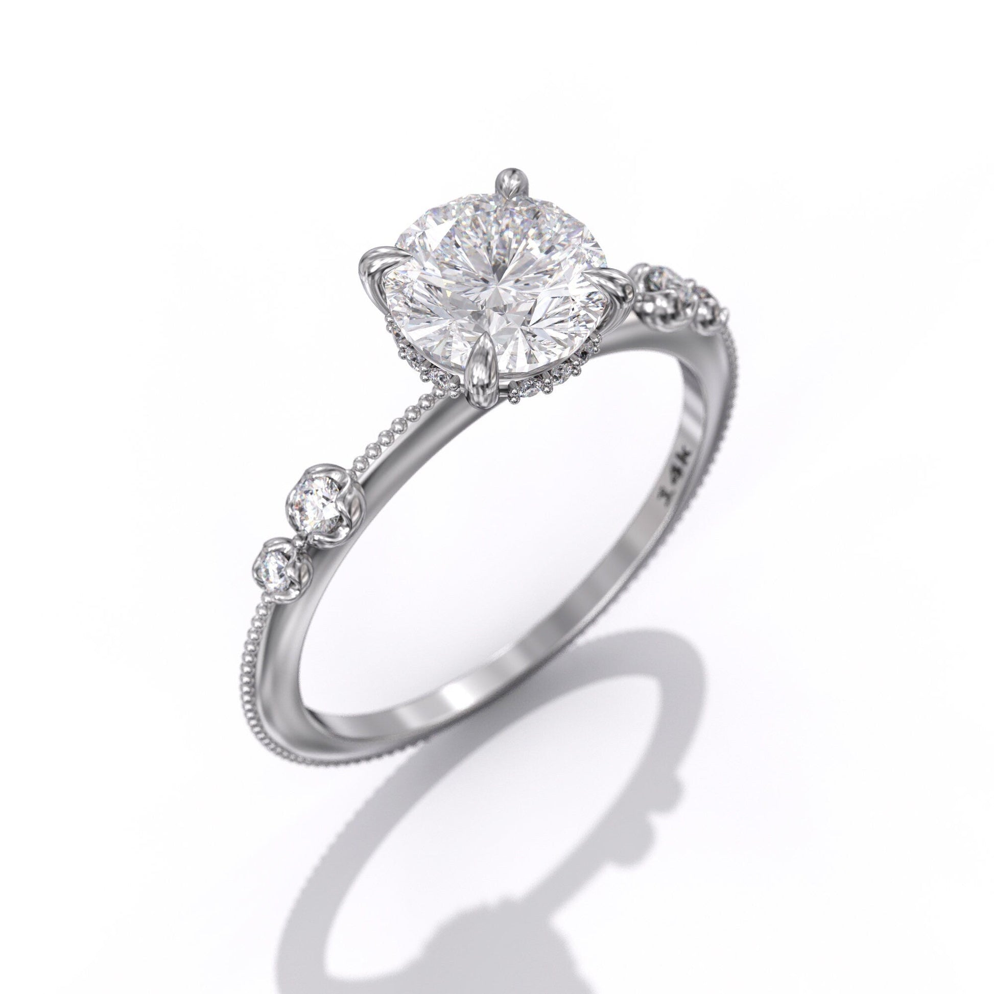 1.0 CT Round Cut Moissanite Unique Engagement Ring