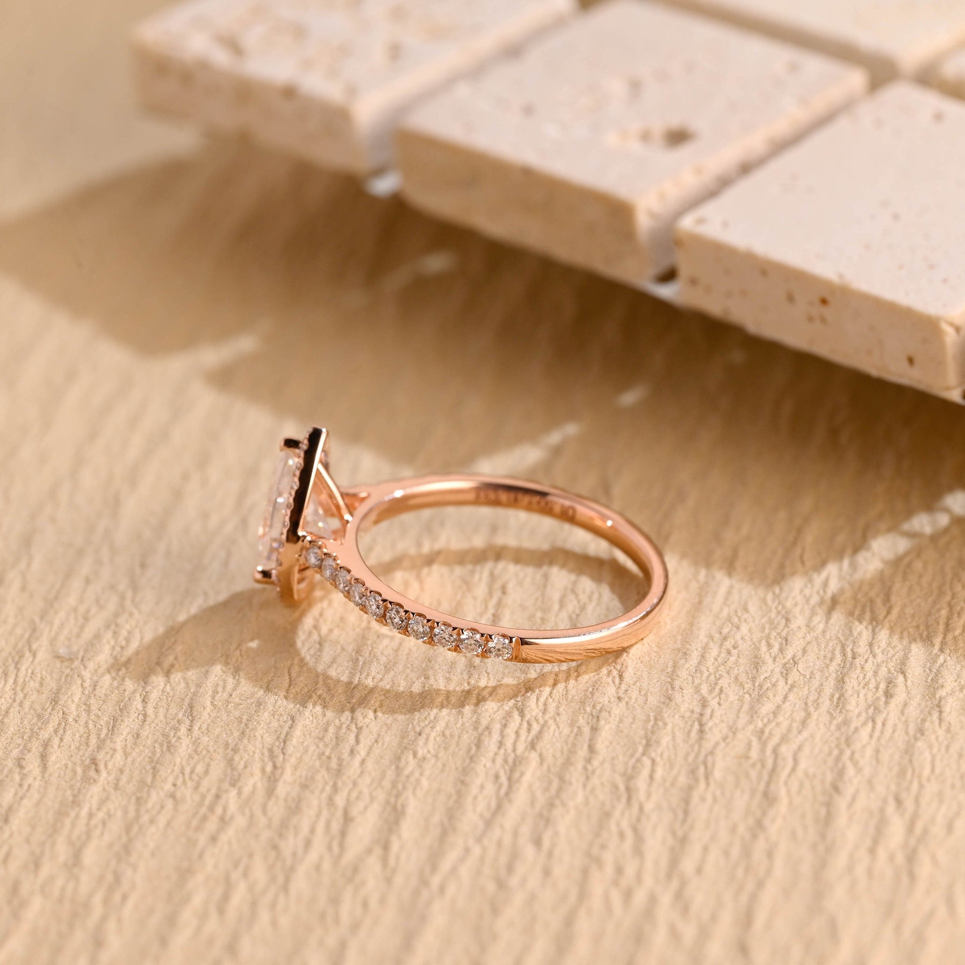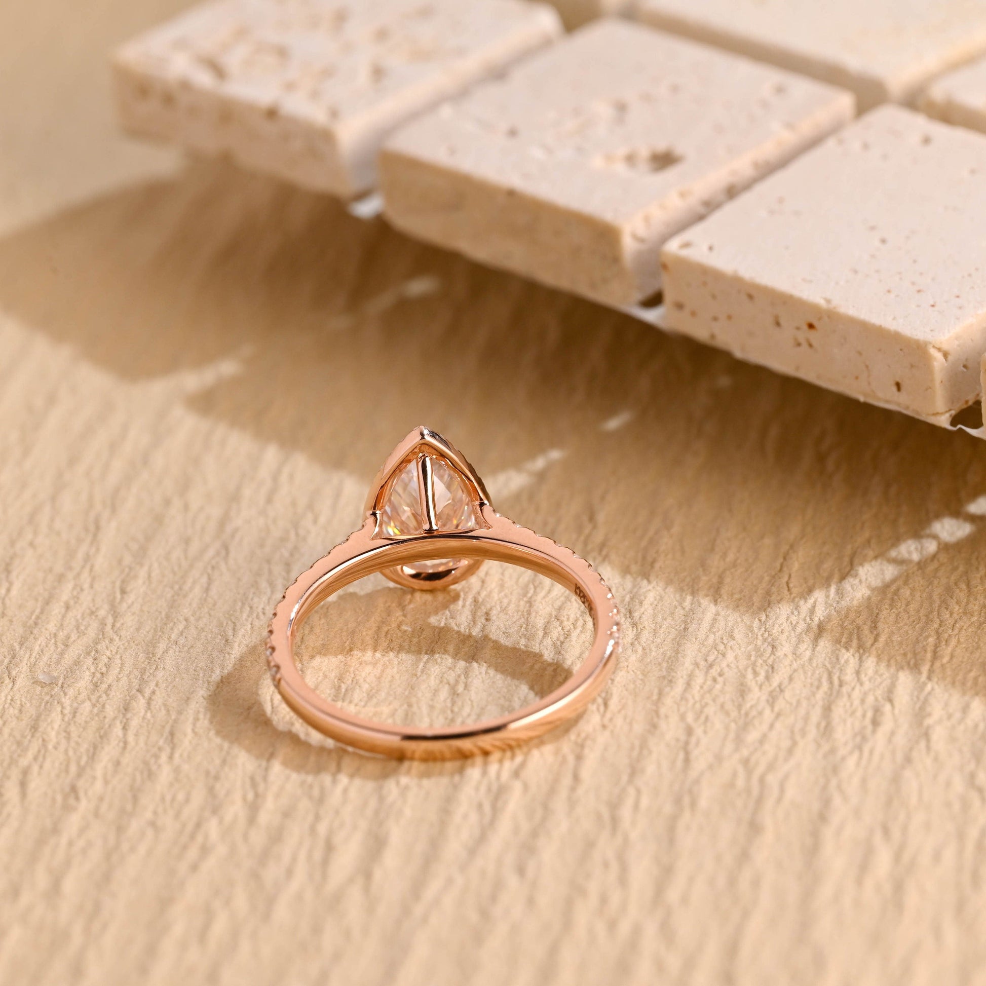 1.0 CT Pear Diamond Halo Diamond Moissanite Engagement Ring