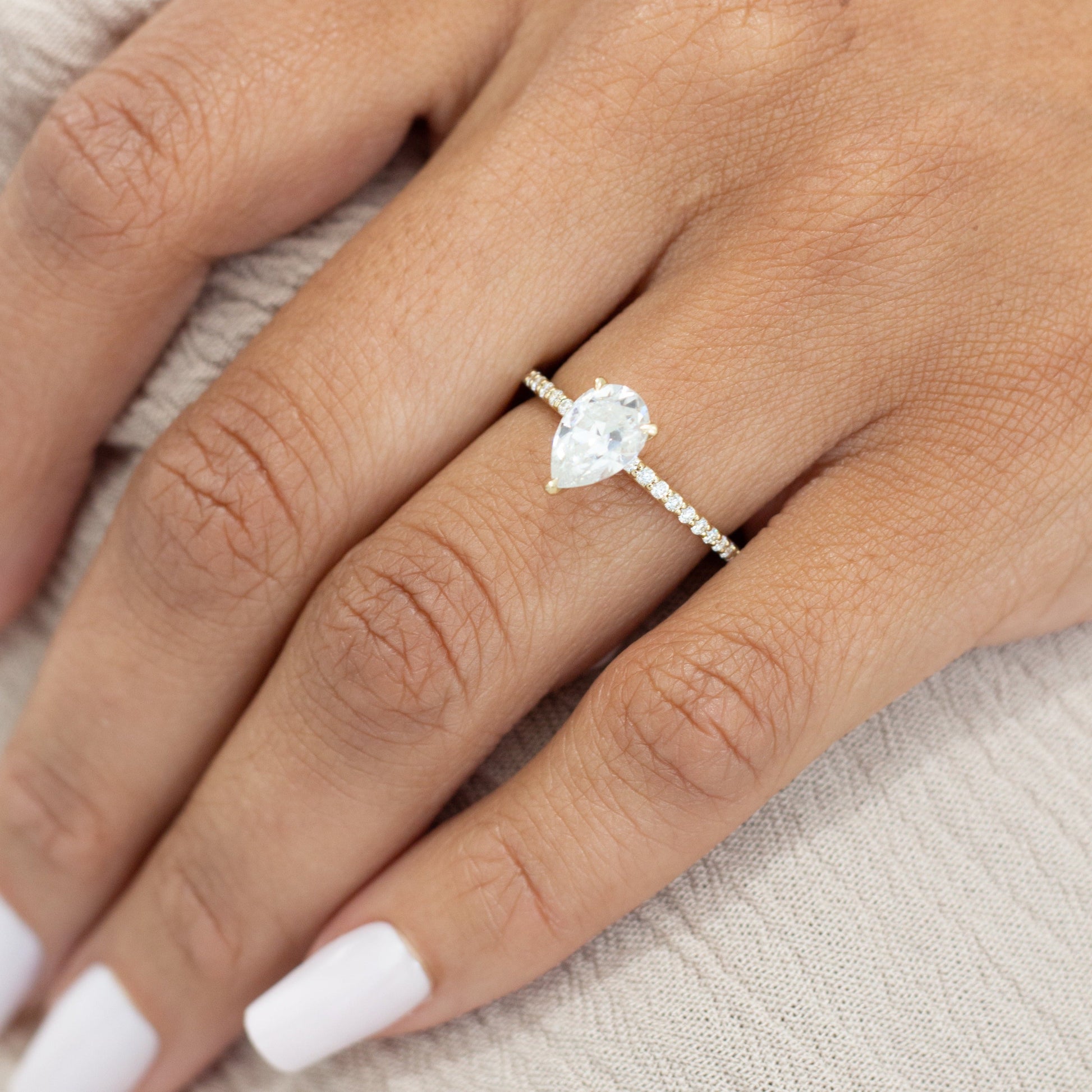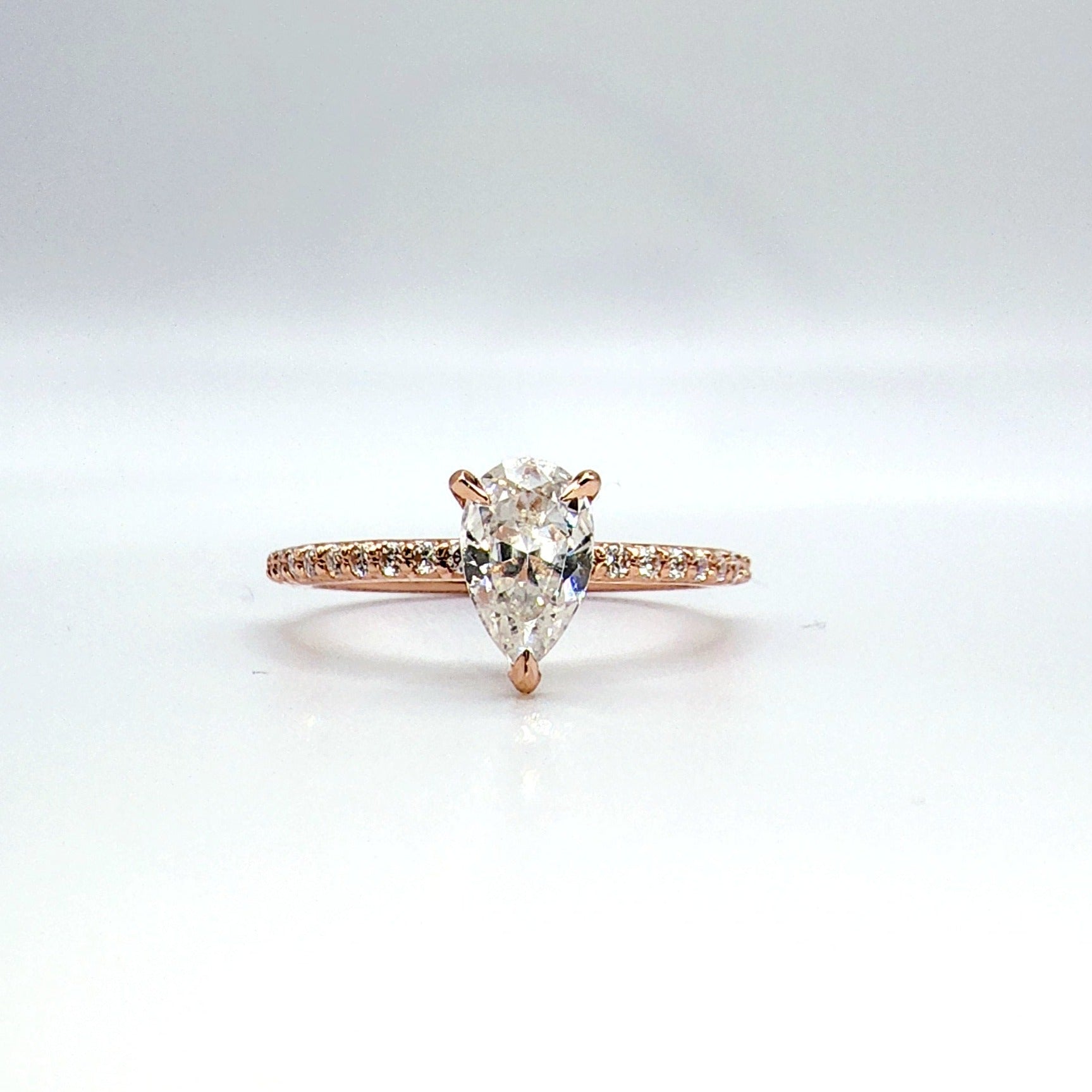 1.0 CT Pear Moissanite Pave Moissanite Engagement Ring