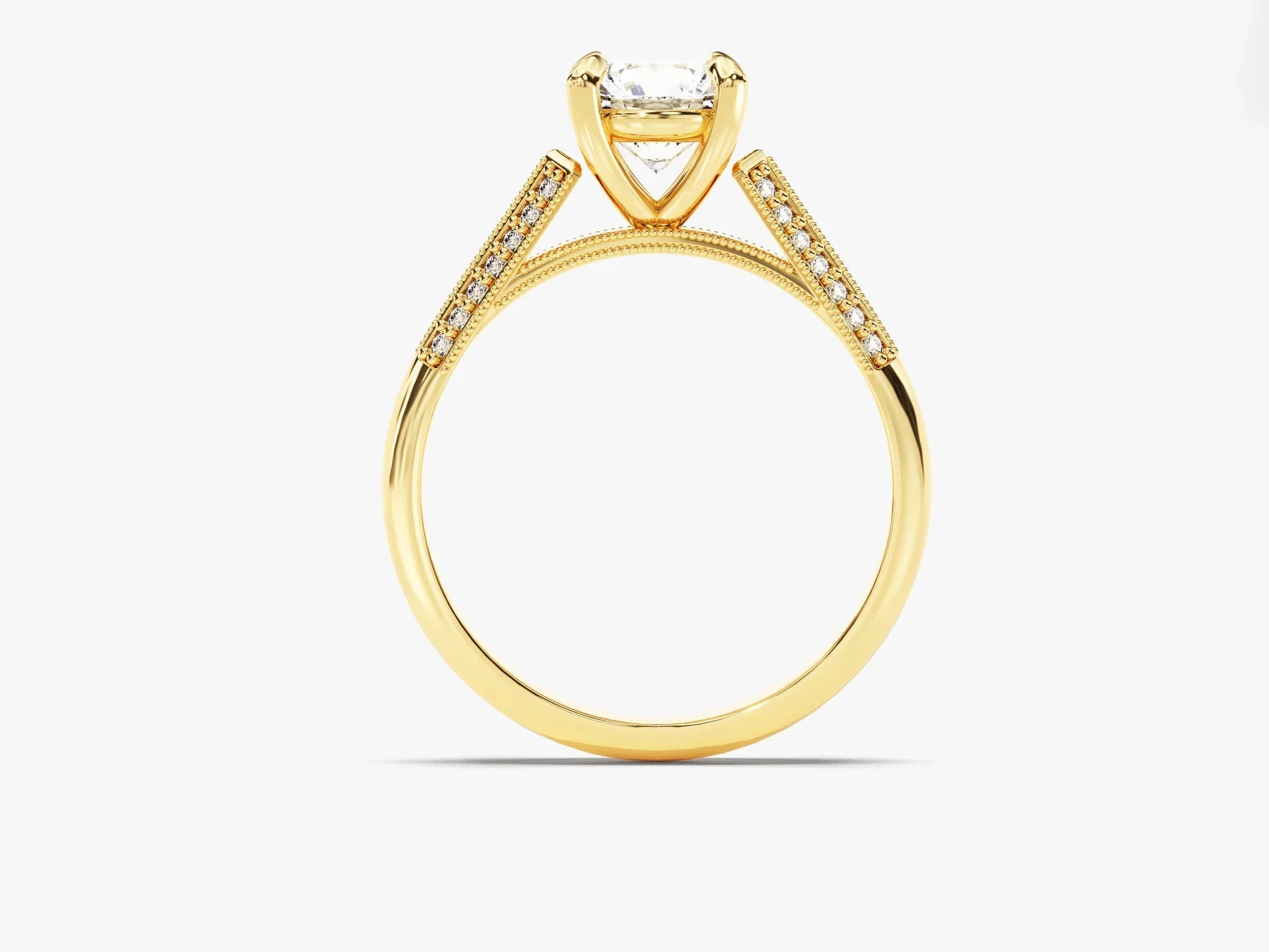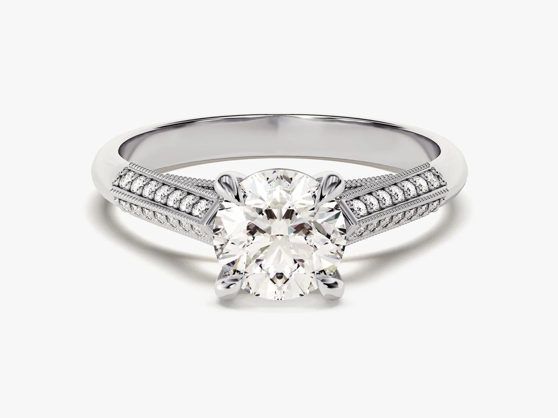1.0 CT Round Diamond Milgrain Pave Setting Moissanite Engagement Ring