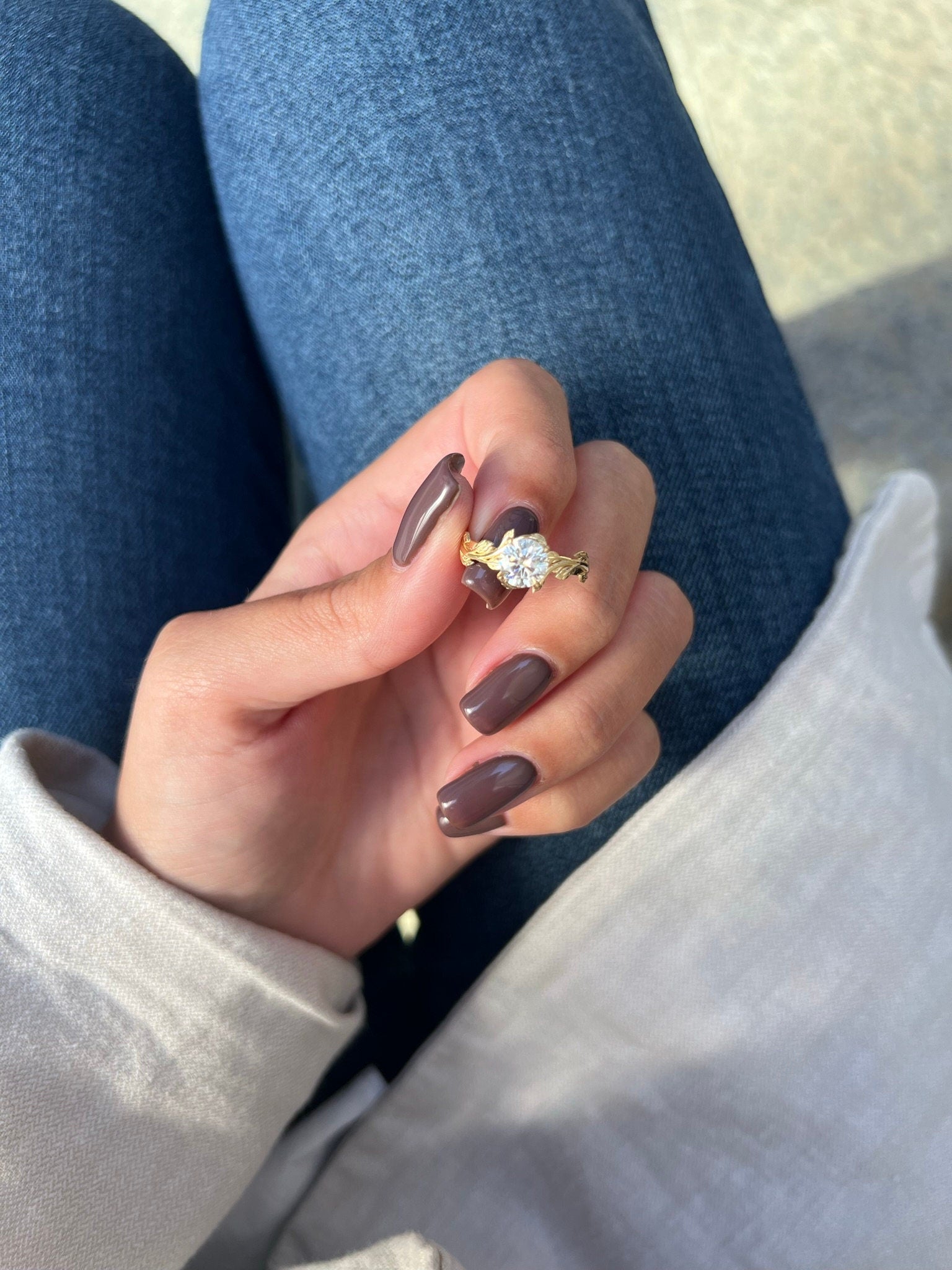 ✥ Celebrate your unique love with the 1.0 CT Round Cut Moissanite Diamond Twig Engagement Ring. The brilliant round-cut moissanite shines with exceptional clarity and fire. set gracefully in a band designed to resemble delicate. intertwining twigs. Enhanced with sparkling diamonds. this nature-inspired design combines organic charm with sophisticated elegance. Perfect for those who appreciate a blend of timeless beauty and natural allure. this engagement ring is a stunning symbol of a love that’s both enduring and enchantingly original.