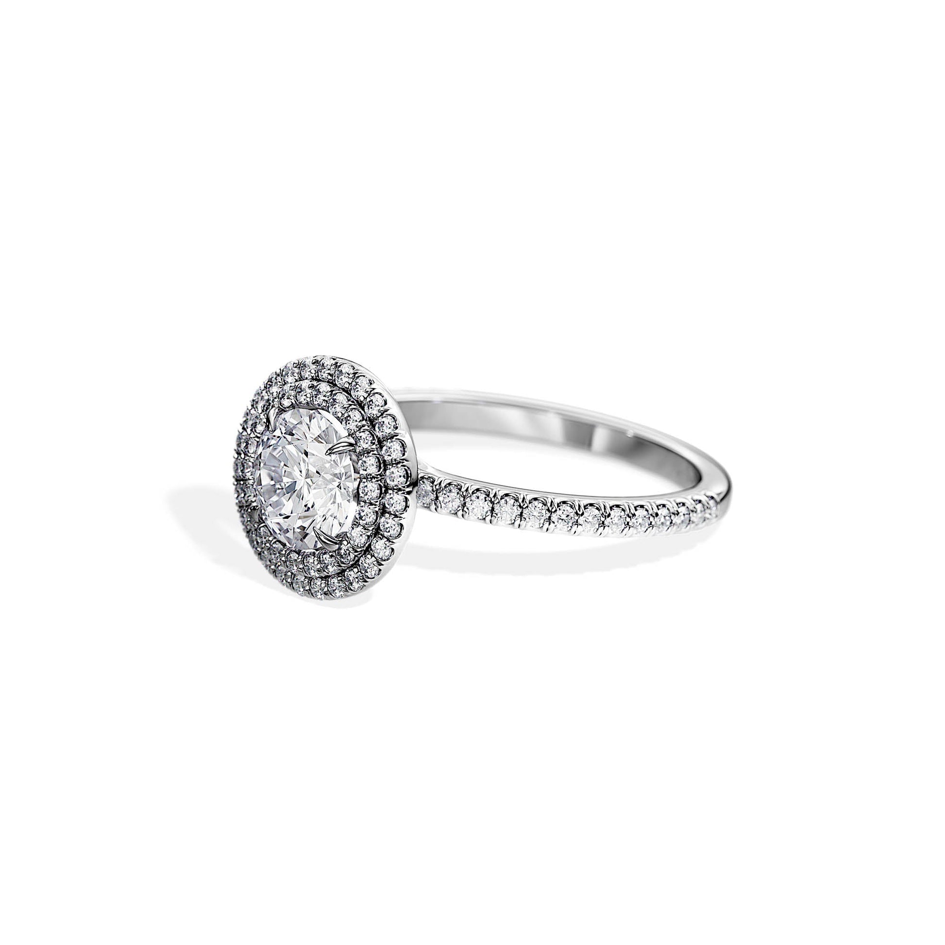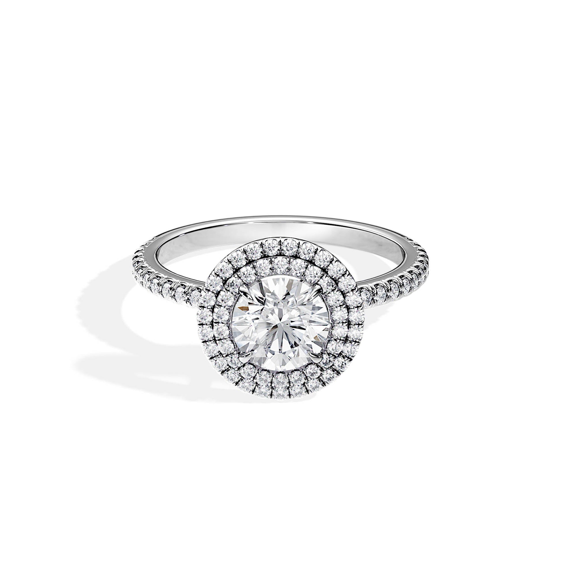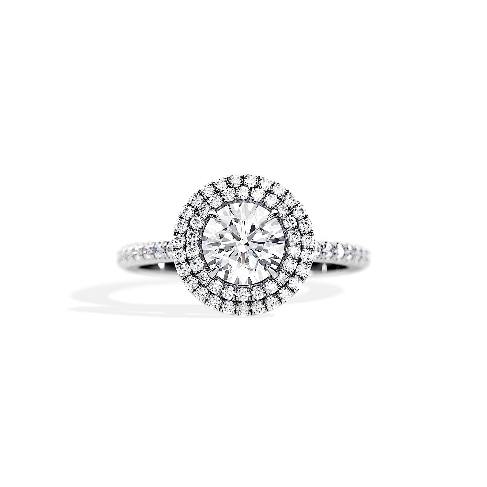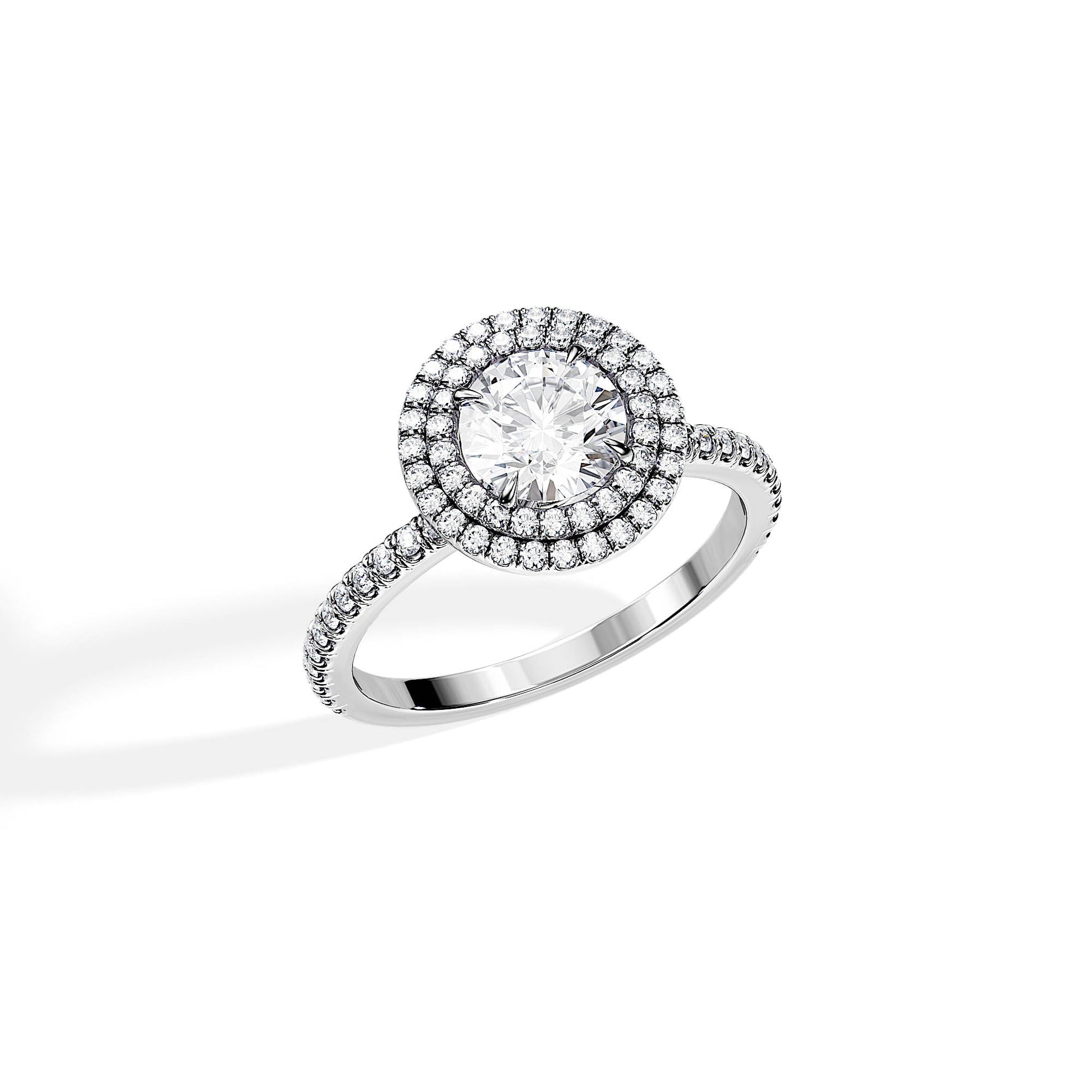 1.0 CT Round Cut Moissanite Double Halo & Pave Engagement Ring