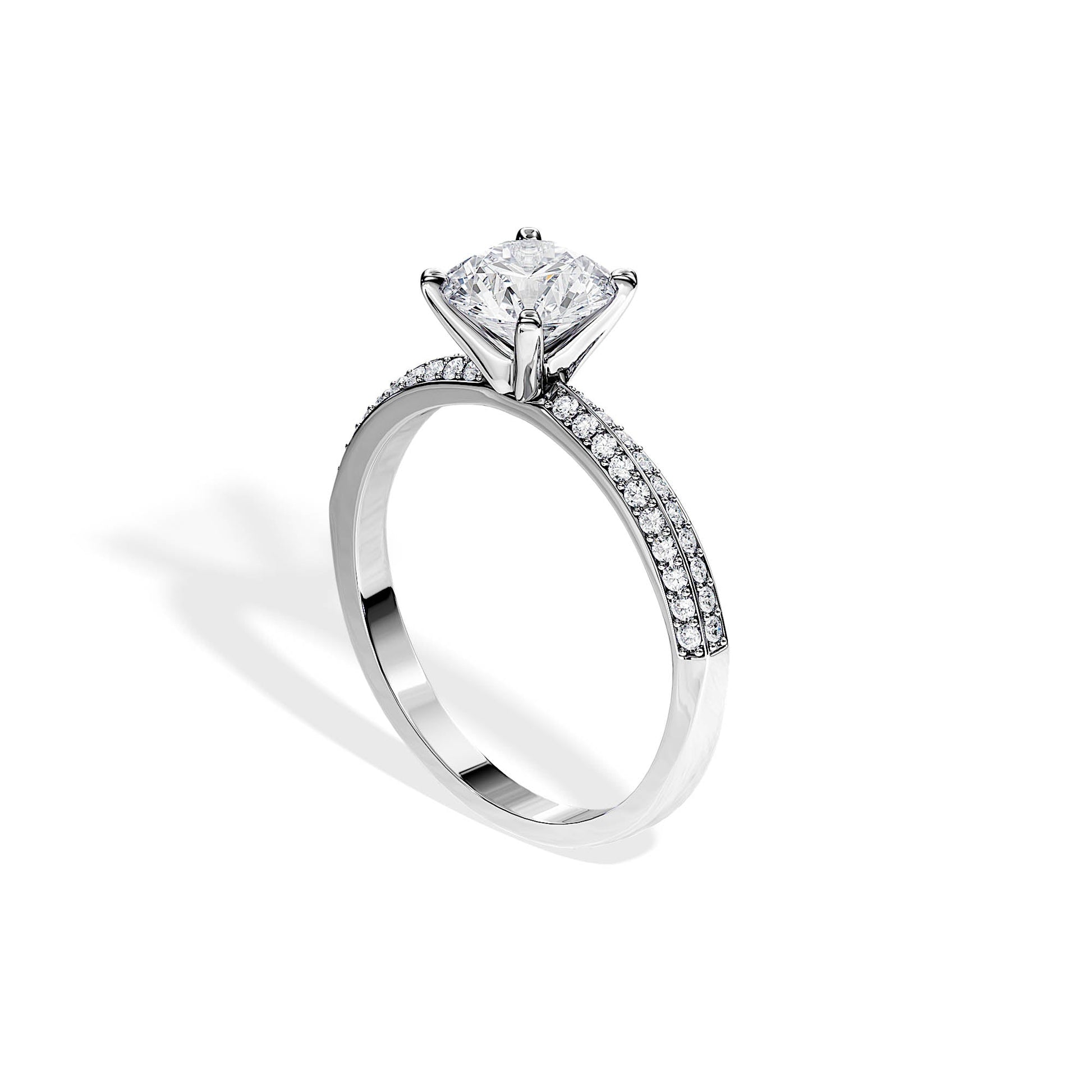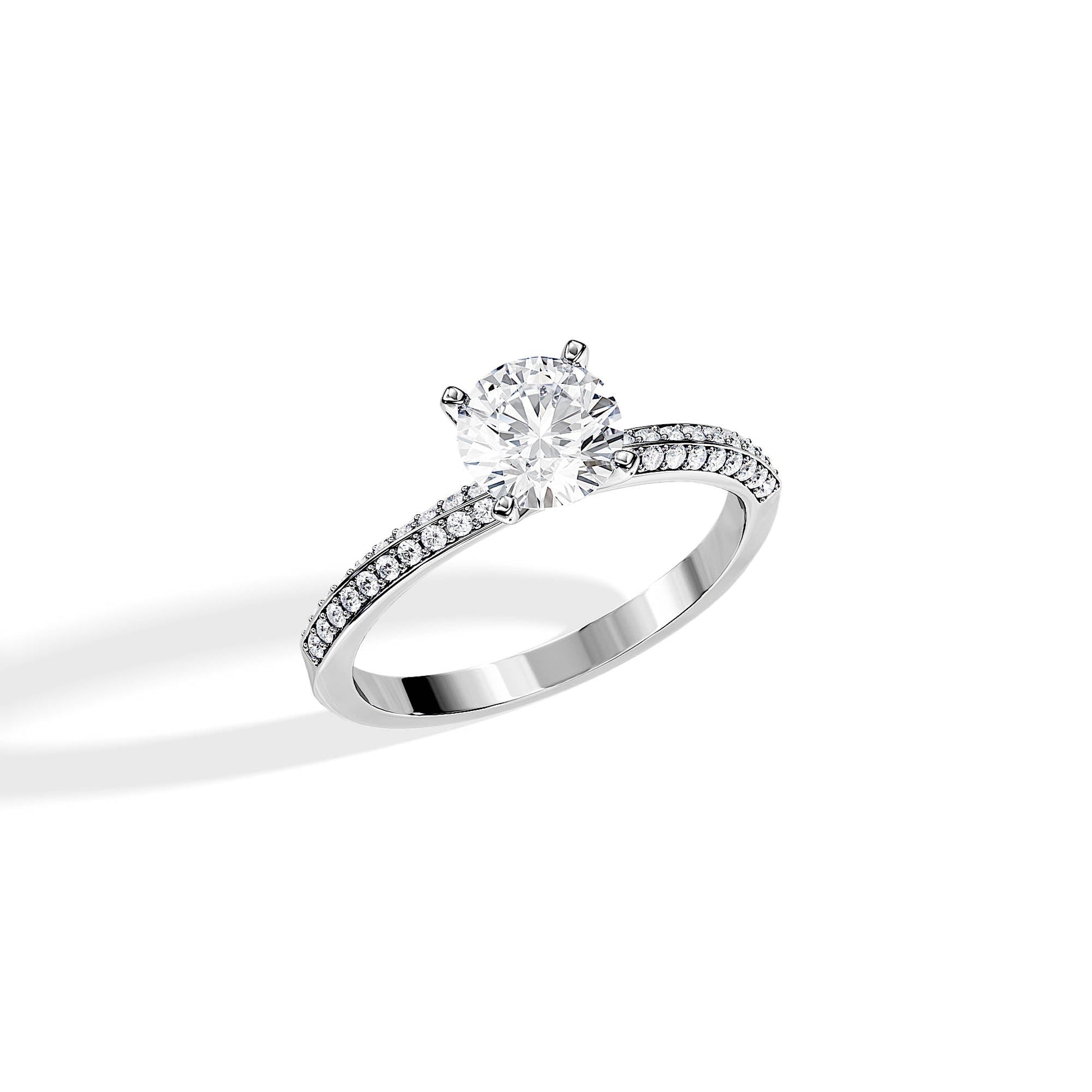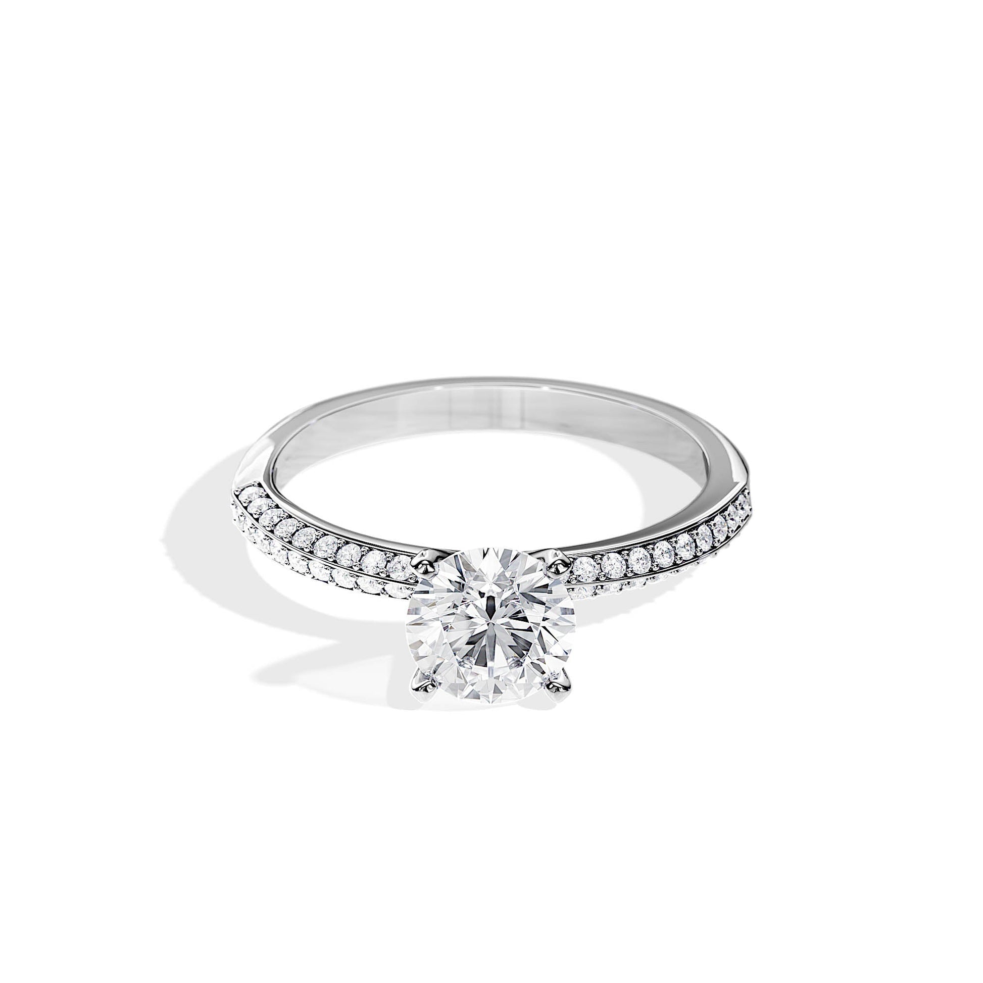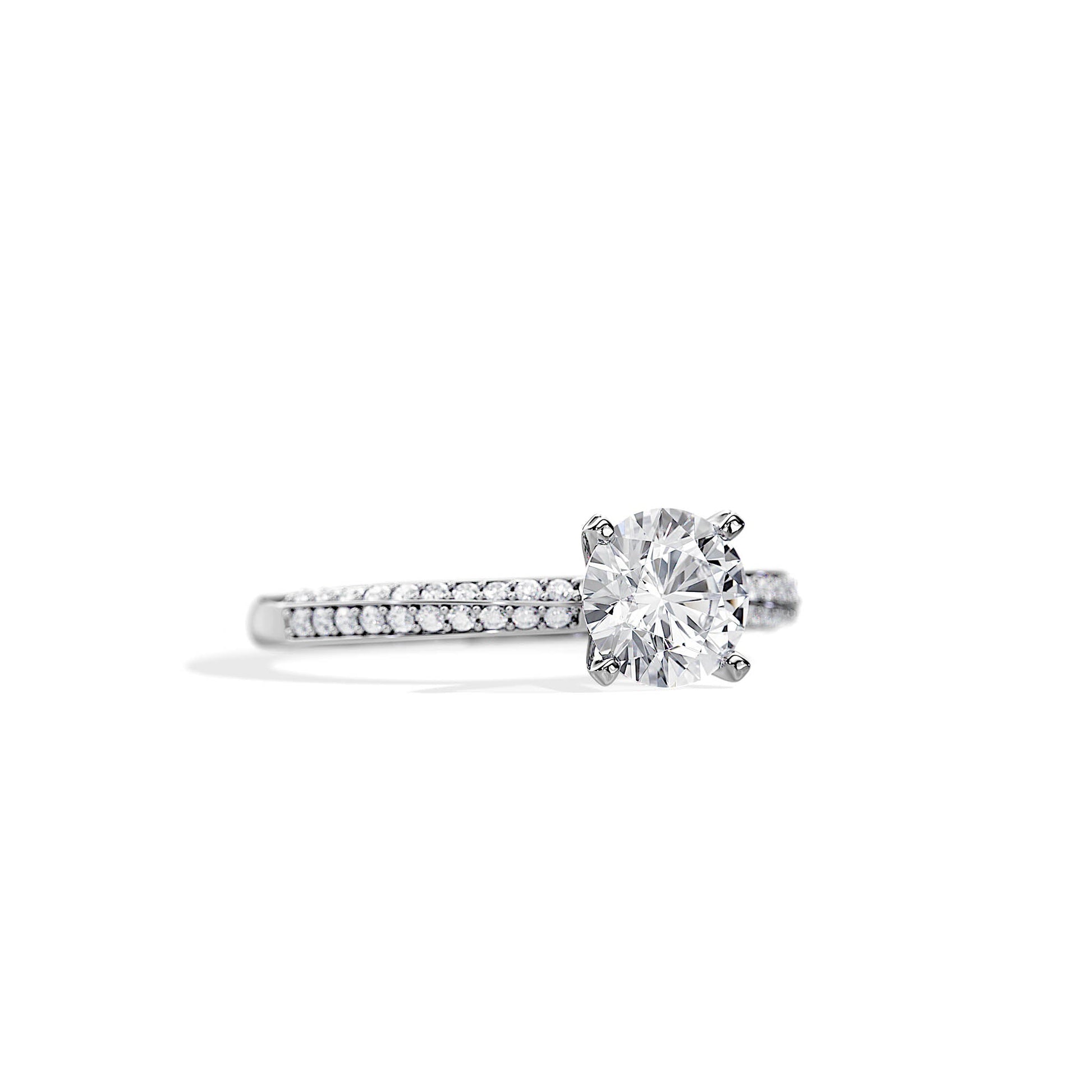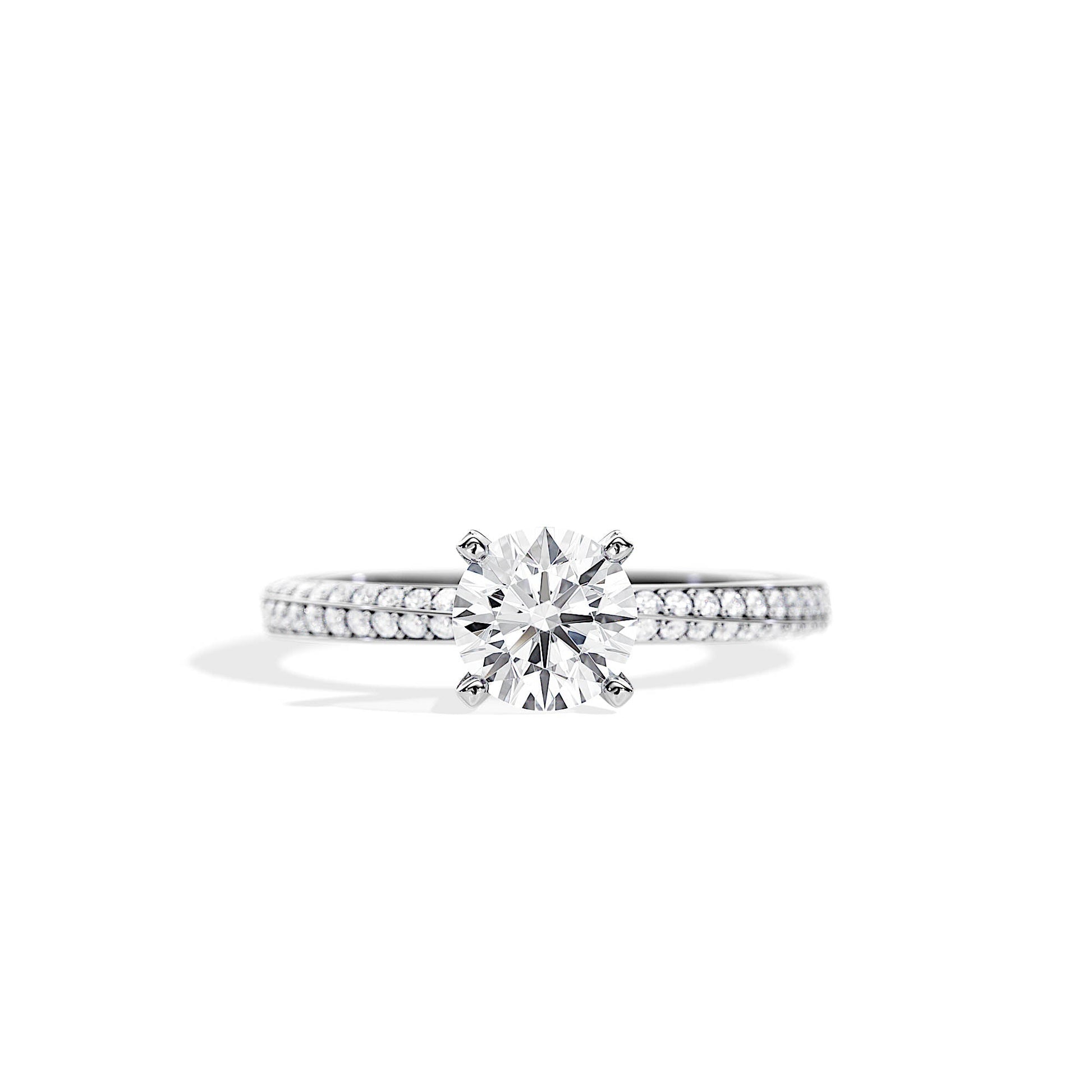 1.0 CT Round Cut Moissanite Pave Shank Engagement Ring