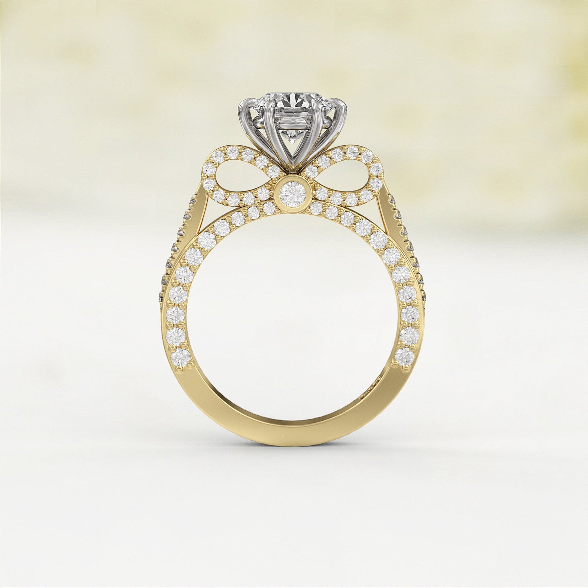 ✥ Celebrate your love with the 1.0 CT Round Cut Moissanite Three Side Pave Unique Engagement Ring. The stunning round-cut moissanite. known for its exceptional brilliance. is elegantly highlighted by a unique design featuring pave accents on three sides of the band. This intricate detailing not only amplifies the central gem's sparkle but also creates a mesmerizing play of light. The distinctive setting blends classic sophistication with modern creativity. making it a perfect choice for those who appreciate both timeless beauty and innovative style. This engagement ring is a radiant symbol of a love that is truly extraordinary.