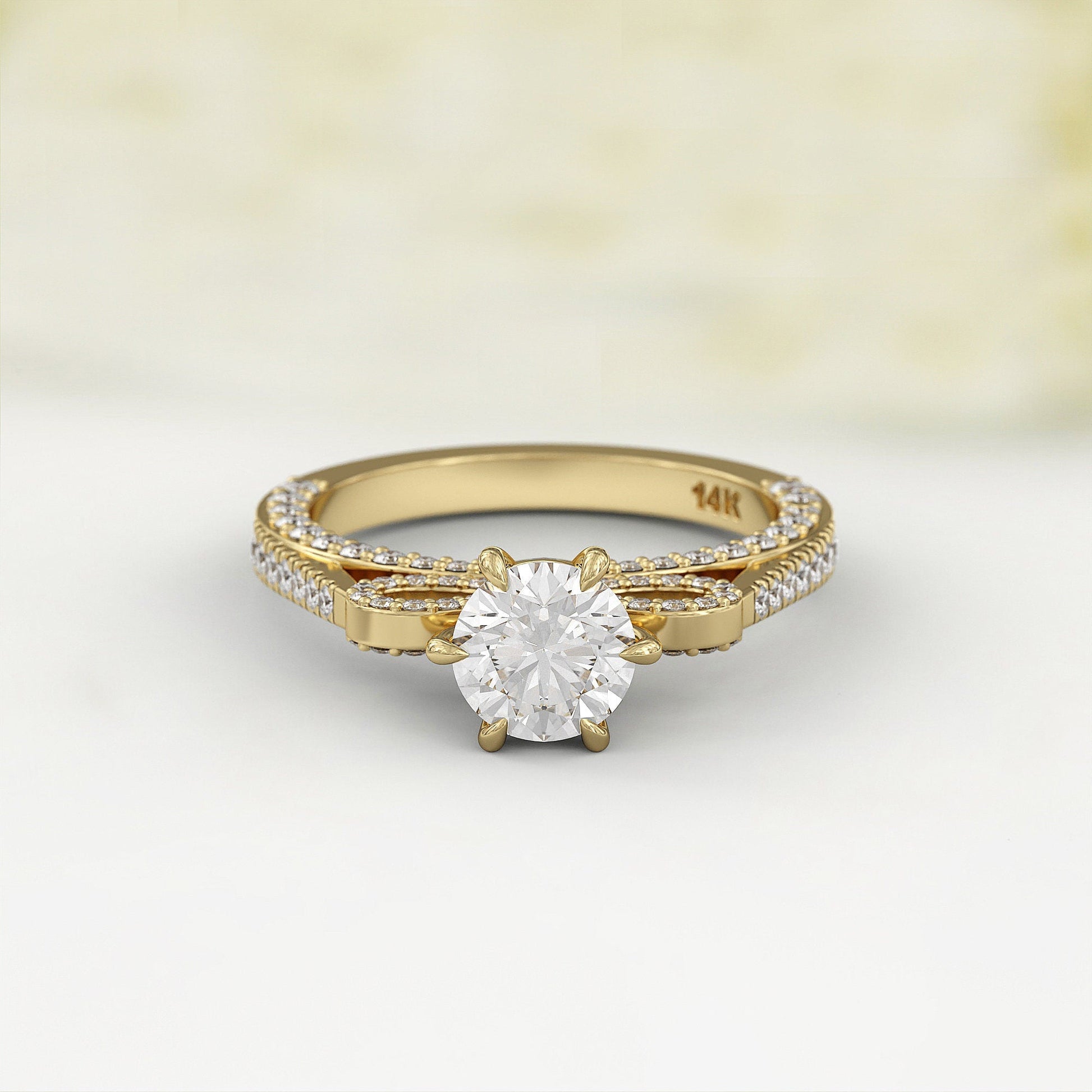 1.0 CT Round Cut Moissanite Three Side Pave Unique Engagement Ring