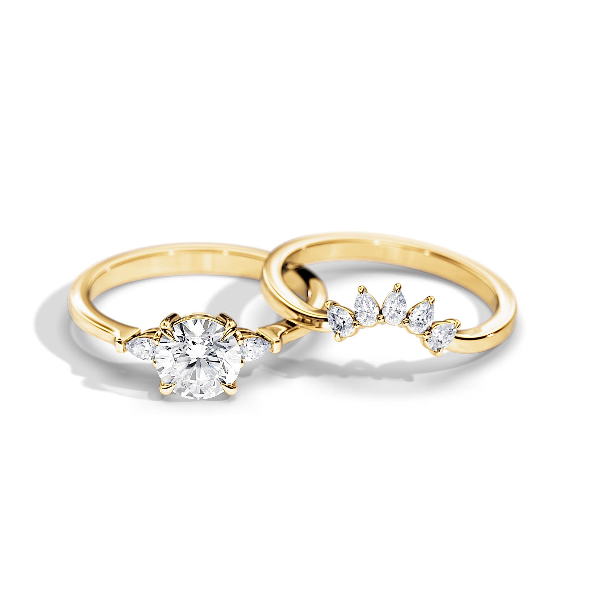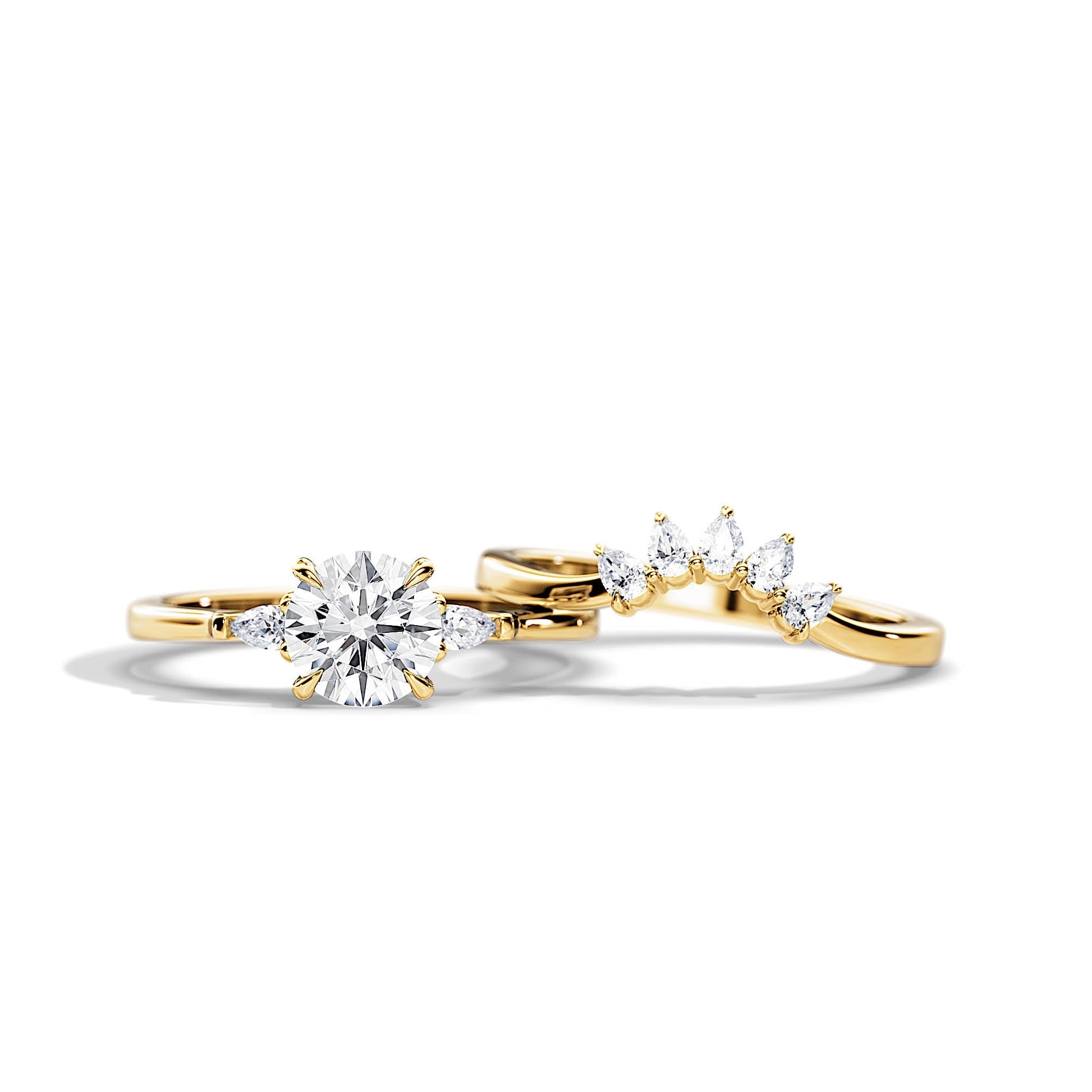 1.0 CT Round Moissanite Three Stone Bridal Ring Set