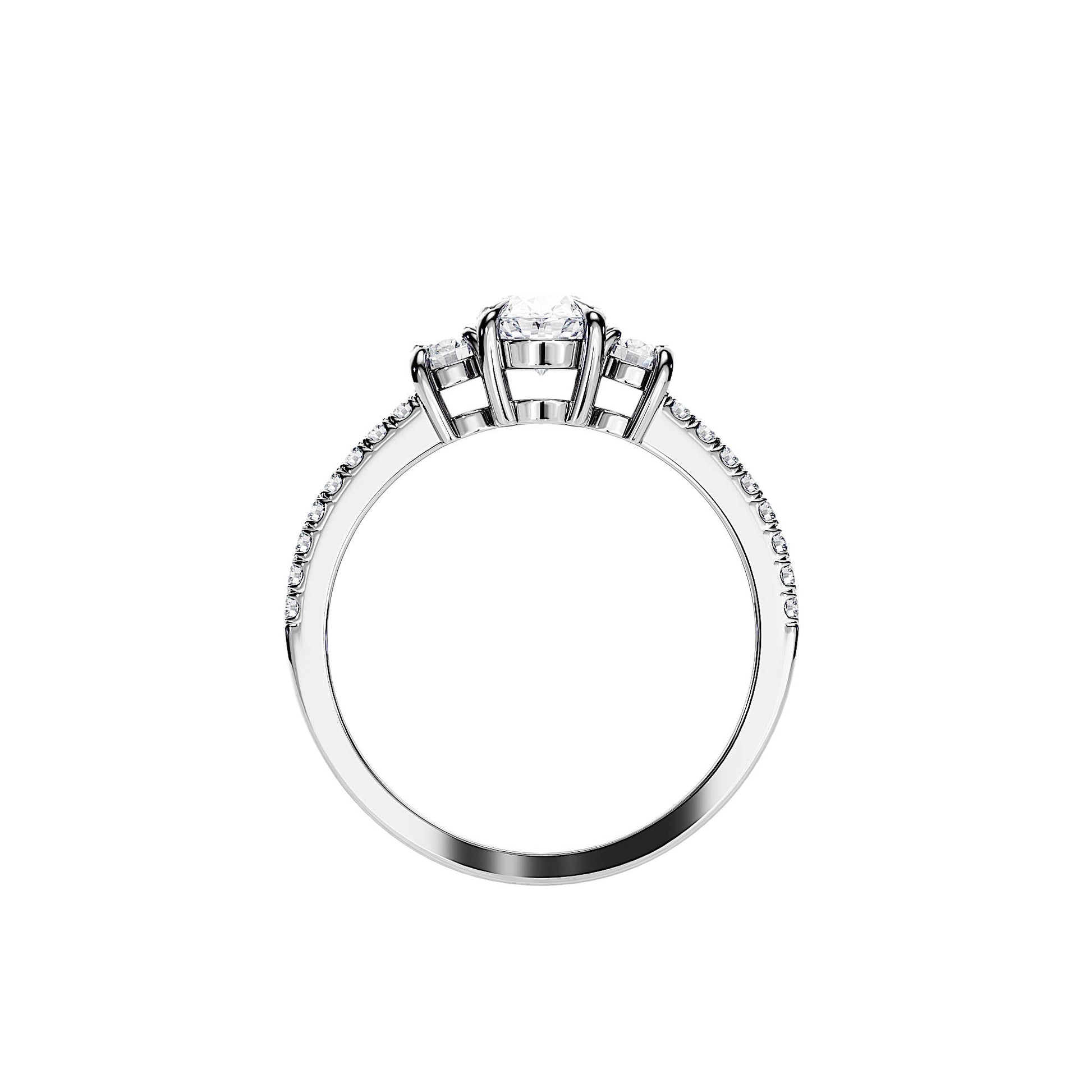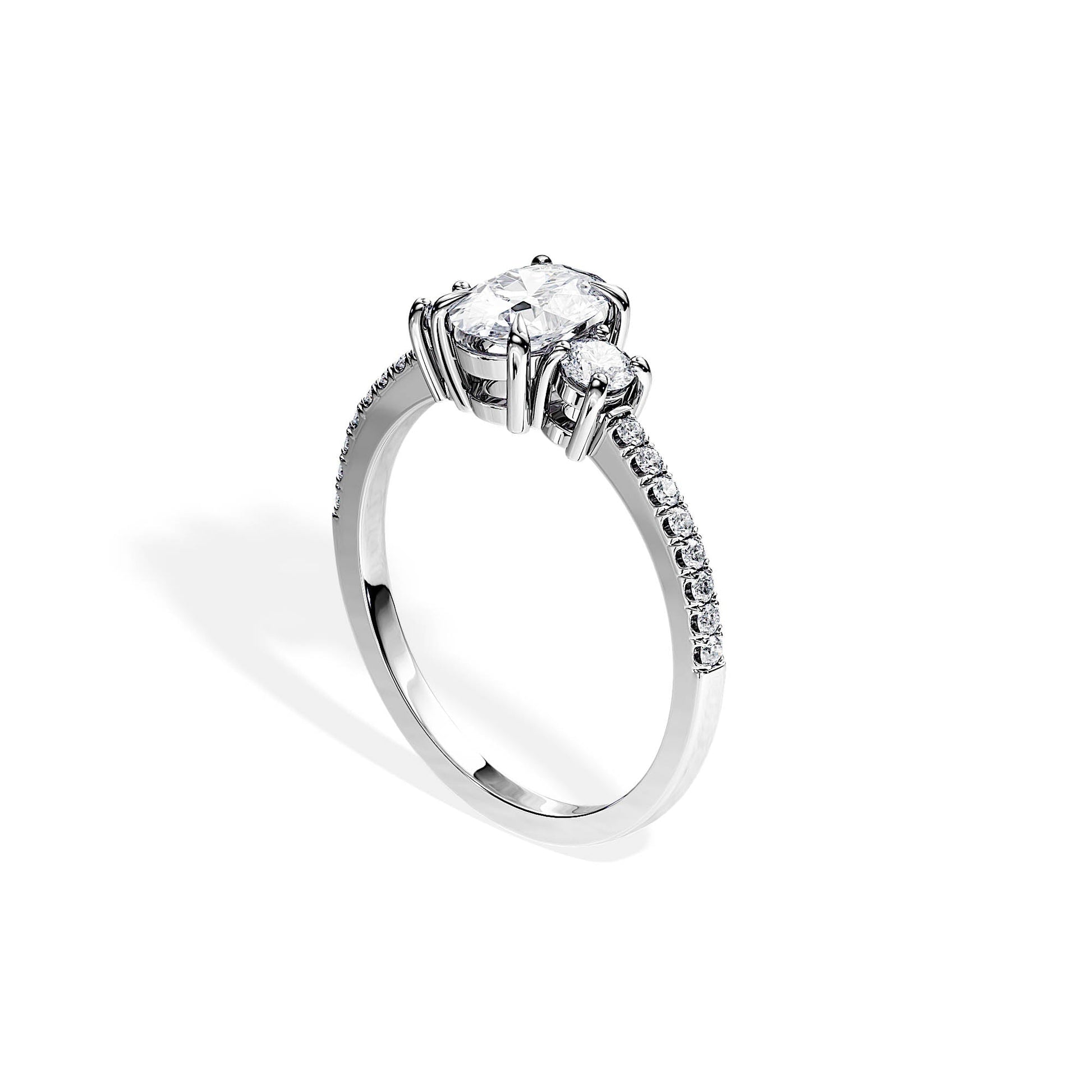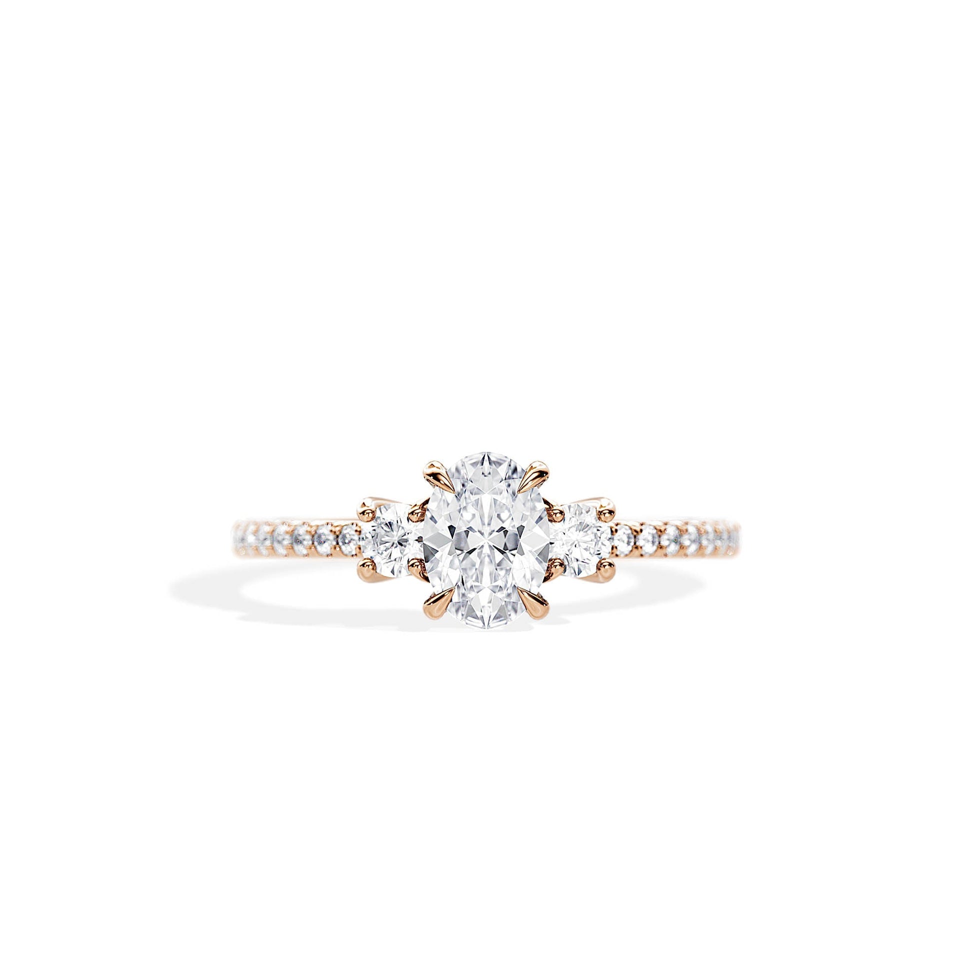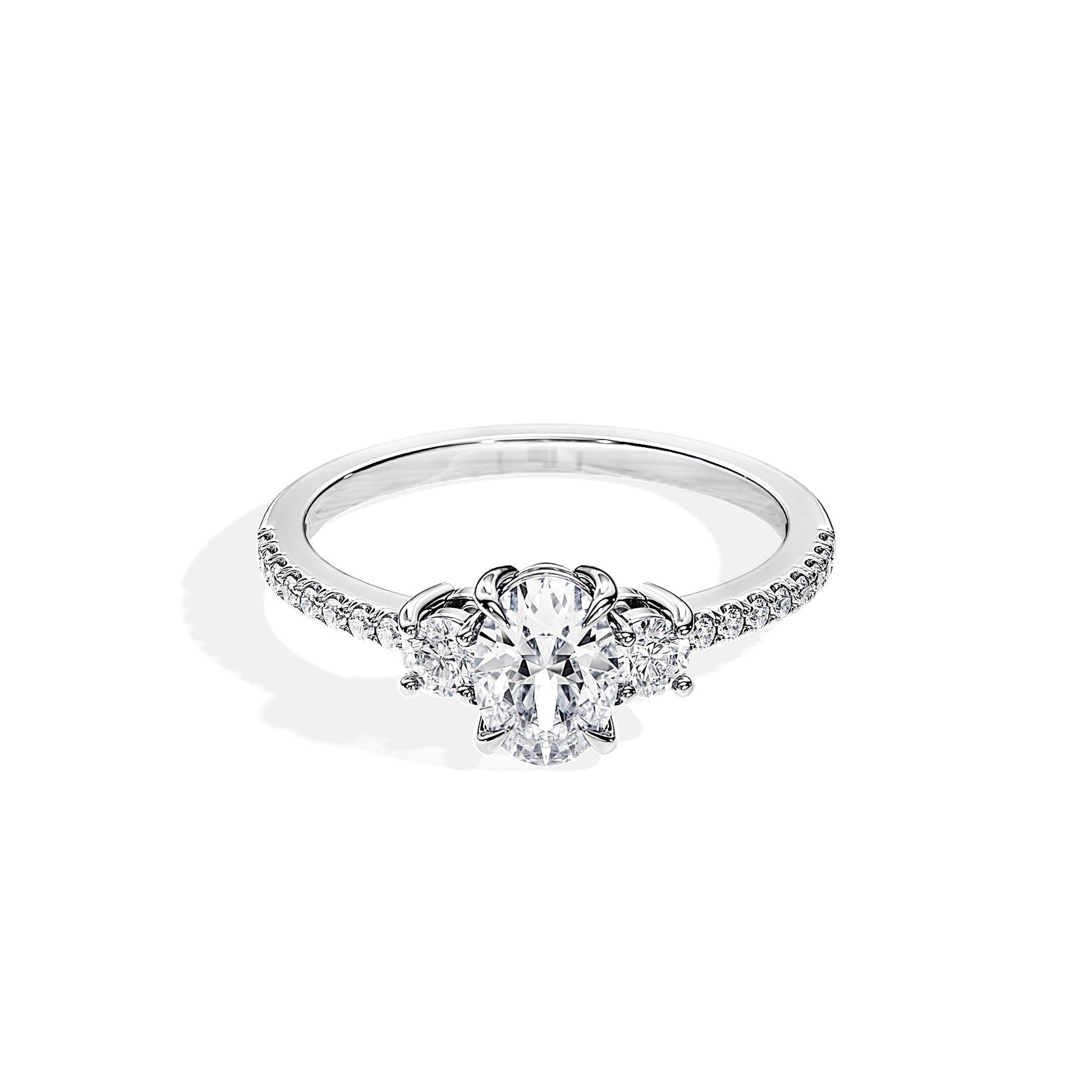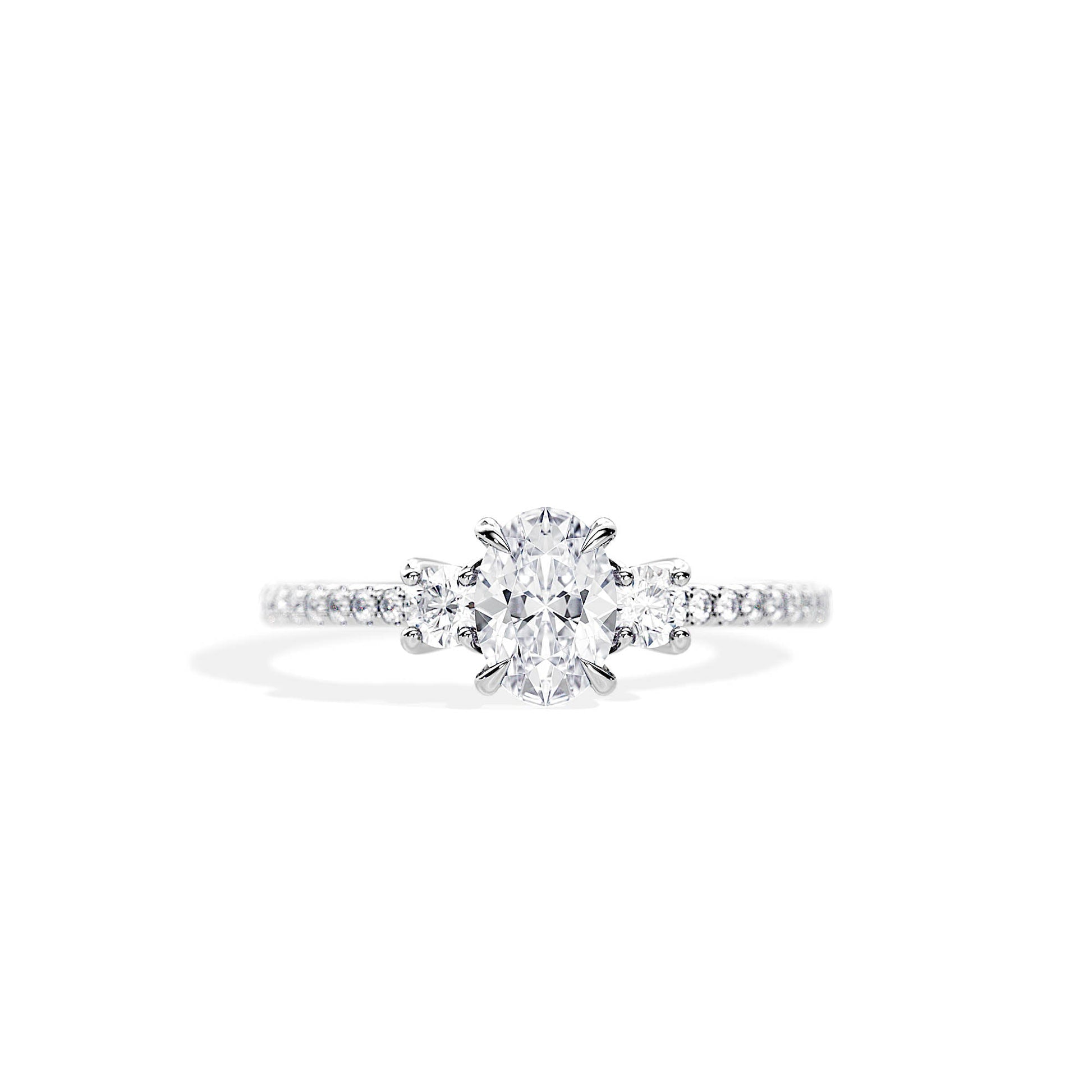 1.0 CT Three Stone Oval Cut Moissanite Pave Engagement Ring