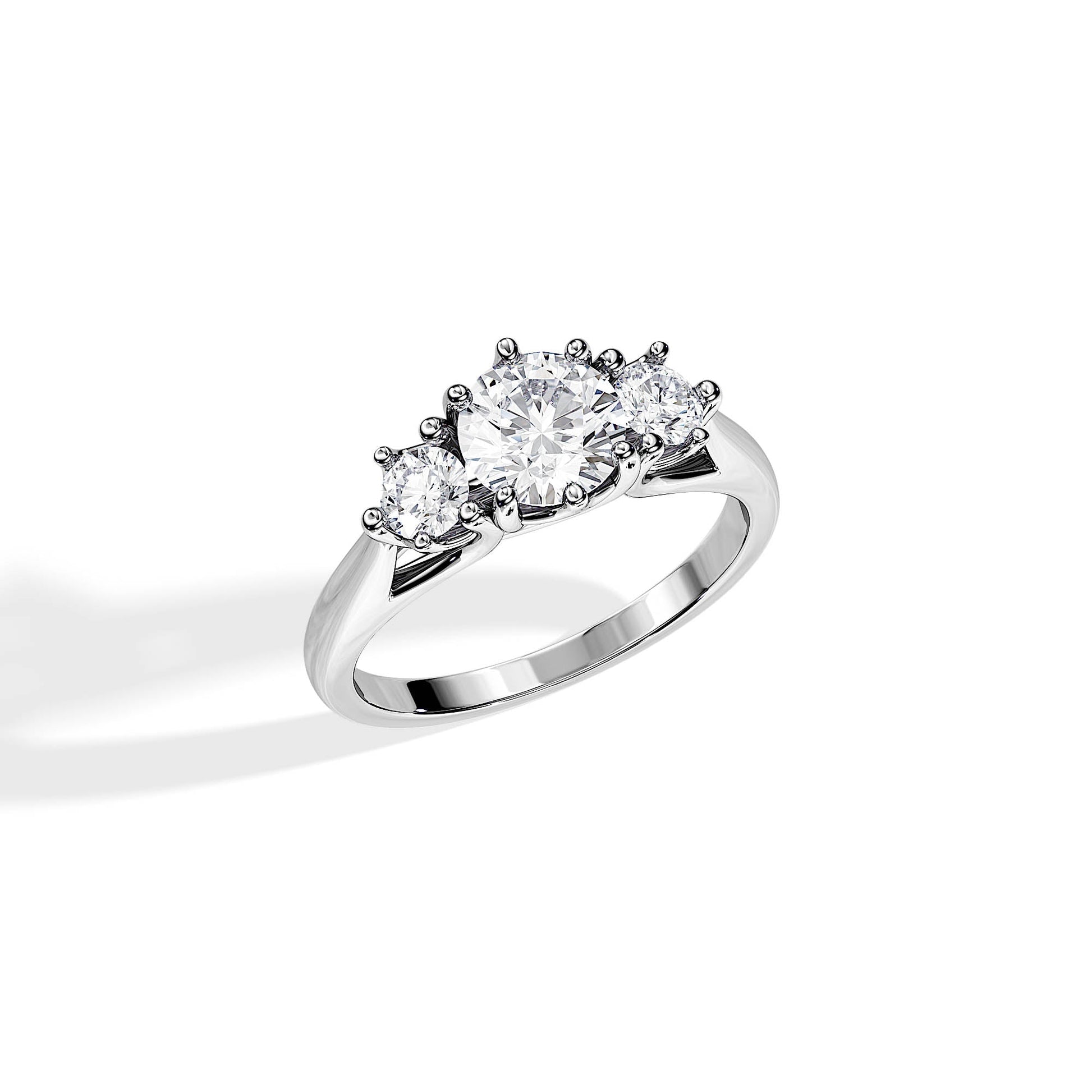 1.0 CT Three Stone Round Cut Moissanite Engagement Ring