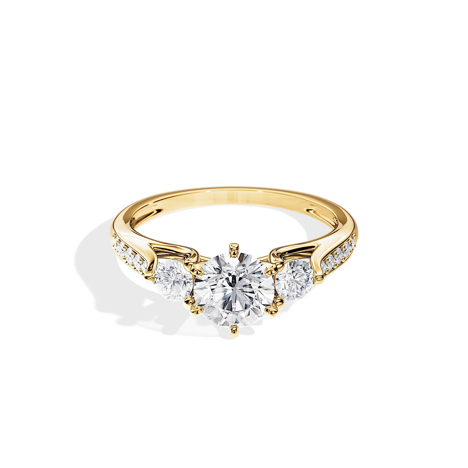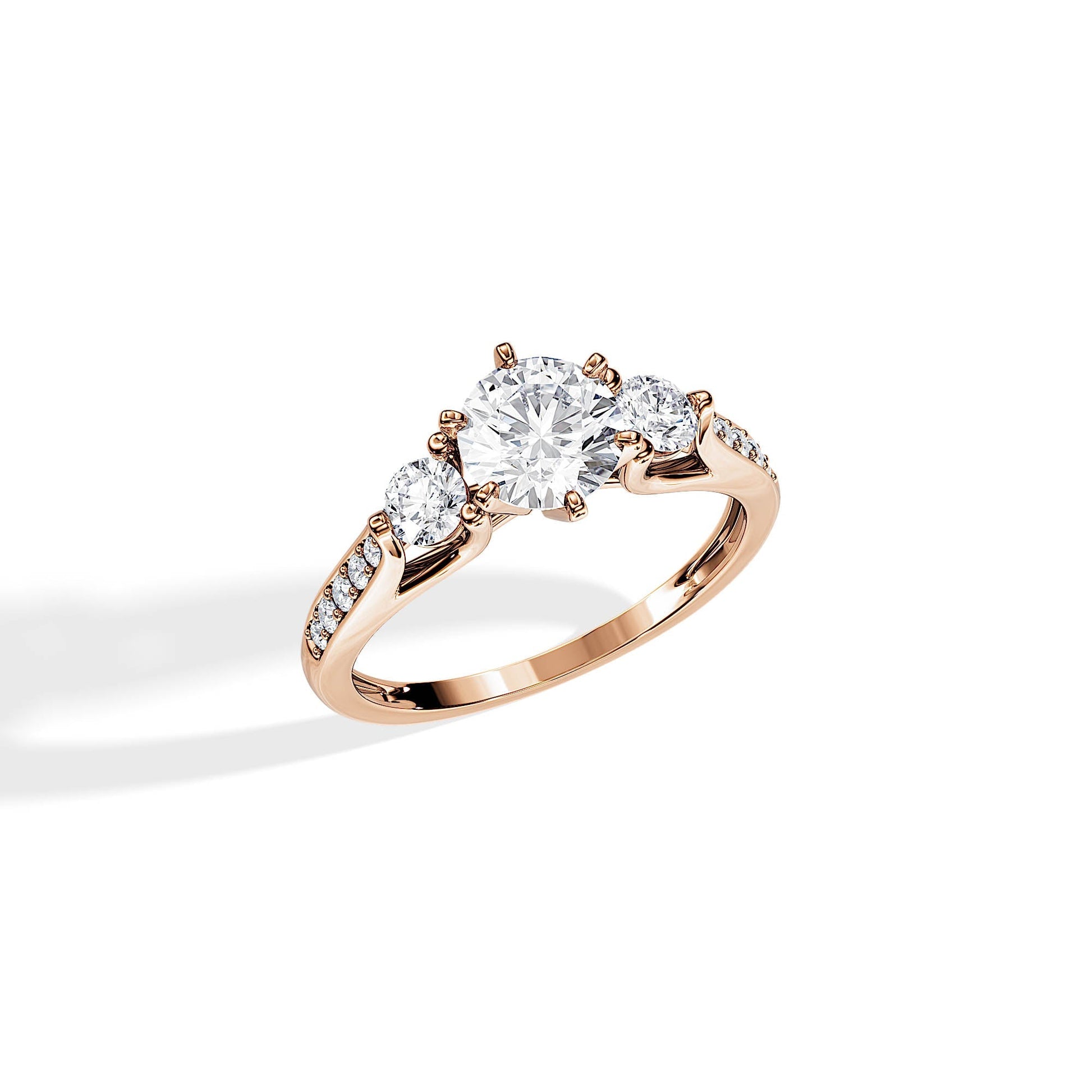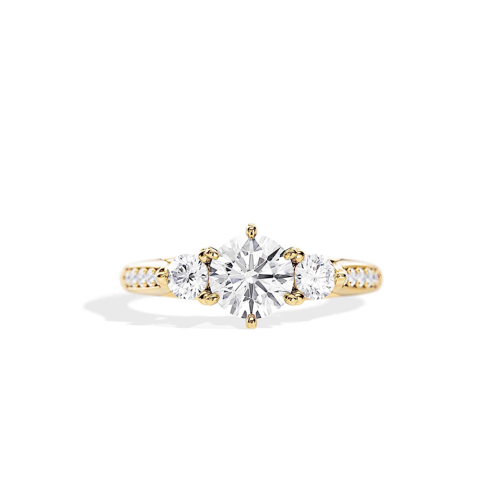 1.0 CT Three Stone Round Cut Moissanite Pave Engagement Ring