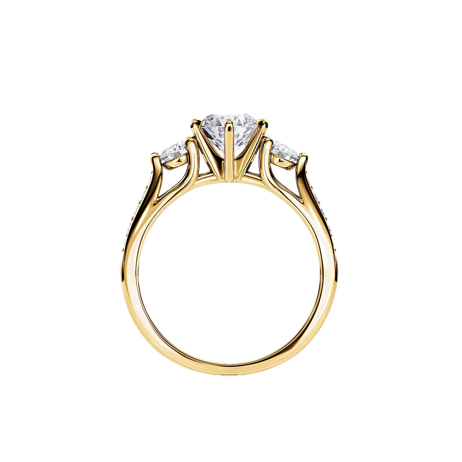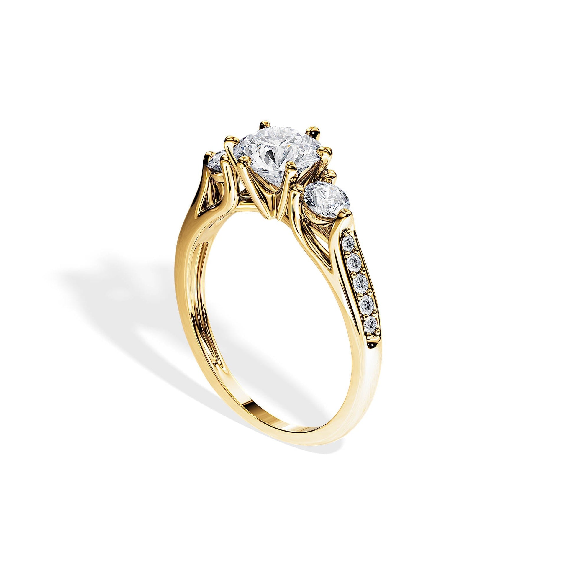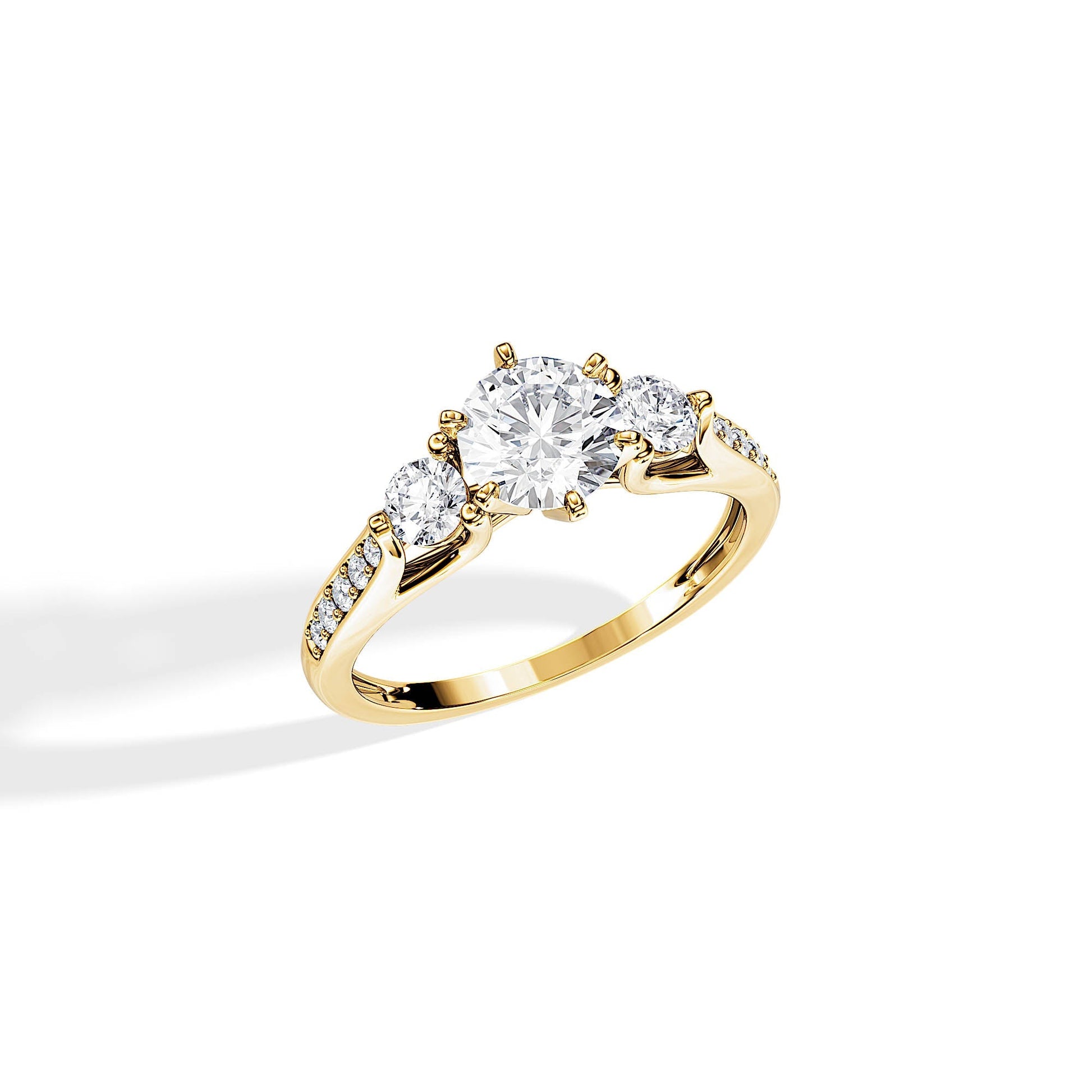 1.0 CT Three Stone Round Cut Moissanite Pave Engagement Ring