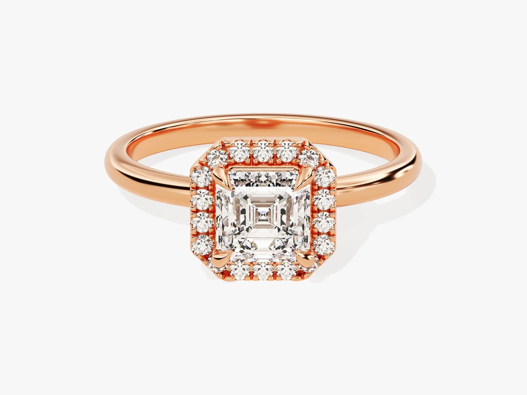 1.0CT Asscher Diamond Halo Moissanite Engagement Ring