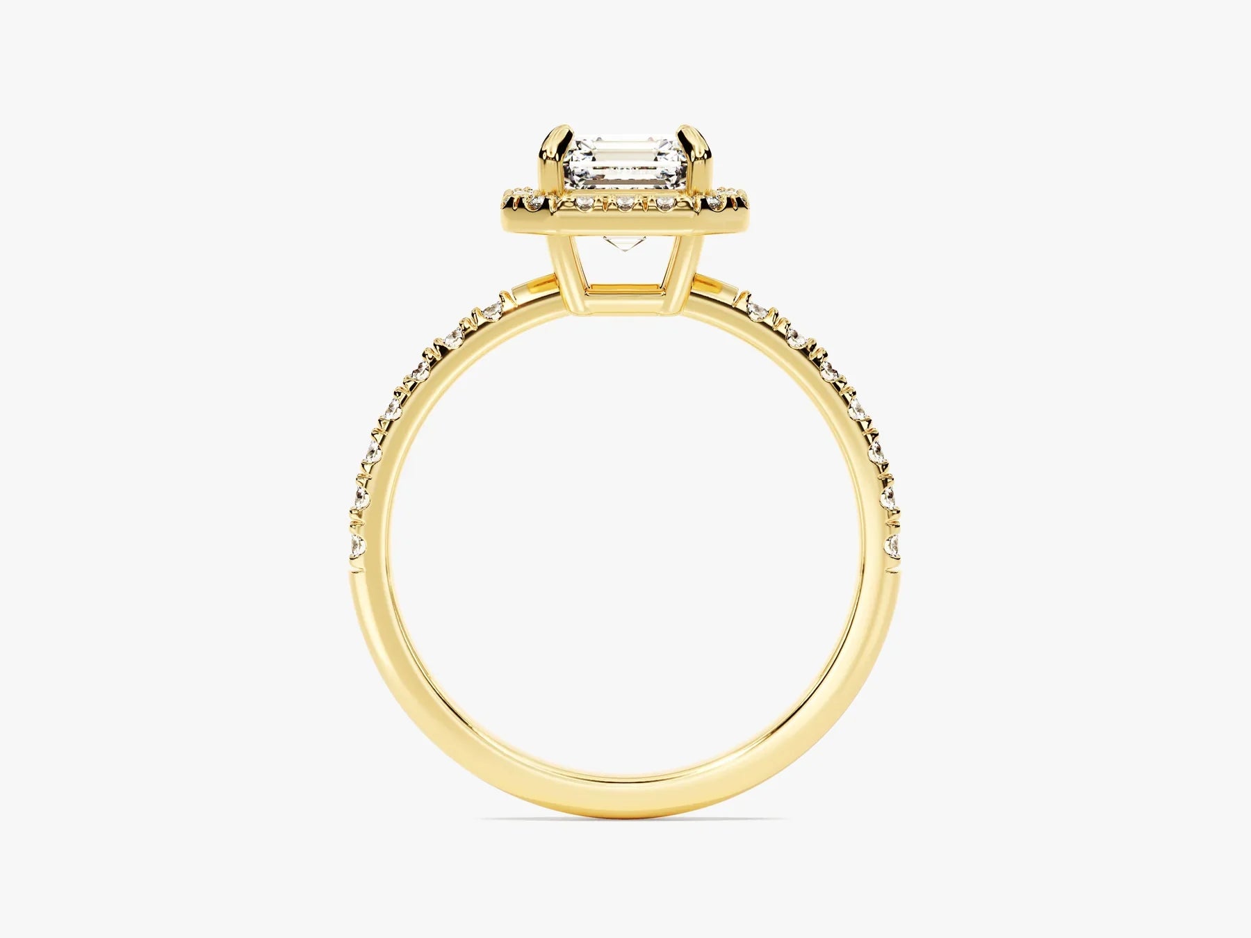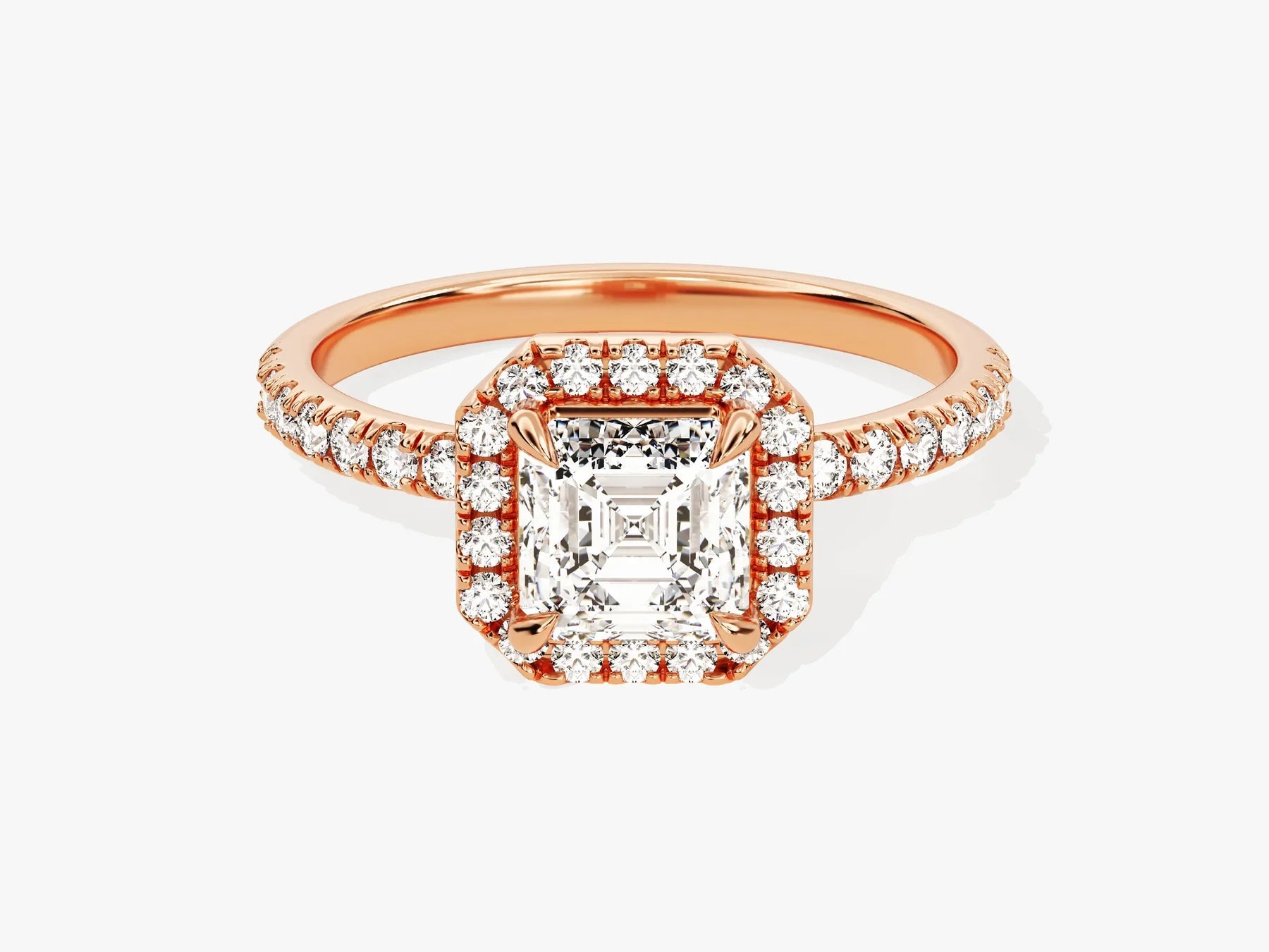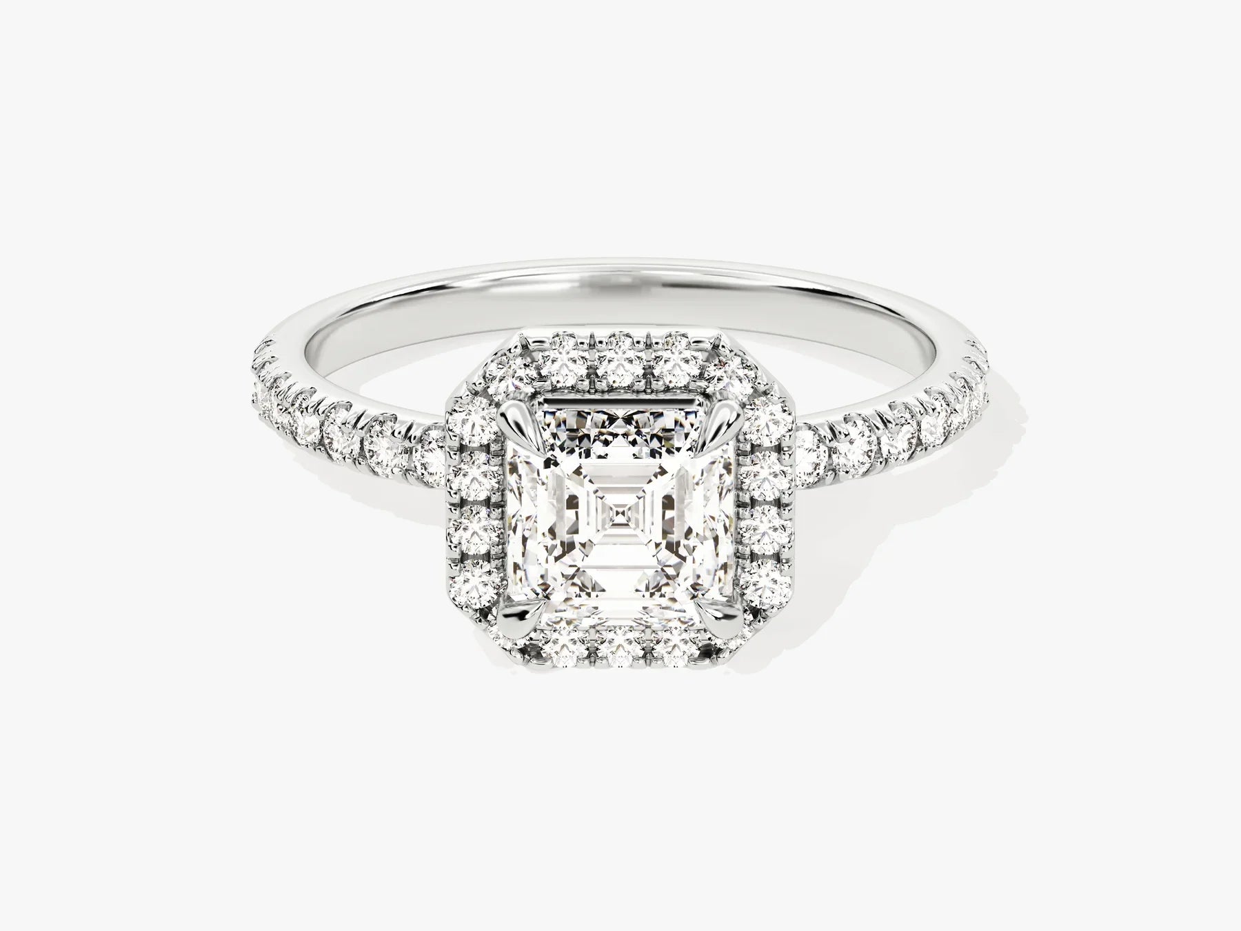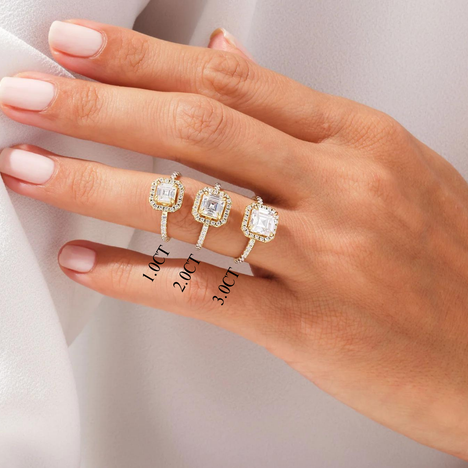 1.0CT Asscher Diamond Halo Pave Setting Moissanite Engagement Ring