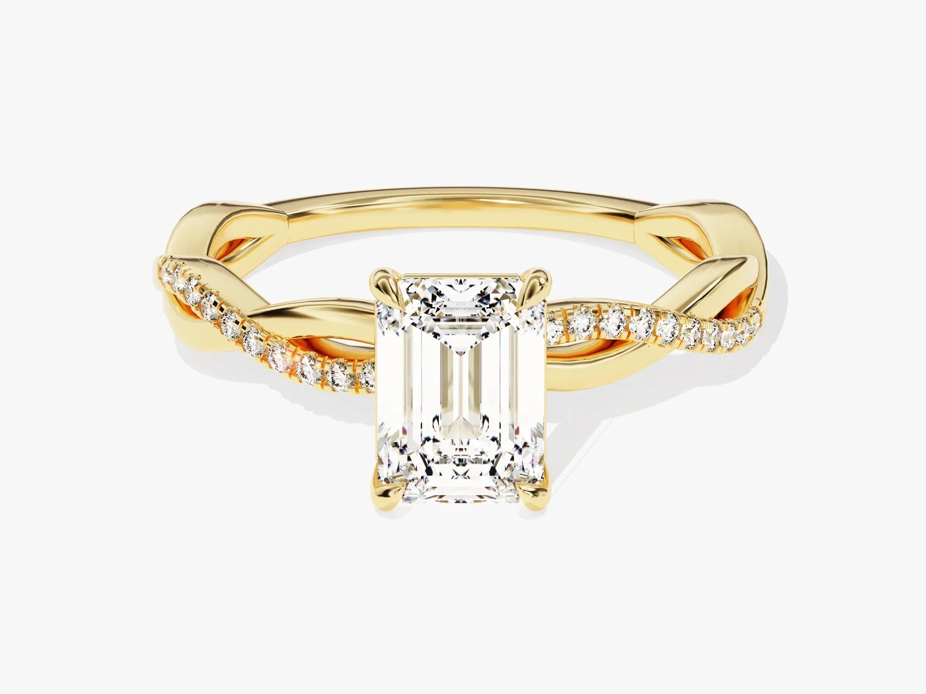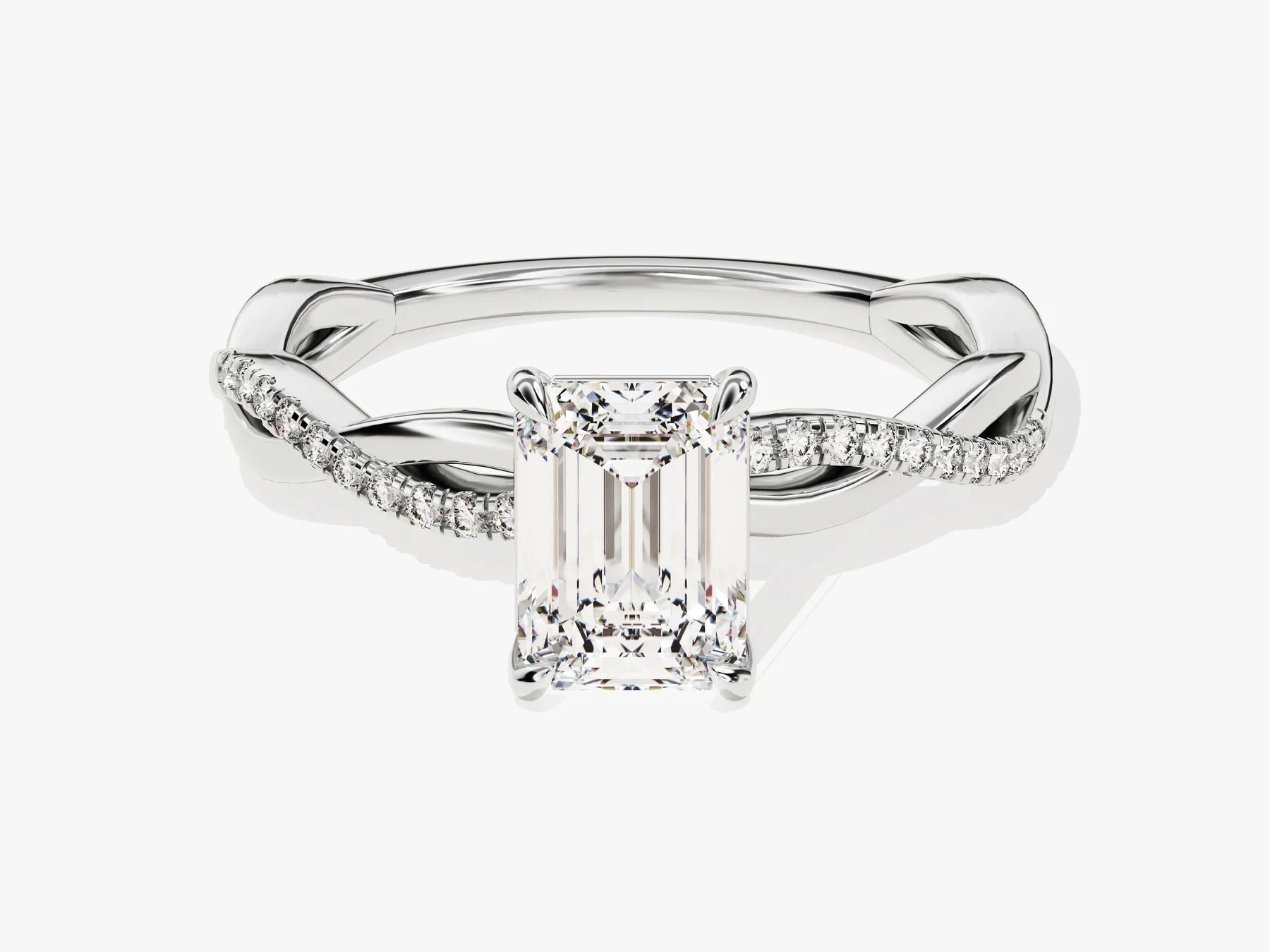 1.0CT Emerald Diamond Twisted Pave Setting Moissanite Engagement Ring