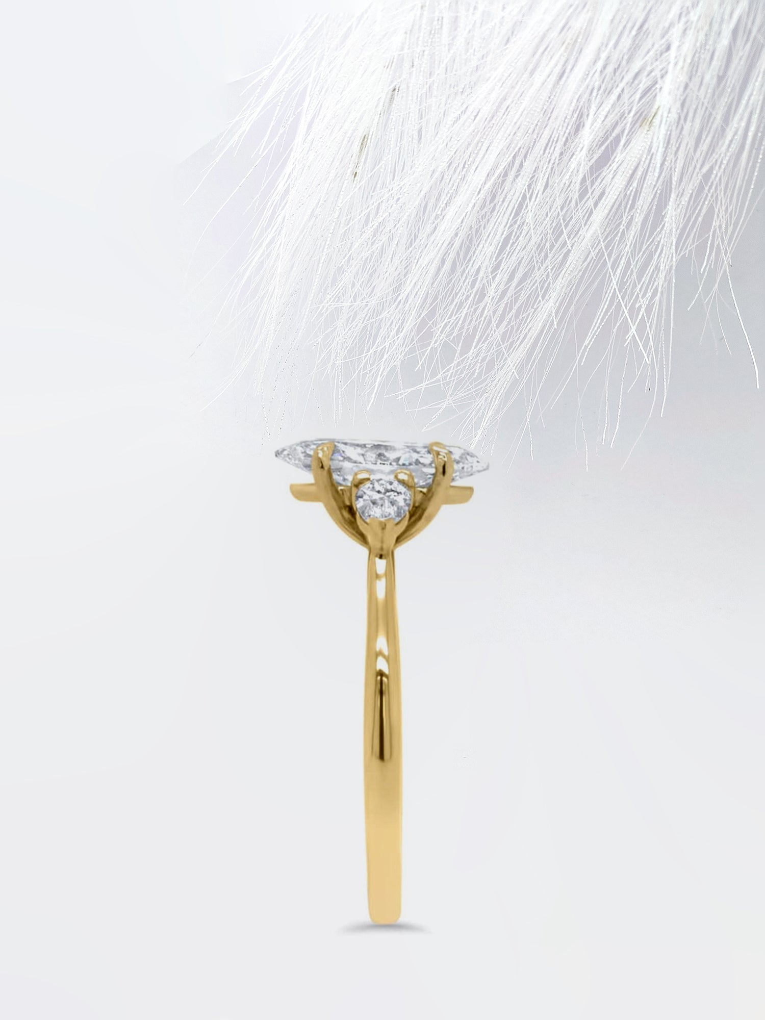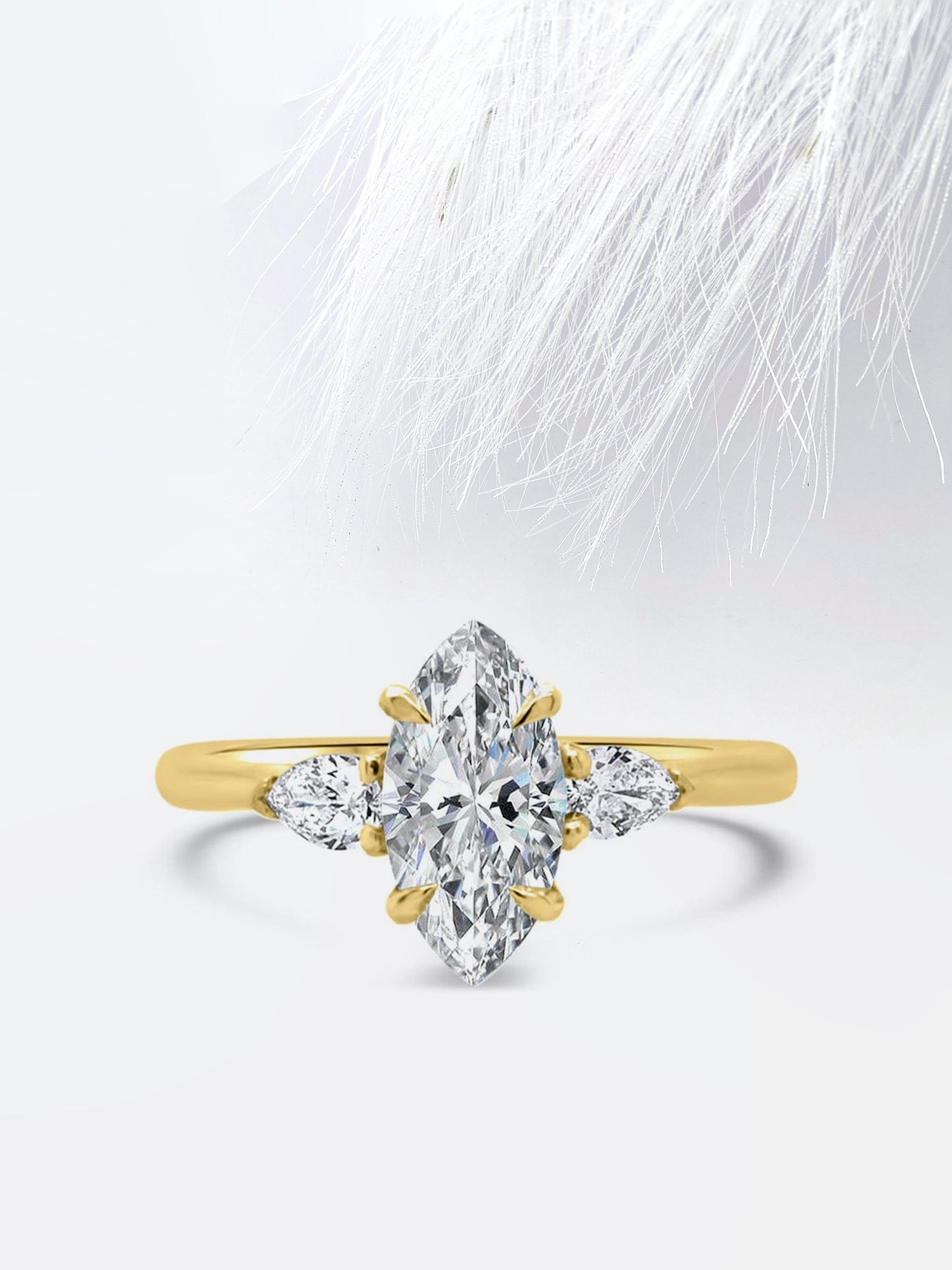 ✥ Introducing our exquisite 1.0CT Marquise Cut Three Stone Moissanite Diamond Engagement Ring. a timeless symbol of your enduring love and commitment. Crafted with precision and elegance. this stunning ring features a dazzling marquise-cut center stone flanked by two smaller moissanite diamonds. forming a classic three-stone design. Meticulously set in lustrous yellow gold. the brilliance of the moissanite diamonds illuminates the beauty of your union. Designed for the modern woman. its timeless beauty and impeccable craftsmanship promise a lifetime of cherished moments and enduring devotion. Celebrate your love story with this enchanting piece. as you embark on a journey filled with love. joy. and shared dreams.