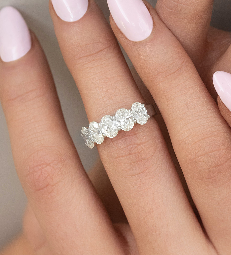 1.0ct Oval Cut 5 Stone Moissanite Diamond Wedding Band