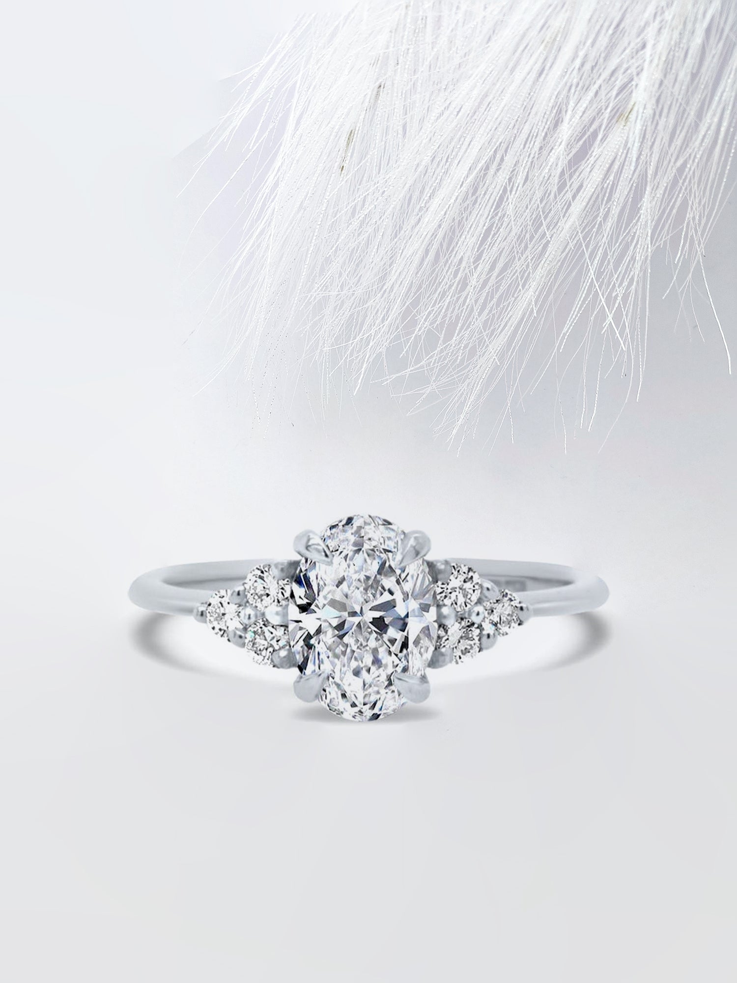 1.0CT Oval Cut Cluster Moissanite Diamond Engagement Ring For Women
