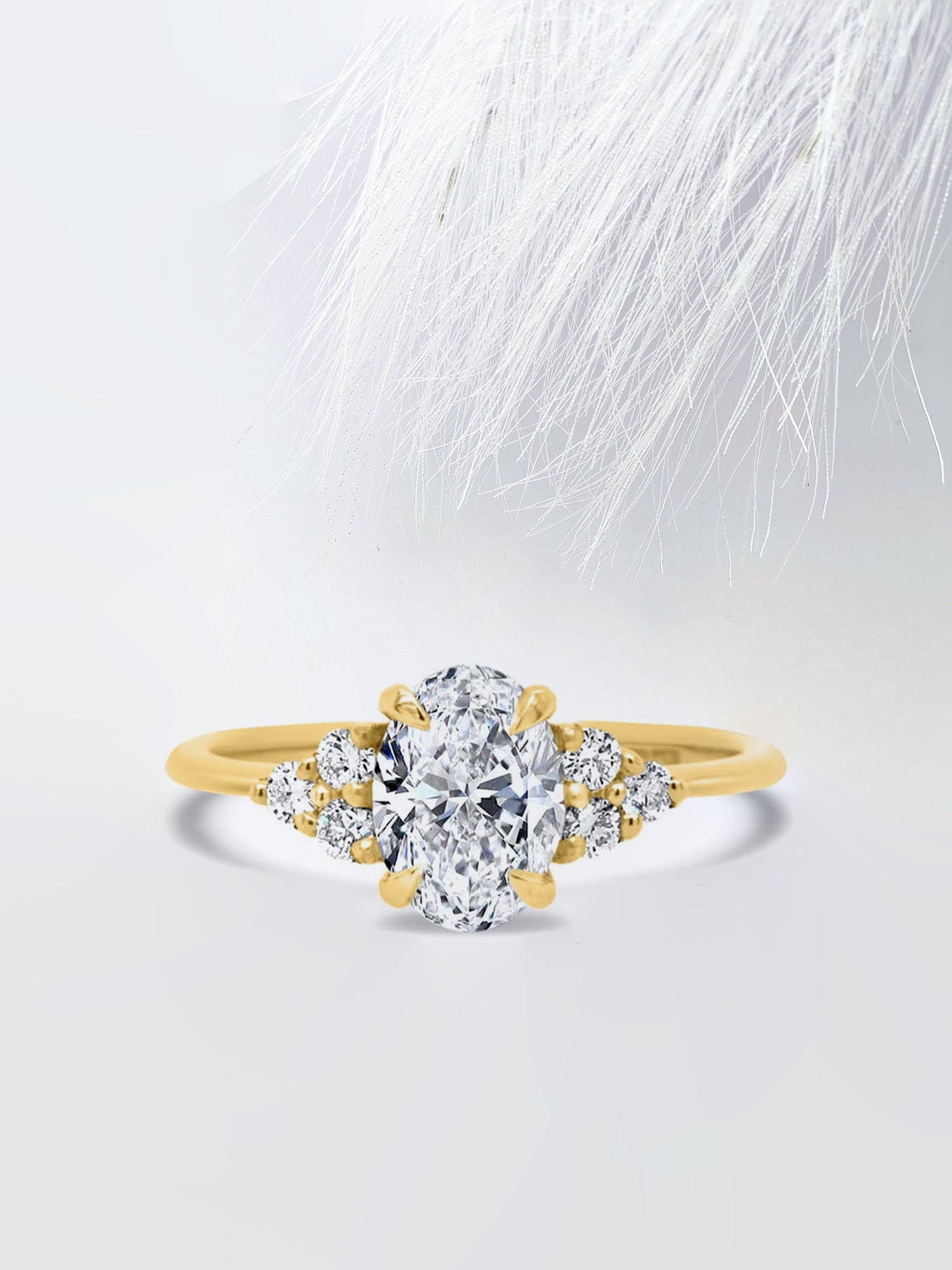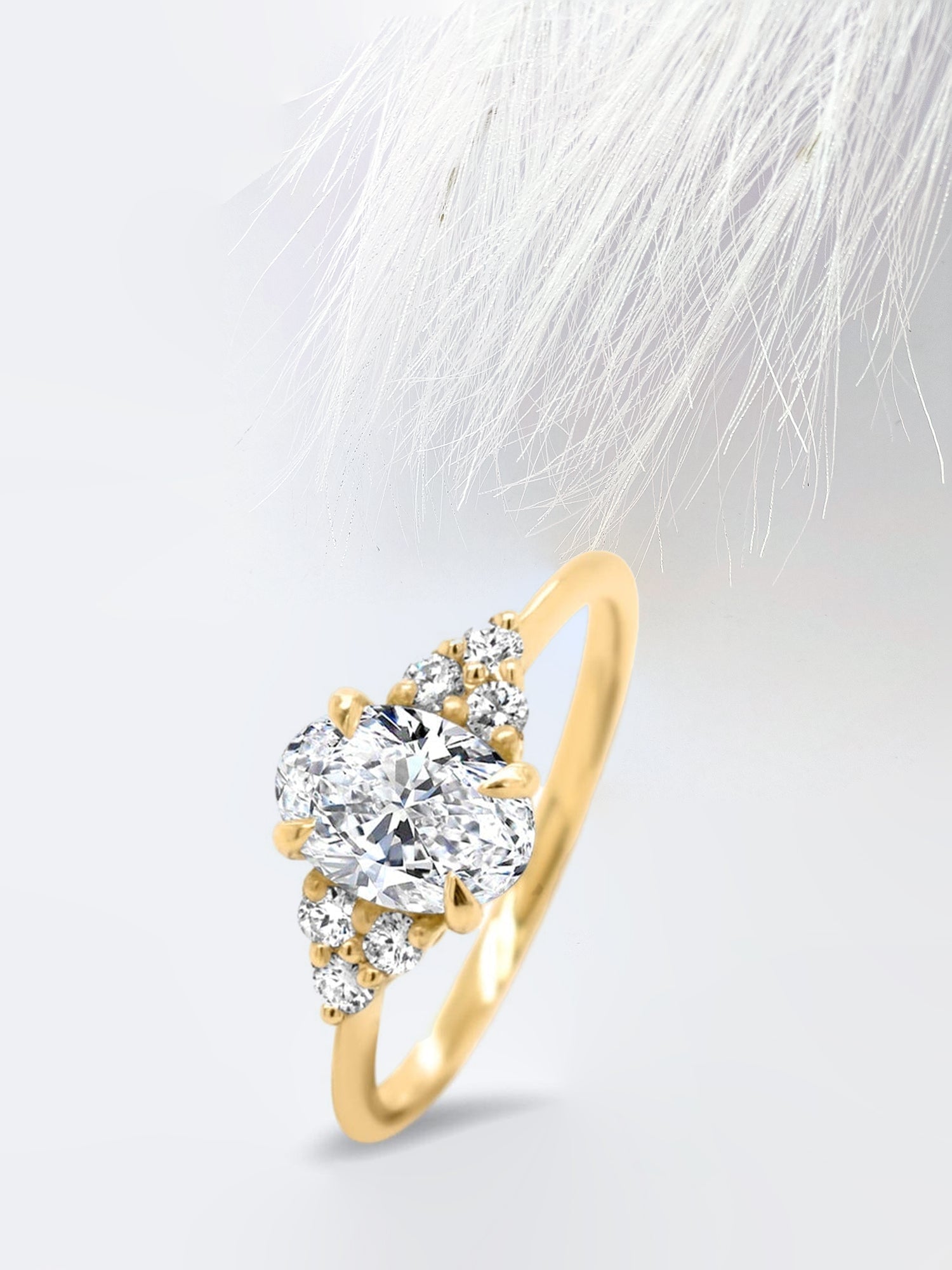 ✥ Introducing our enchanting 1.0CT Oval Cut Cluster Moissanite Diamond Engagement Ring. a radiant symbol of your unique love story. Crafted with meticulous attention to detail. this exquisite ring features a dazzling oval-cut center stone surrounded by a cluster of smaller moissanite diamonds. creating a captivating display of brilliance and elegance. Set in lustrous yellow gold. the ring exudes warmth and sophistication. reflecting the depth of your commitment. Designed for the modern woman. its timeless beauty and impeccable craftsmanship promise a lifetime of cherished moments and enduring love. Embrace the magic of your love with this enchanting piece. marking the beginning of your forever together.