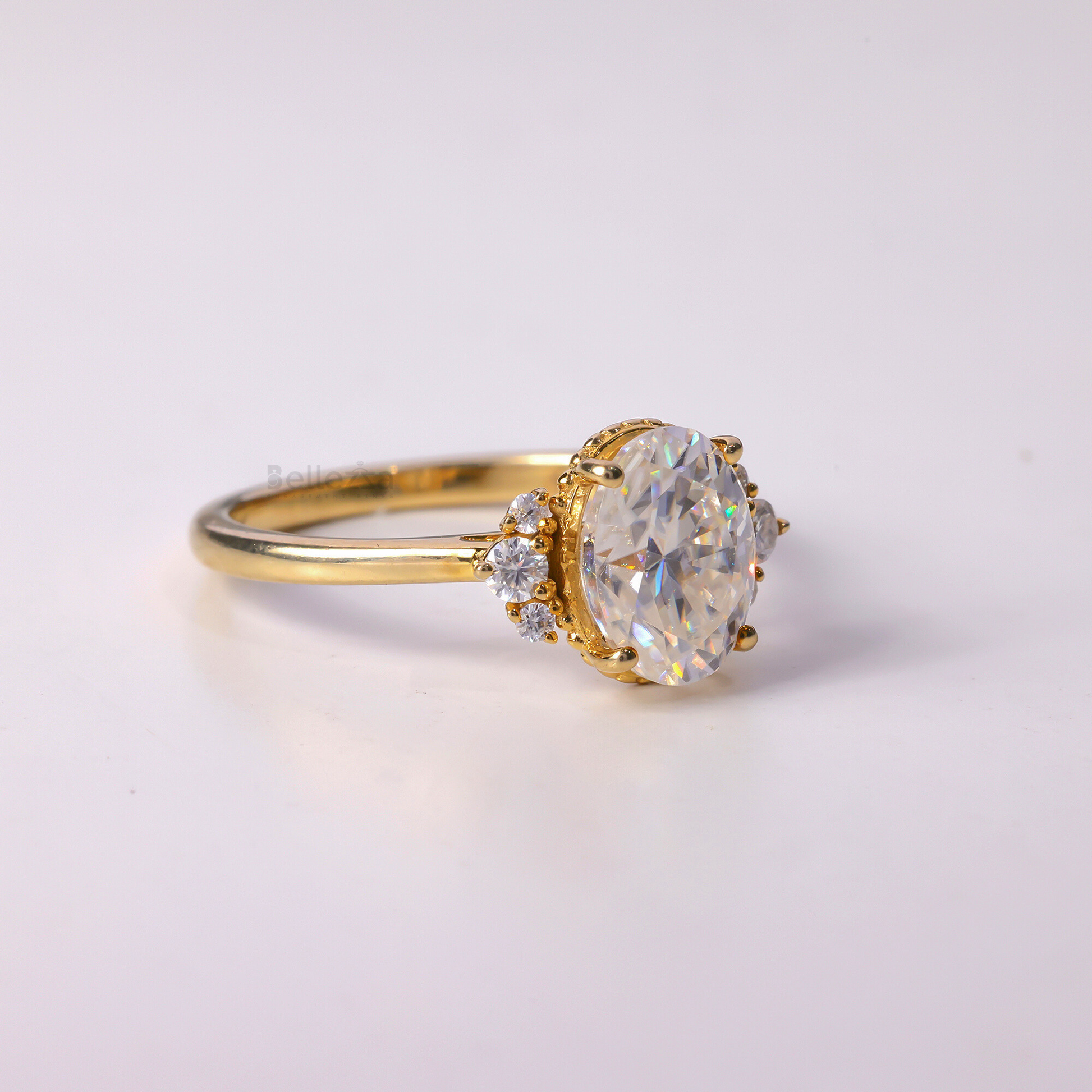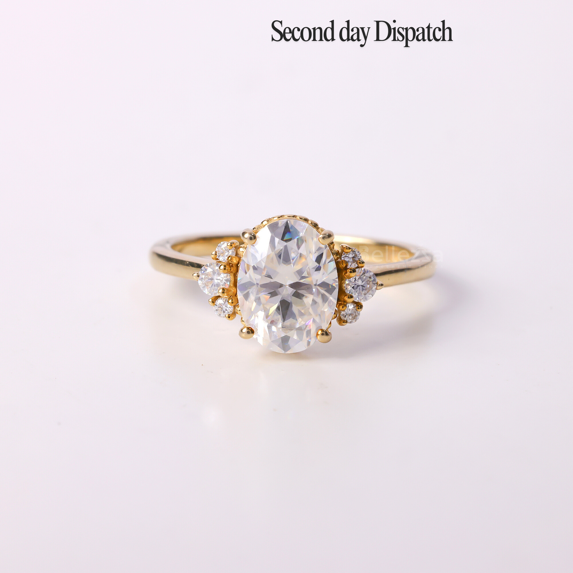1.0CT Oval Cut Cluster Moissanite Engagement Ring - Ready to Ship