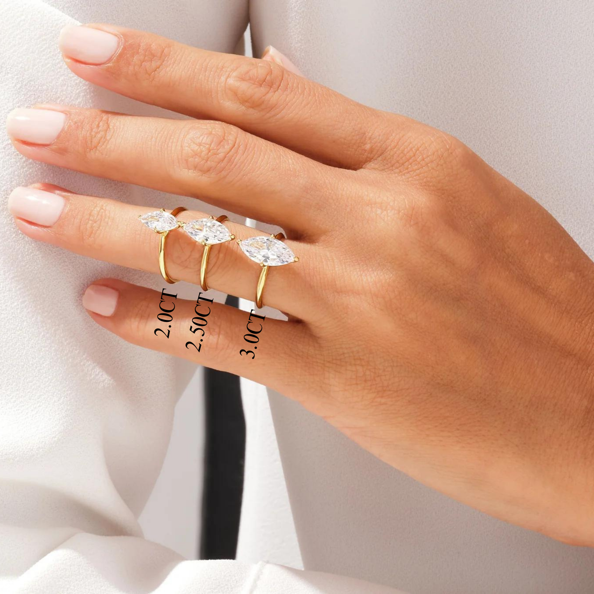 ✥This elegant 1.0CT Marquise Cut Moissanite Engagement Ring with a Knife Edge Solitaire Setting is a perfect fusion of vintage charm and modern sophistication. The centerpiece features a dazzling 1.0CT marquise cut moissanite. celebrated for its elongated shape and brilliant facets that create a captivating sparkle and an illusion of greater size. The sleek knife-edge band adds a contemporary touch. beautifully highlighting the center stone while ensuring a comfortable fit. Ideal for those who appreciate a distinctive and refined design. this marquise cut moissanite ring serves as a luxurious and affordable alternative to traditional diamonds. symbolizing everlasting love and commitment.