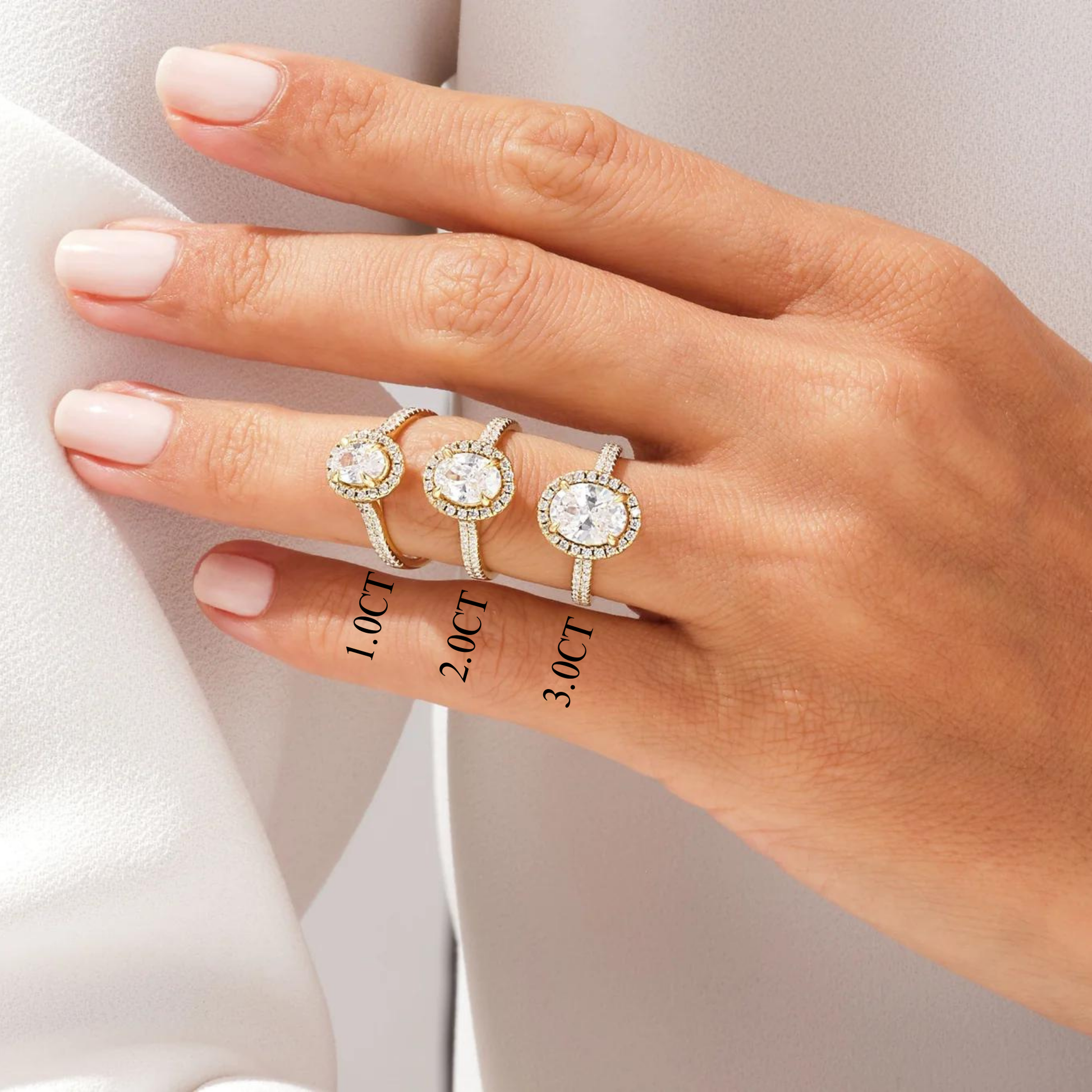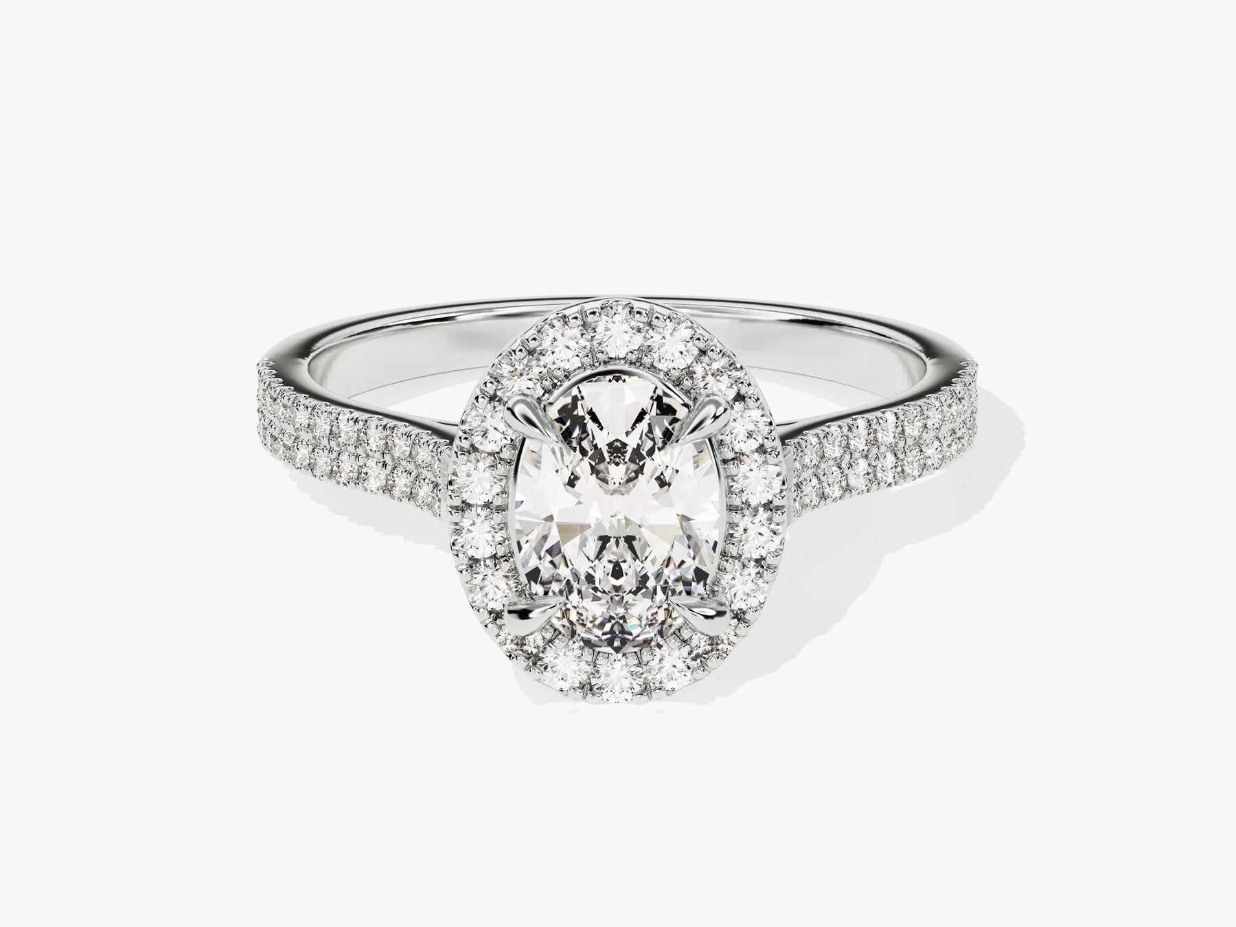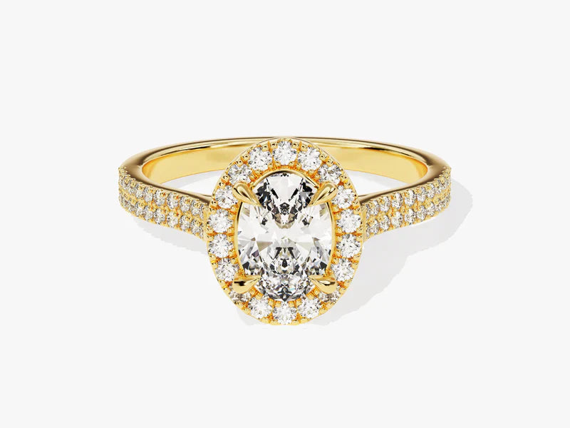 1.0CT Oval Diamond Double Shank Halo Moissanite Engagement Ring