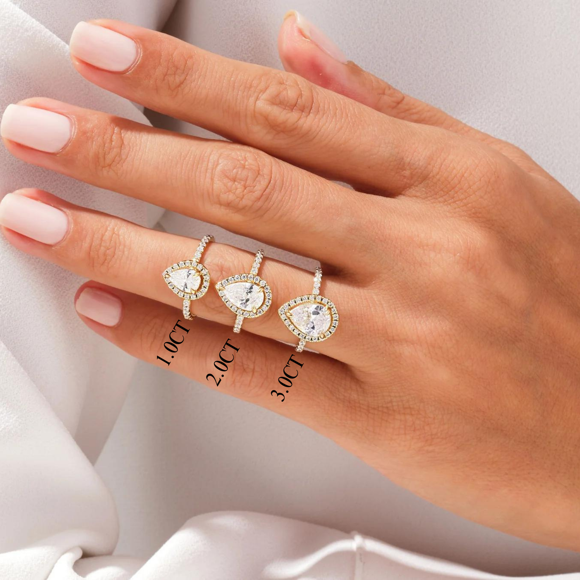 1.0CT Pear Diamond Halo Pave Setting Moissanite Engagement Ring