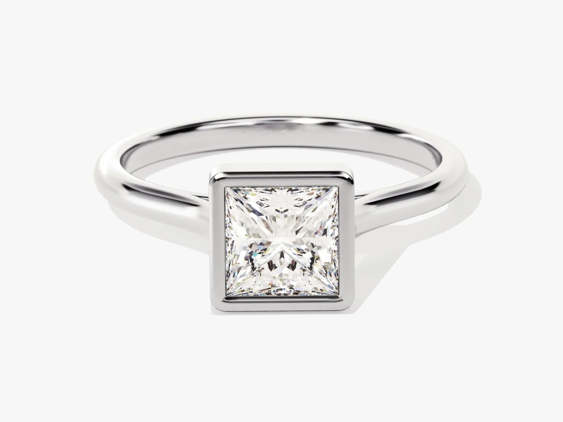 1.0CT Princess Diamond Bezel Setting Solitaire Moissanite Engagement Ring