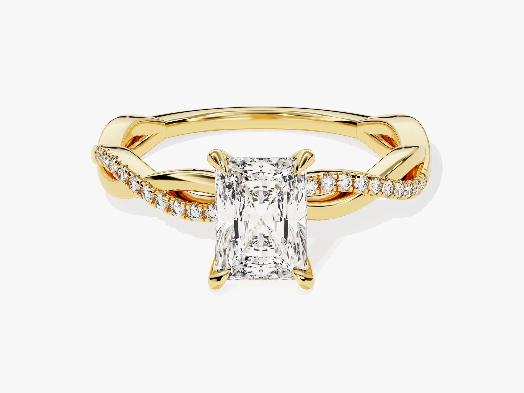 1.0CT Radiant Diamond Twisted Pave Setting Moissanite Engagement Ring