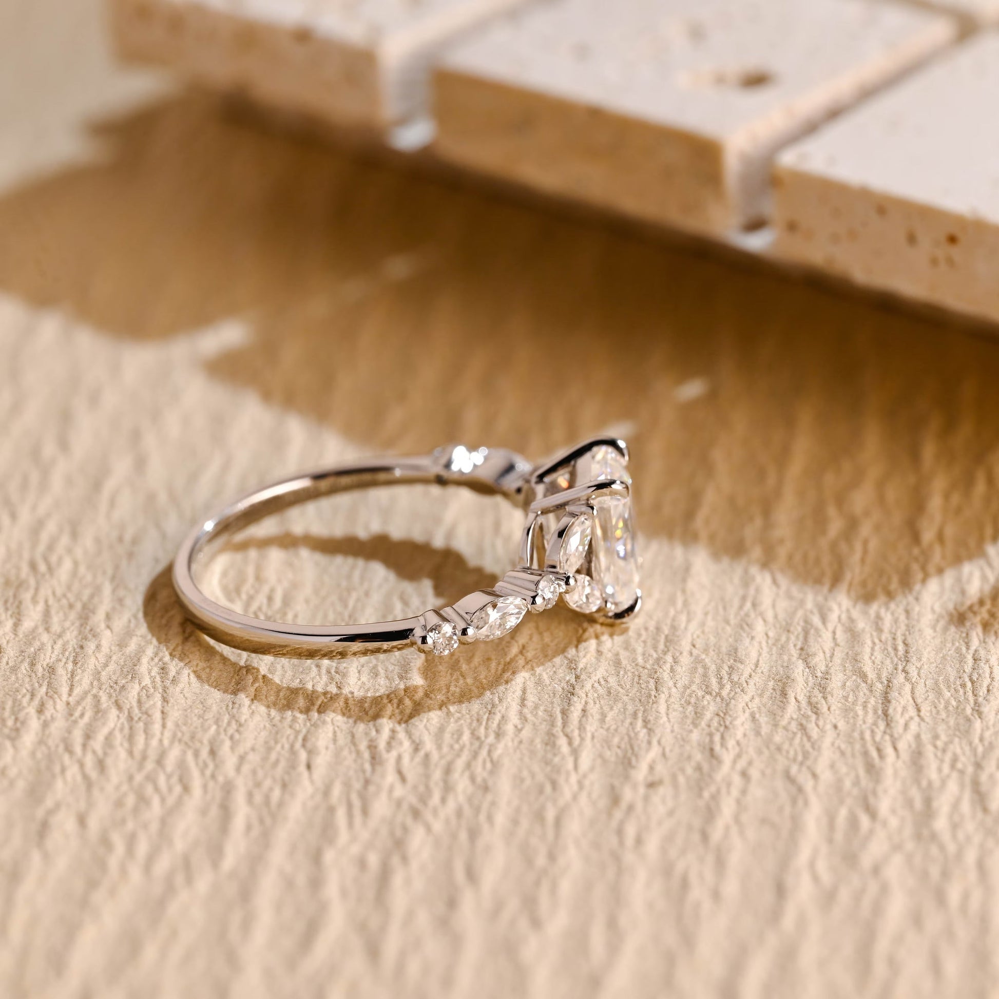 1.0CT Radiant Cut Cluster Diamond Moissanite Engagement Ring
