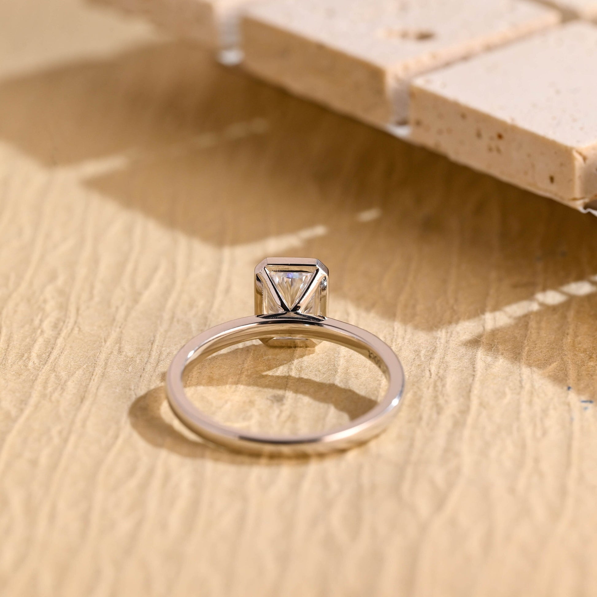 1.0CT Radiant Diamond Bezel Set Solitaire Moissanite Engagement Ring