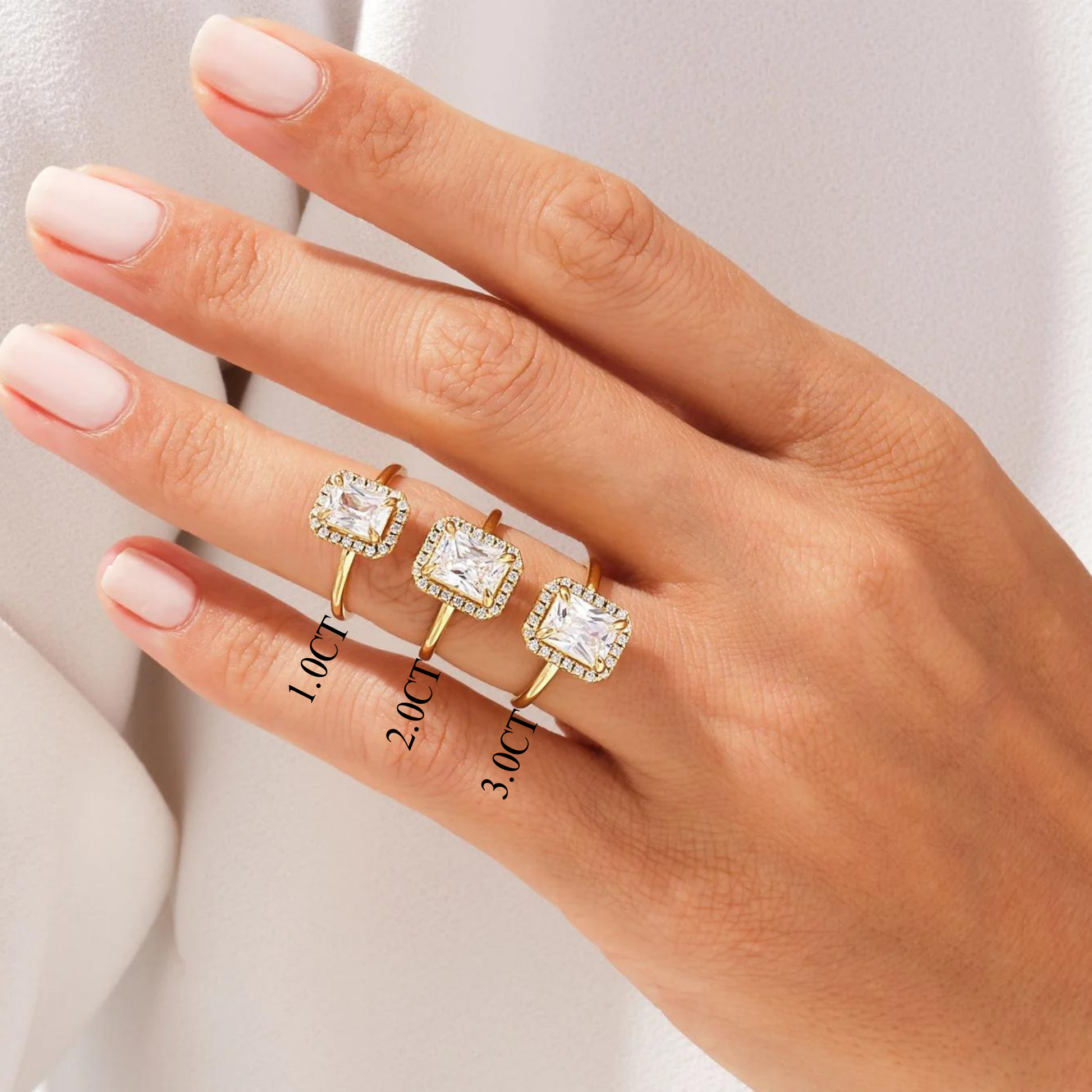 1.0CT Radiant Diamond Halo Moissanite Engagement Ring