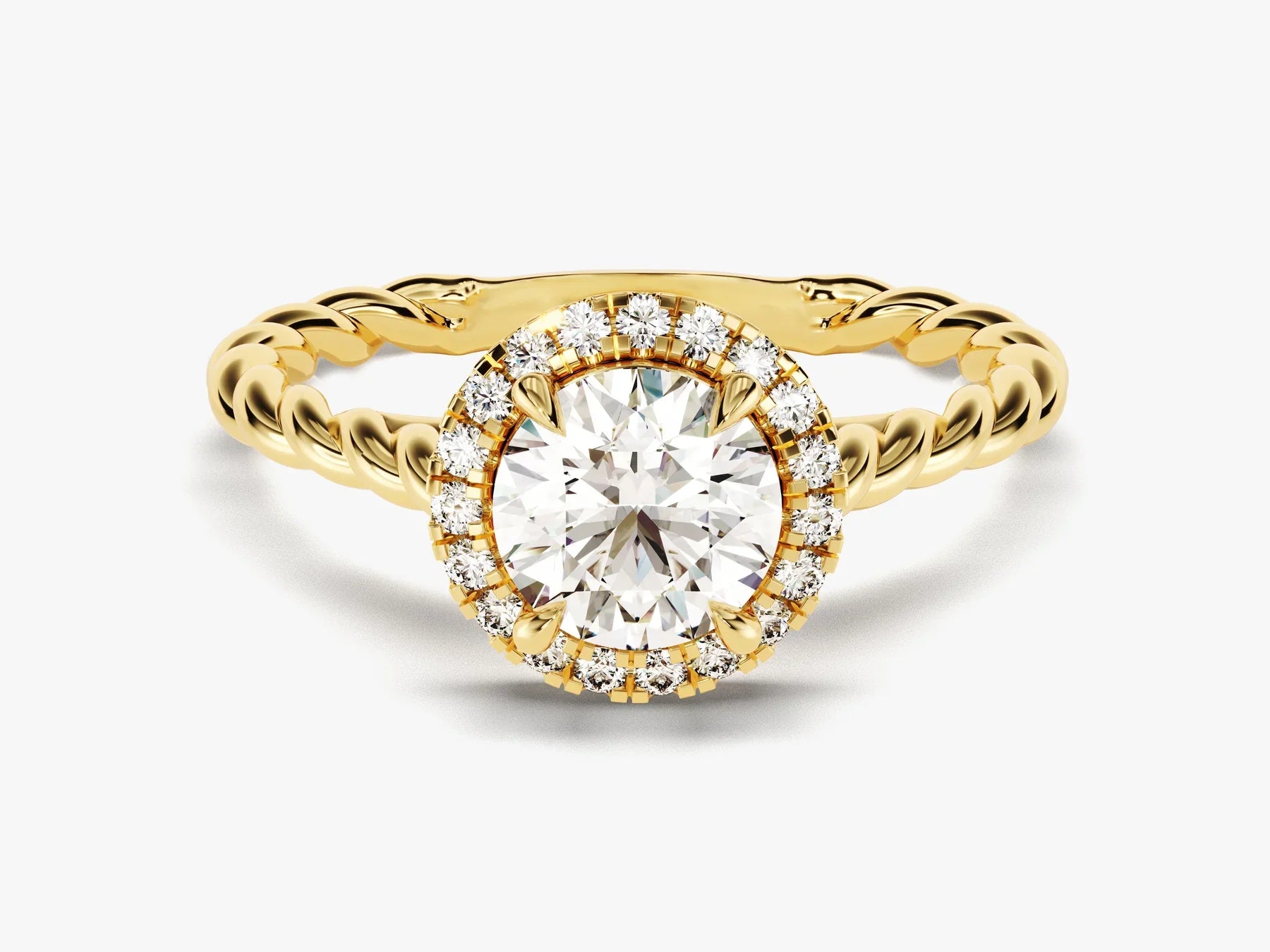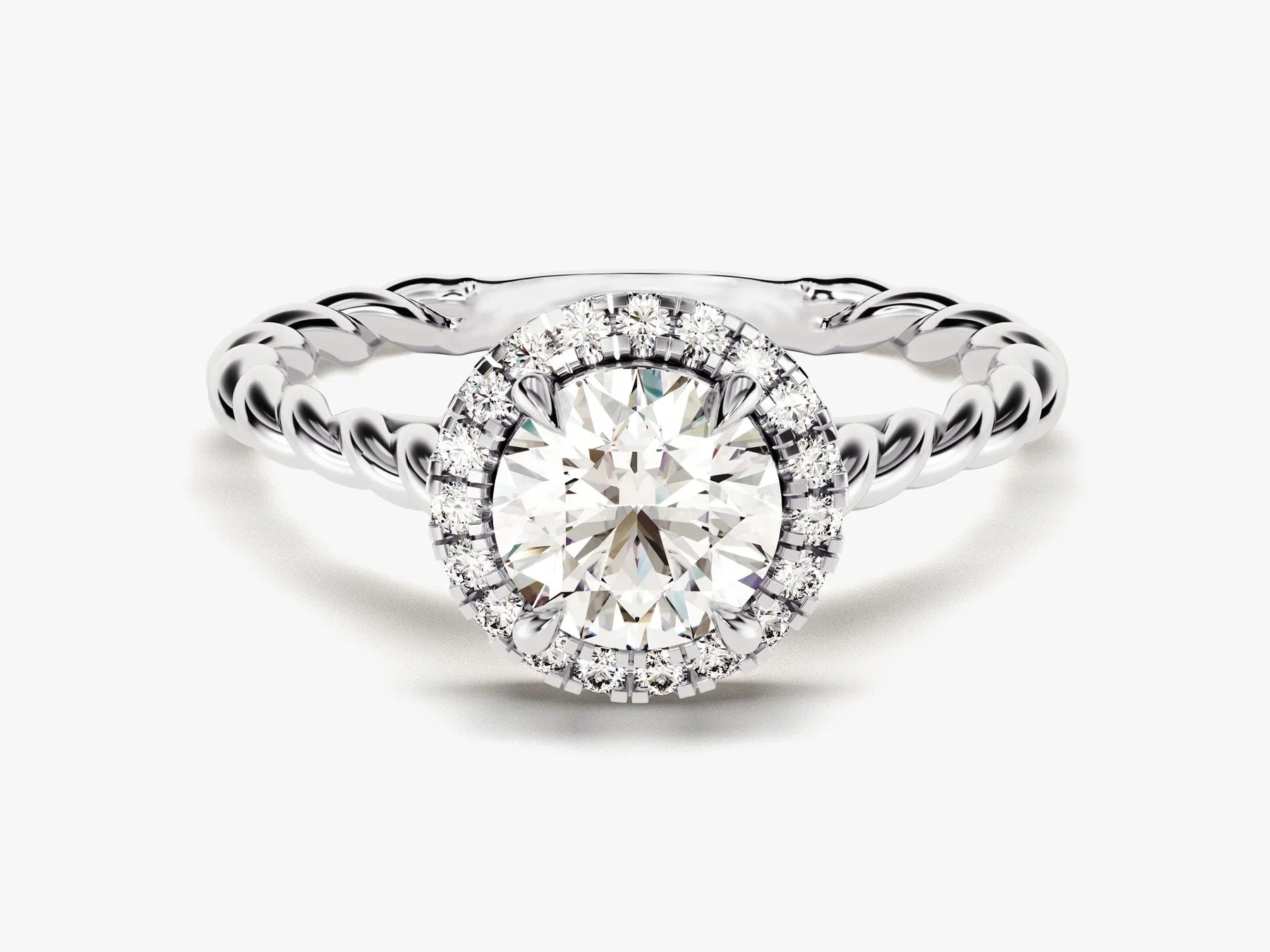 1.0CT Round Brilliant Diamond Halo Setting Moissanite Engagement Ring