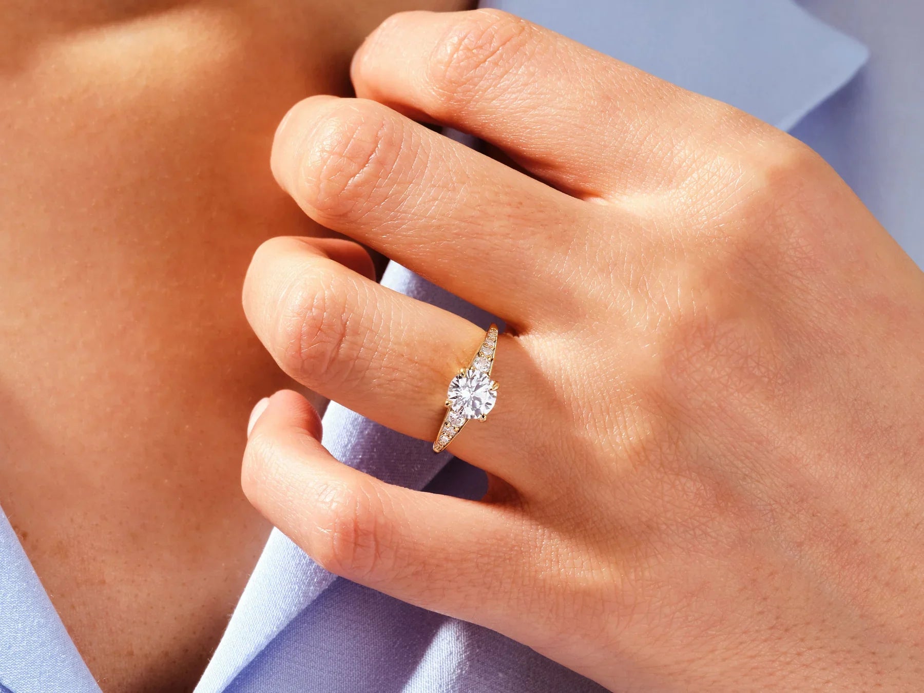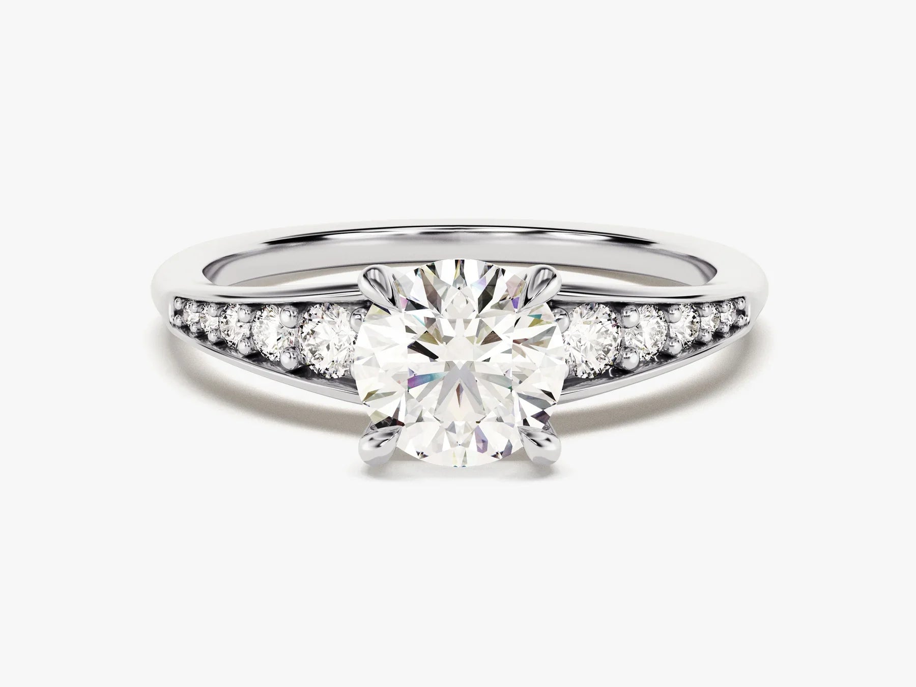 1.0CT Round Brilliant Diamond Pave Set Moissanite Engagement Ring